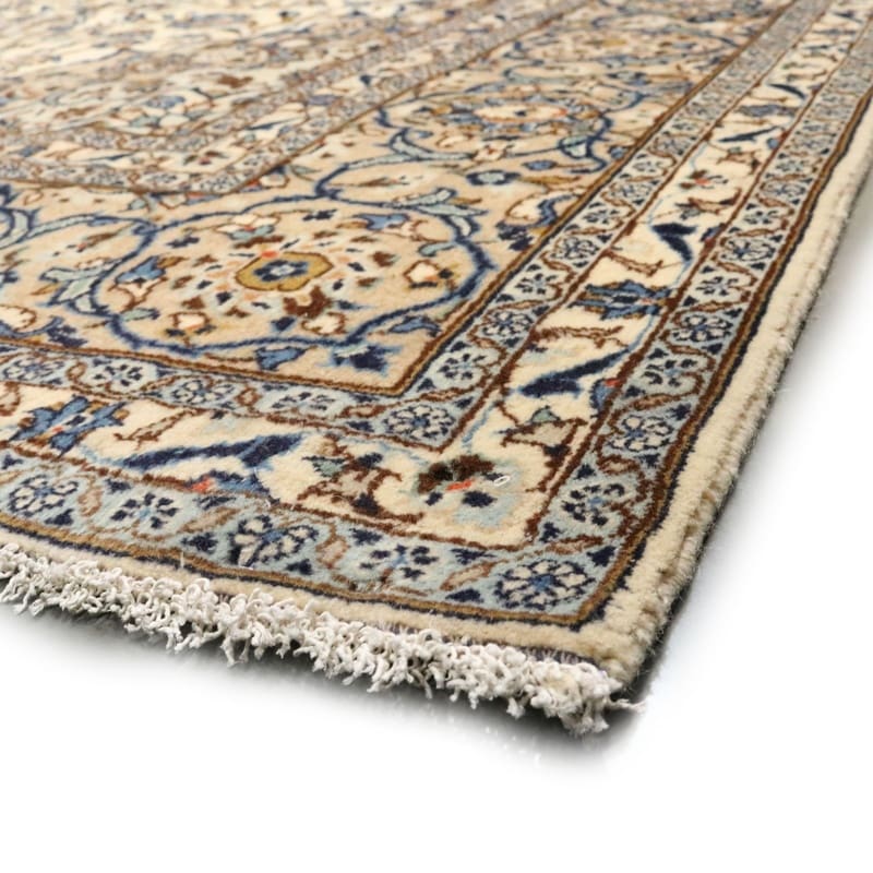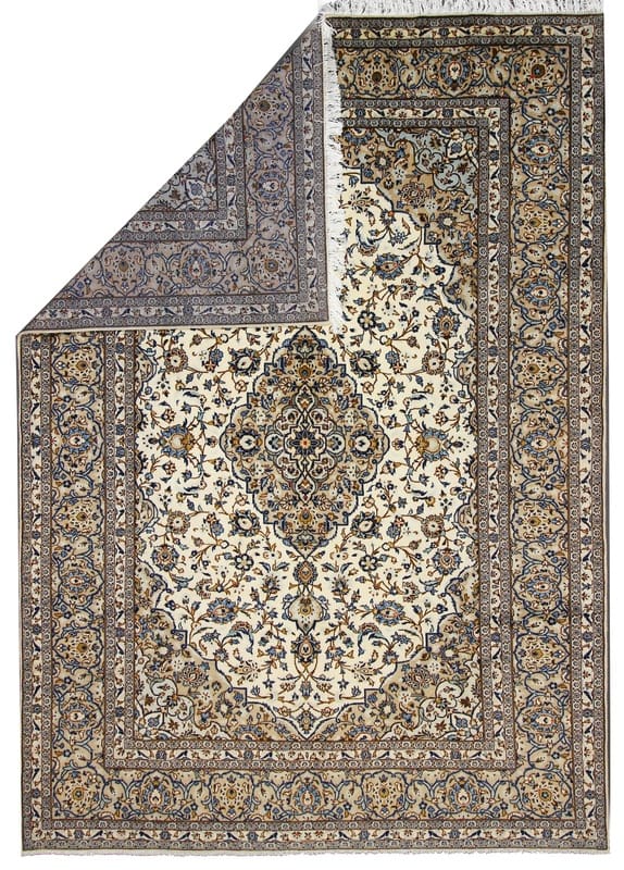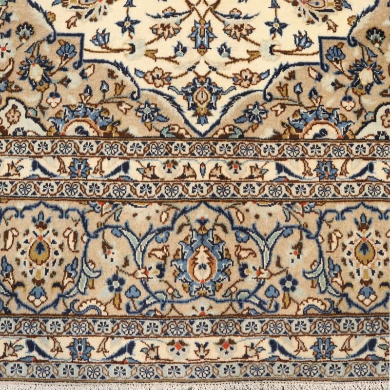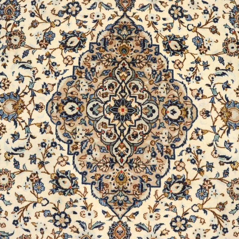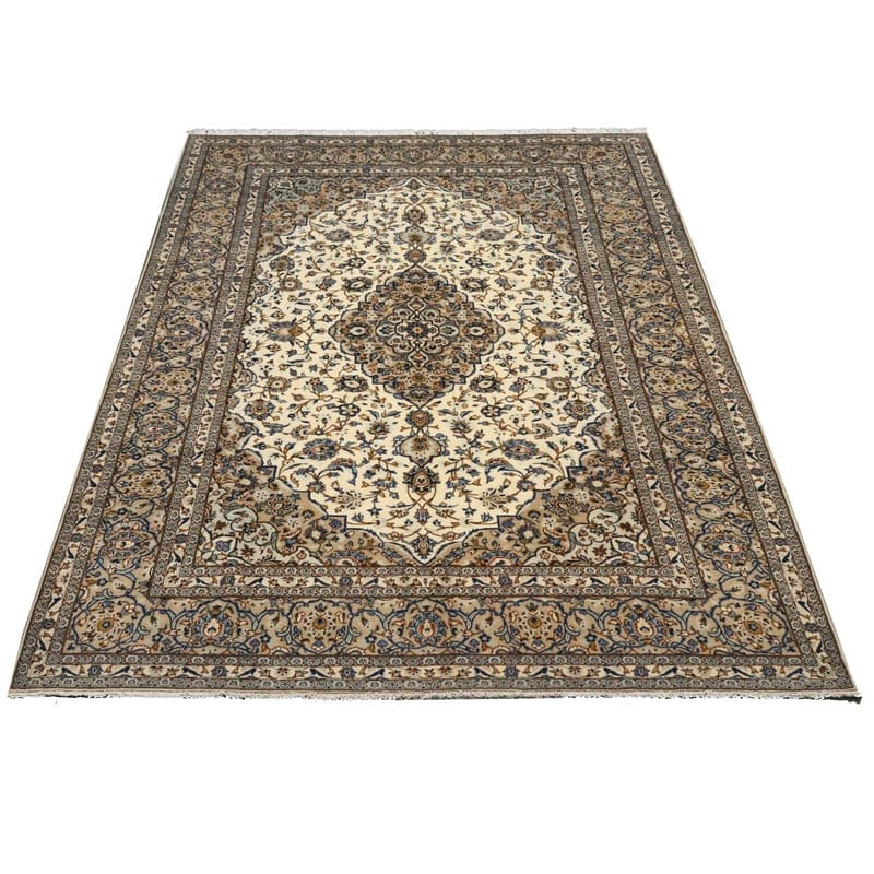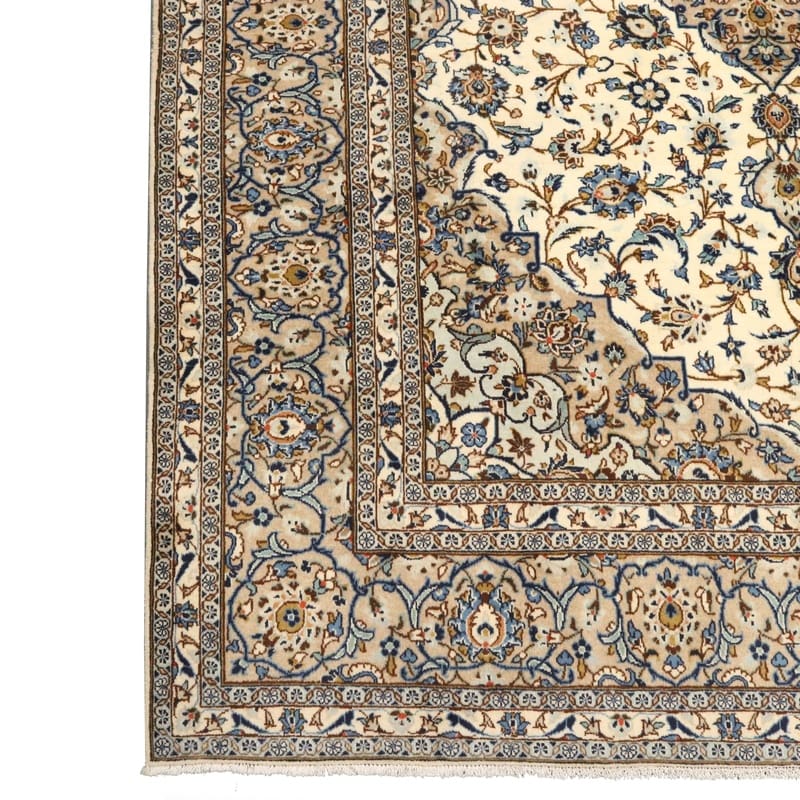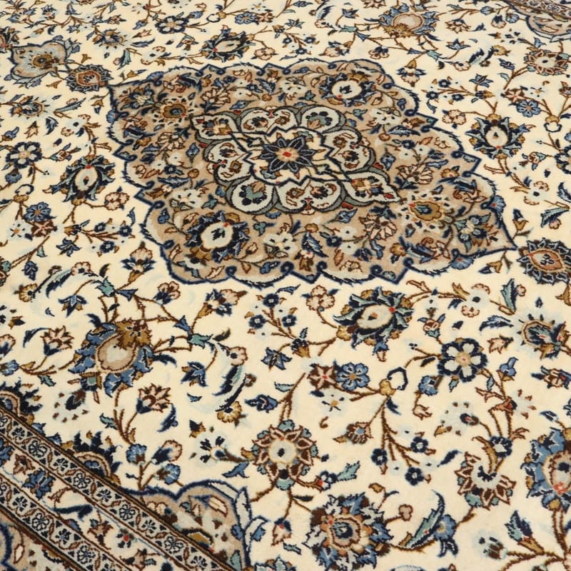 Handgeknüpfter Kashan Teppich | Knotendichte: 200.000-250.000 Knoten/m² | Material: Wolle und Baumwolle | Größe: 353×246 cm | Farbe: Weiß/Beige | Zustand: Neuzeitlich 0-20 Jahre | Ursprung: Iran/Persien | Dicke: ca. 8 mm | Gewicht: ca. 26 kg