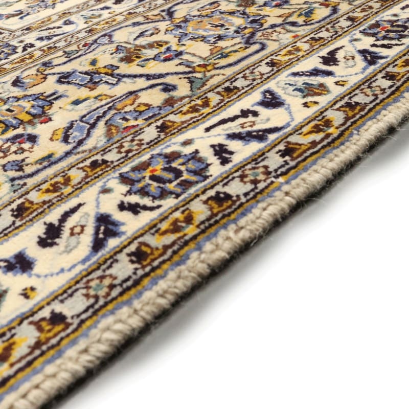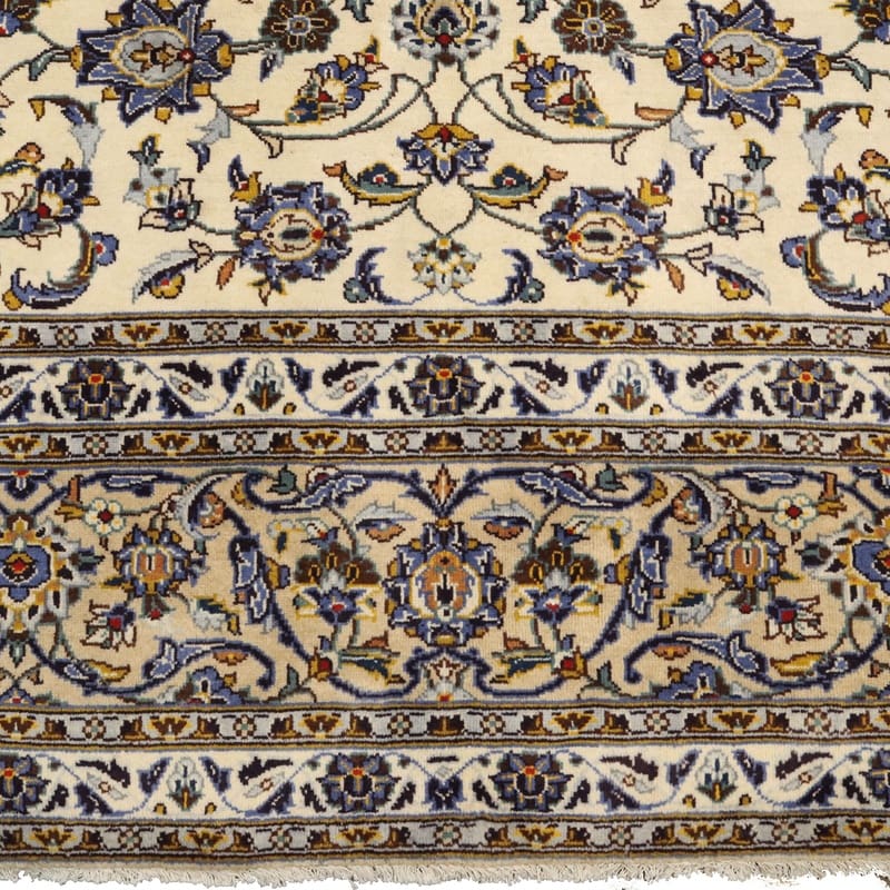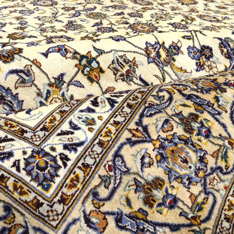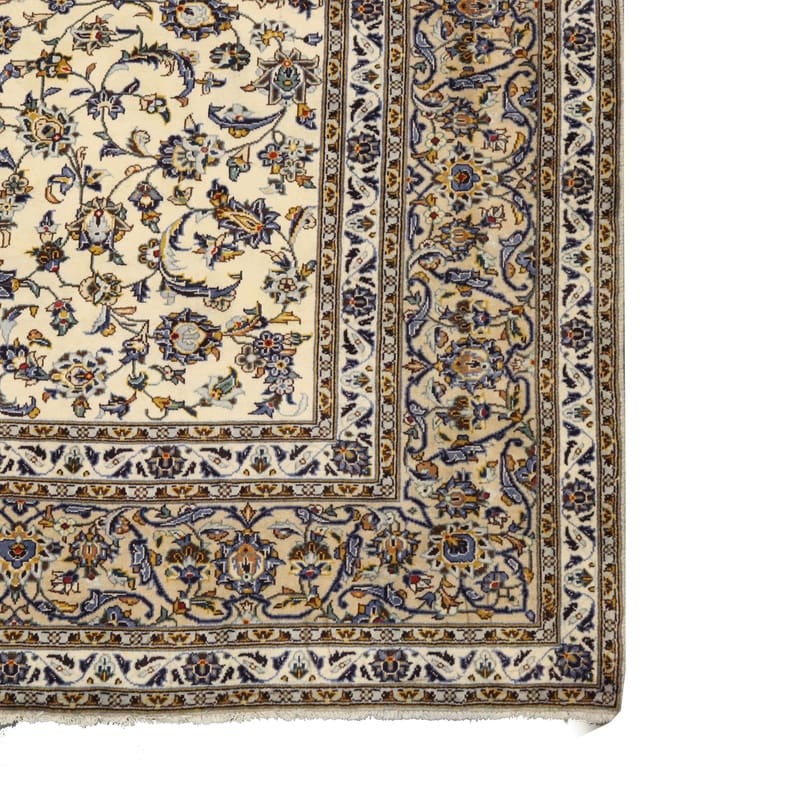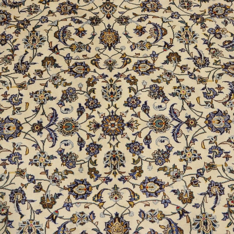 Wunderschöner Kashan-Teppich | Knotendichte: 200.000 – 250.000 Knoten/m² | Material: Hochwertige Wolle | Größe: 388×282 cm | Zustand: Neuzeitlich (0-20 Jahre) | Herkunft: Iran / Persien | Farbe: Weiß/Beige | Form: Rechteckig | Verarbeitung: Handgeknüpft | Dicke: ca. 8 mm | Gewicht: ca. 40 kg