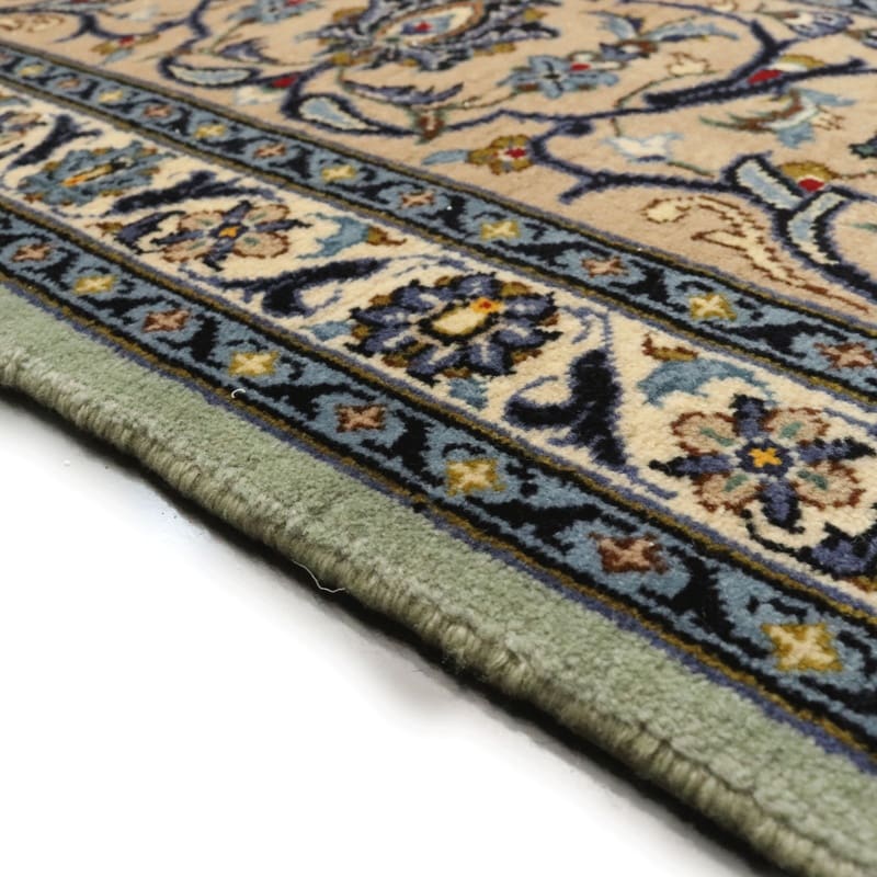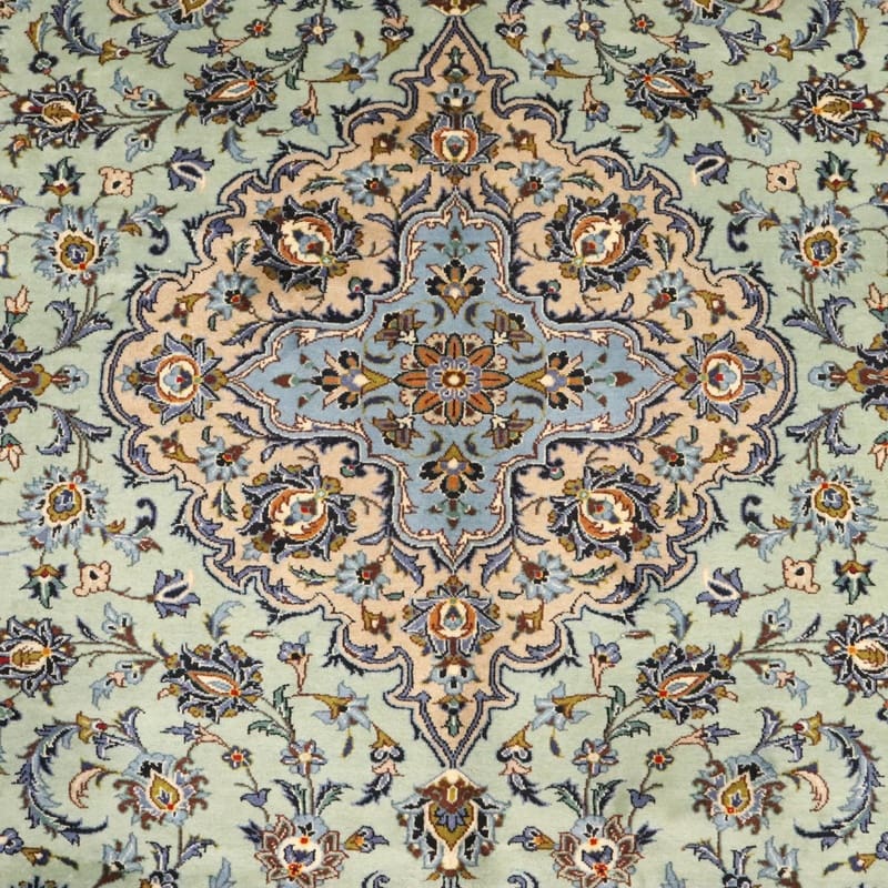 Kashan Teppich, hellgrün, handgeknüpft, Orientteppich