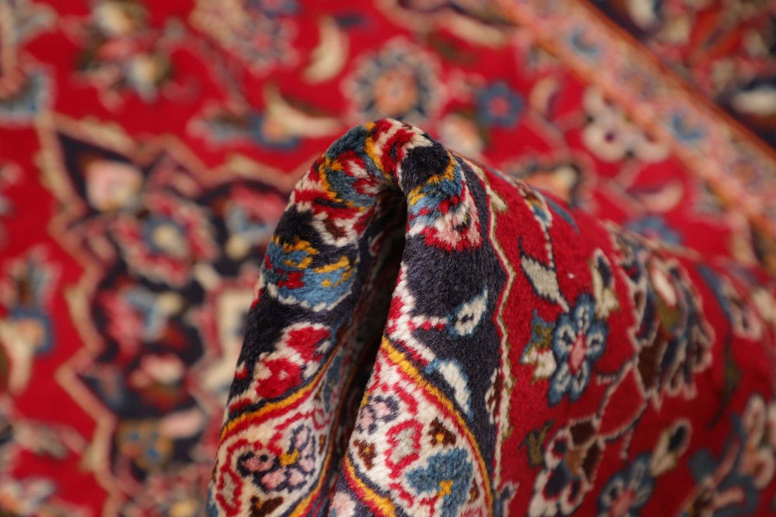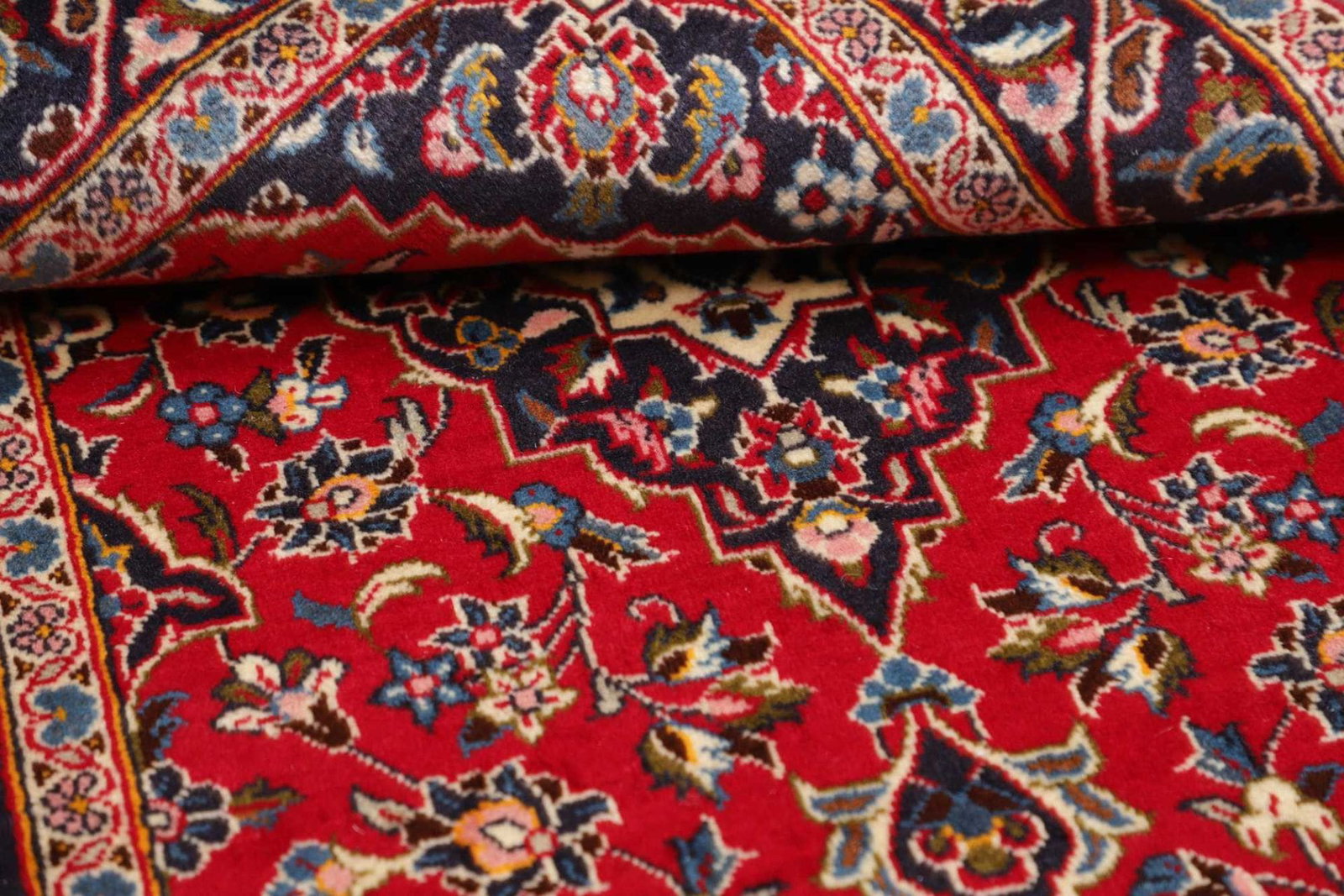 Ein echter Kashan Teppich ist handgeknüpft und besitzt eine hohe Knotendichte. Ein weiteres Indiz sind die Verwendung von reiner Schurwolle und die Qualität der Farben. Anhand der Rückseite des Teppichs können Sie die Knotentechnik und die Verarbeitung überprüfen.