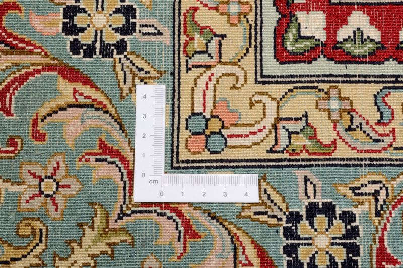 Ein hochwertiger handgeknüpfter Teppich zeichnet sich durch eine hohe Knotendichte, detailreiche Muster und die Verwendung von edlen Materialien wie Seide oder Wolle aus. Zudem sollten die Rückseite des Teppichs und die Kanten gut verarbeitet sein.