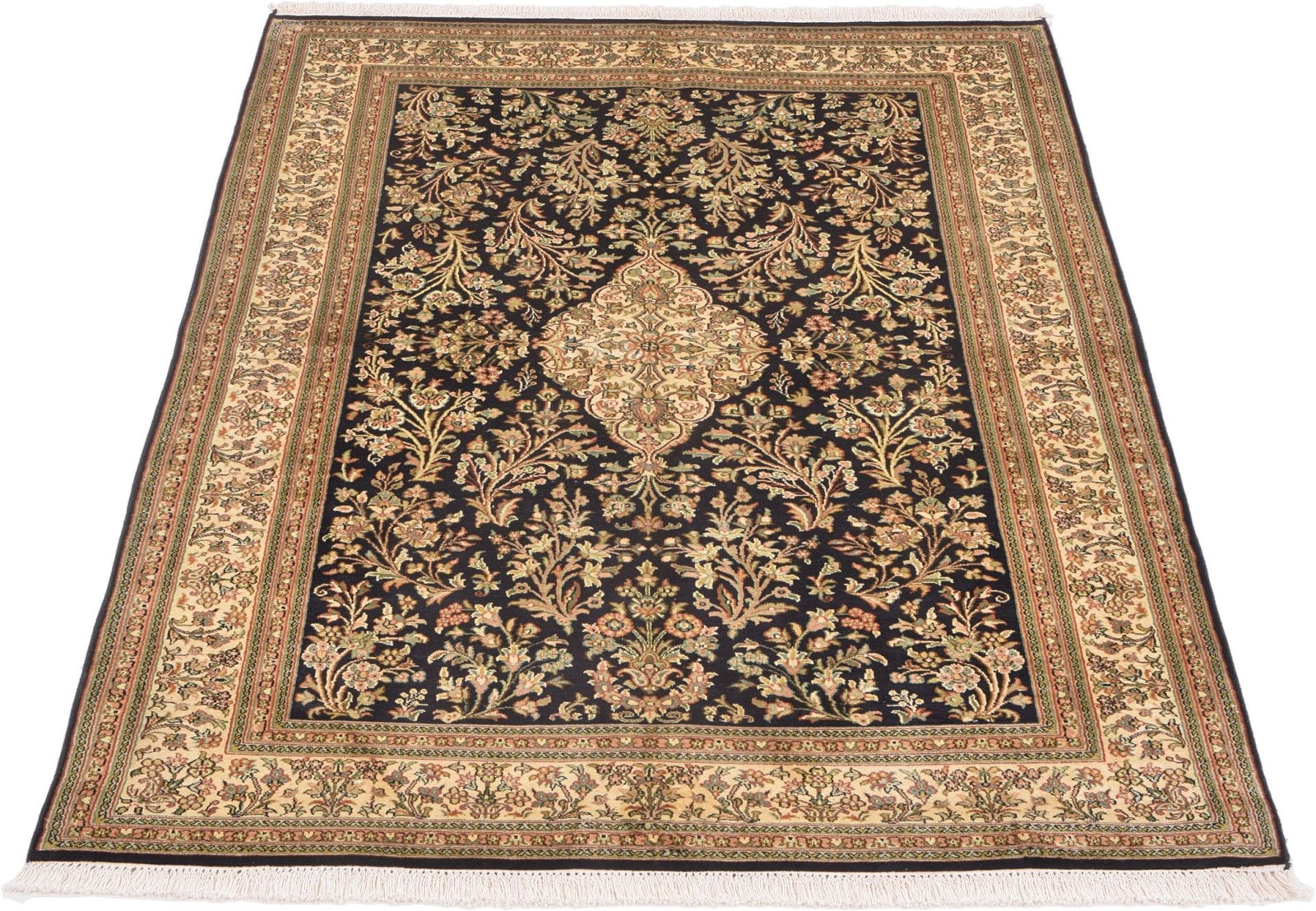 Kashmirseide Teppich 124 x 185 cm, persisches Muster, handgeknüpft