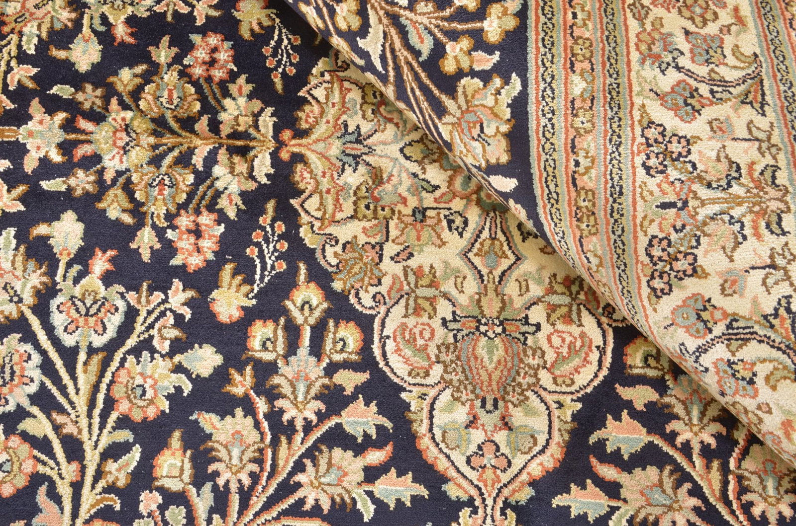 Ein weiterer bemerkenswerter Aspekt des Kashmirseide Teppichs ist die Knotendichte. Diese Tragfähigkeit und Strapazierfähigkeit ist ein Zeichen für hochwertige Handwerkskunst. Hohe Knotendichten, die in persischen Teppichen zu finden sind, garantieren nicht nur eine lange Lebensdauer, sondern auch eine beständige Schönheit, die über Jahre hinweg erhalten bleibt. Zudem verleiht die Kombination aus Seide und dem kunstvollen Design dem Teppich eine schimmernde Textur, die je nach Lichteinfall unterschiedliche Effekte erzeugt.