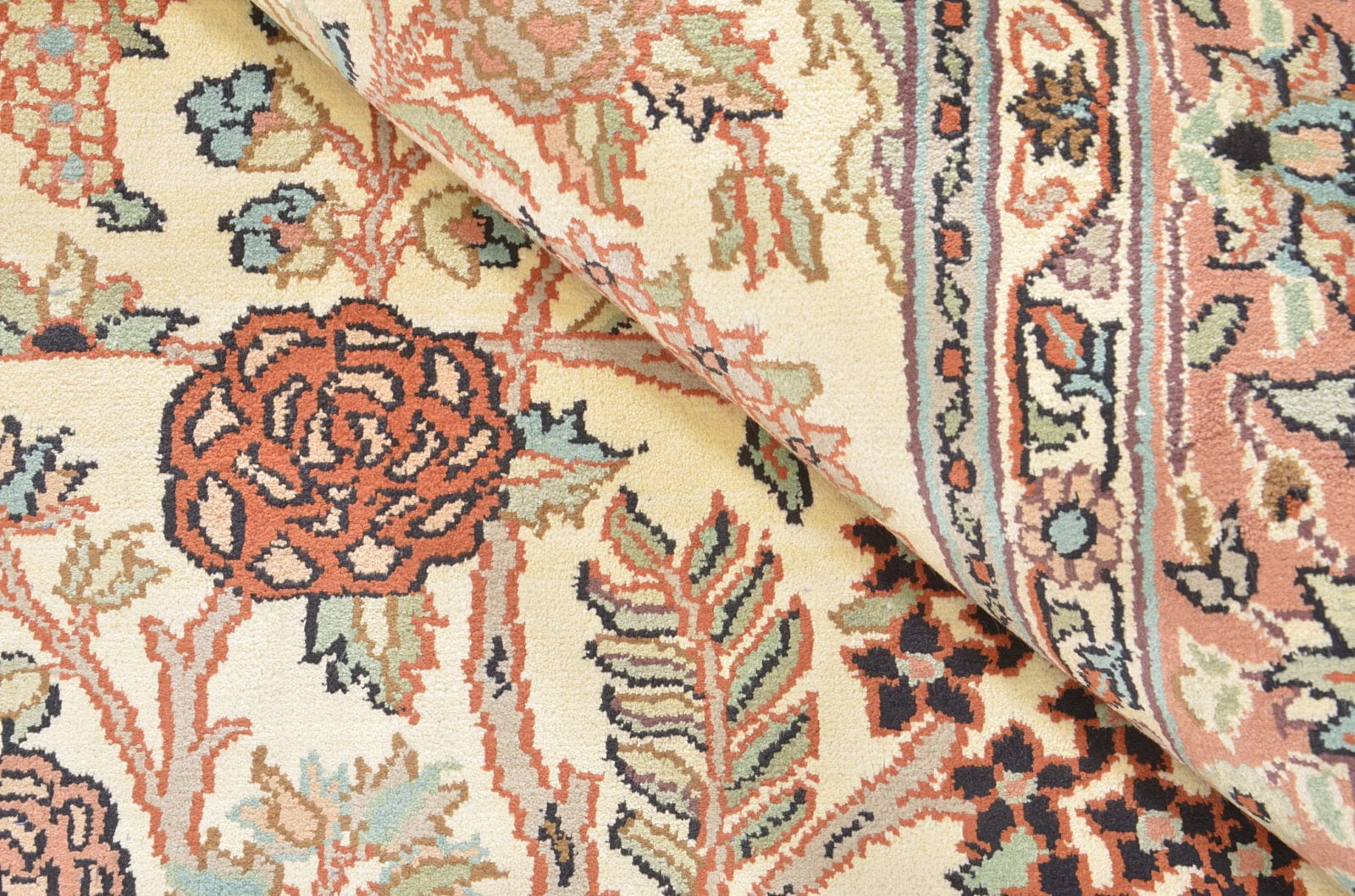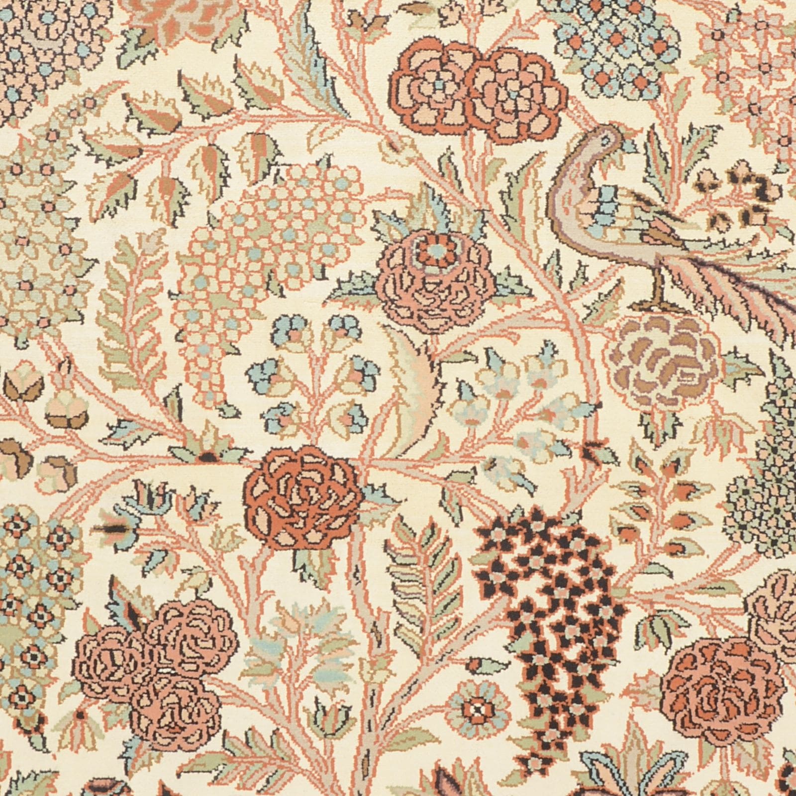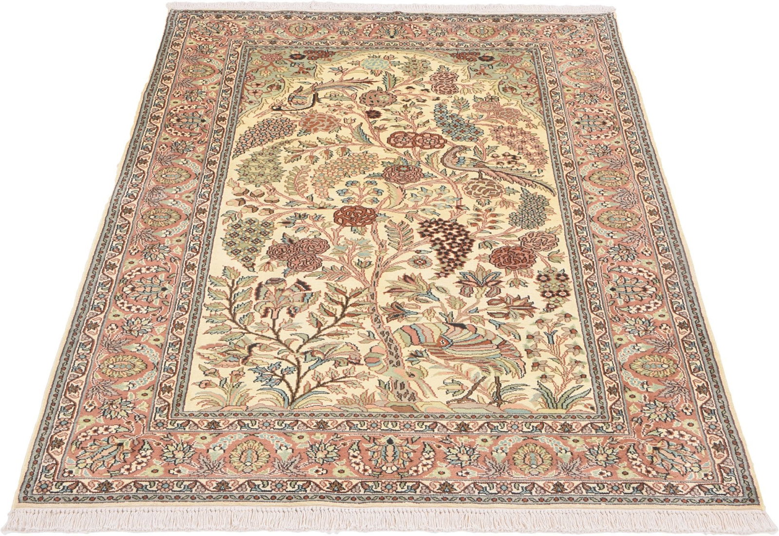 Kashmirseide Teppich – edles Pastellmuster, handgeknüpft