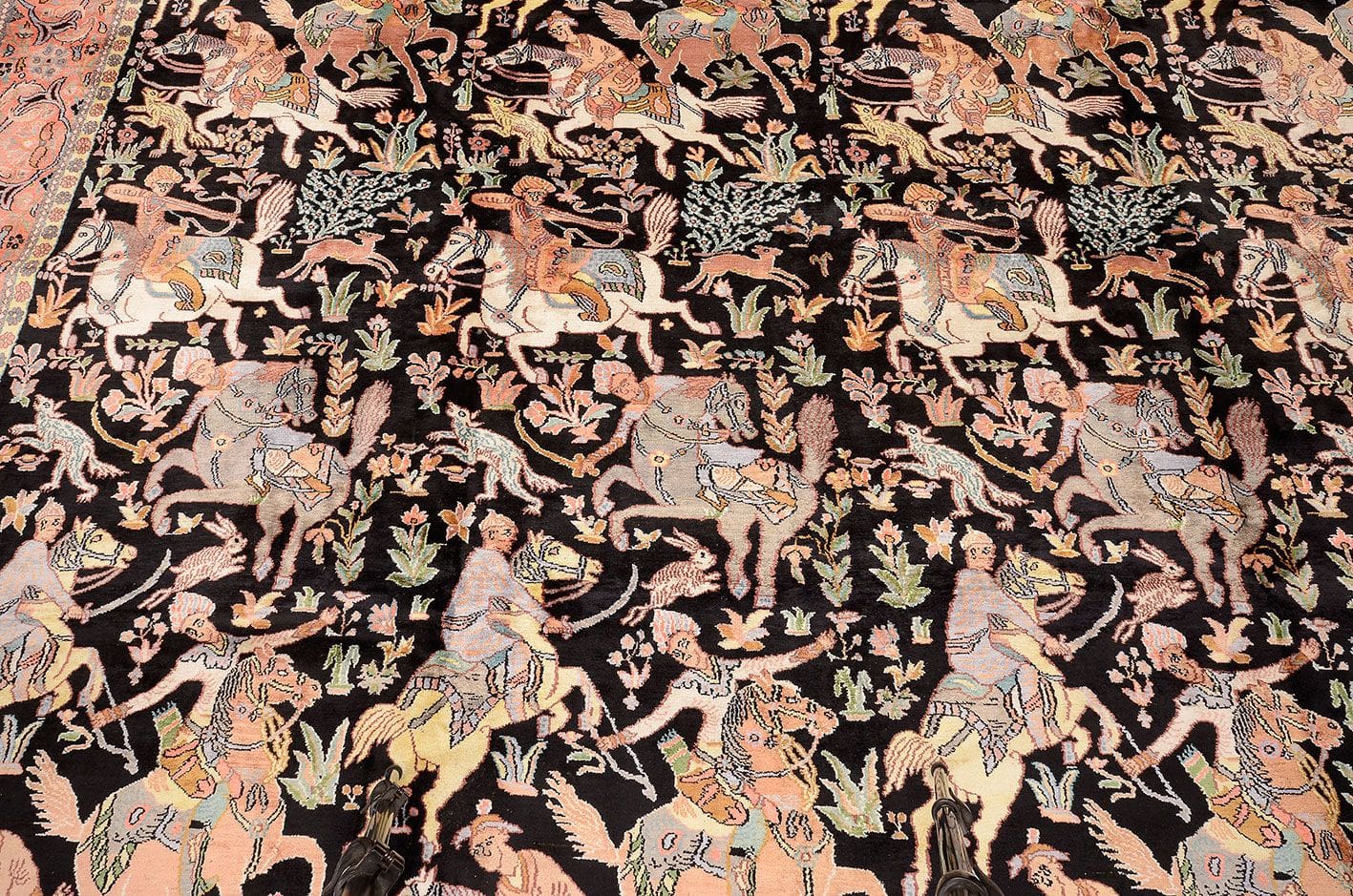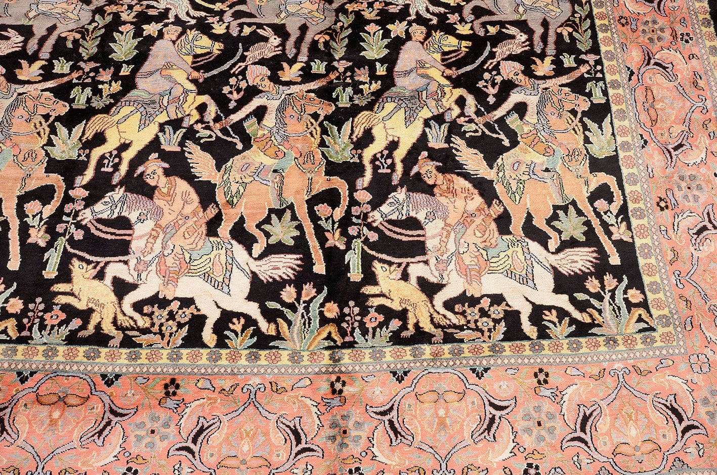 Der Teppich besteht aus erstklassiger Kashmirseide, die für ihre Weichheit und Langlebigkeit bekannt ist. Diese edle Seide stammt aus dem zentralasiatischen Raum und wird unter optimalen Bedingungen verarbeitet, um ihre natürlichen Glanzeigenschaften zu erhalten. Bei der Herstellung dieses Teppichs wurde eine hohe Knotendichte verwendet, was nicht nur für eine beeindruckende Detailgenauigkeit sorgt, sondern auch die Strapazierfähigkeit des Teppichs erhöht. Die handgeknüpfte Technik gewährleistet, dass jeder Teppich ein Unikat ist, das mit viel Liebe zum Detail gefertigt wurde.