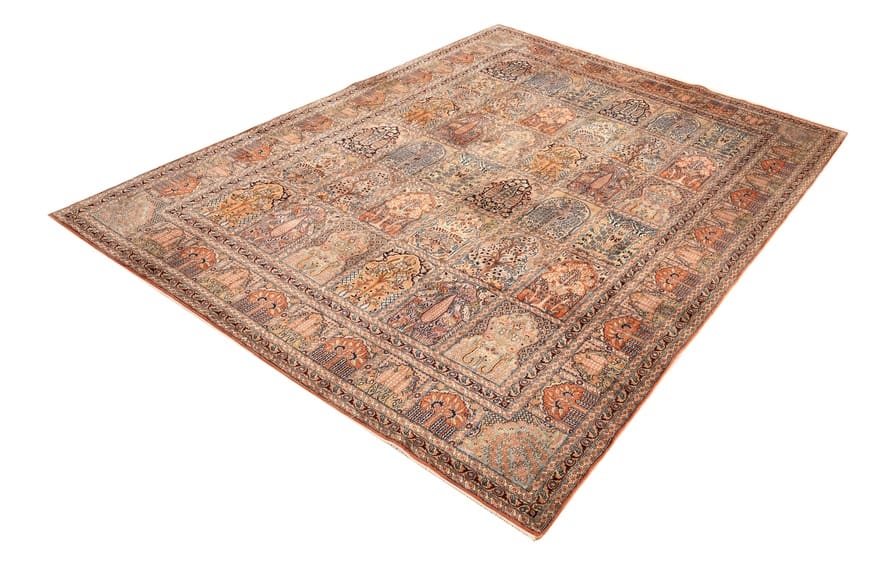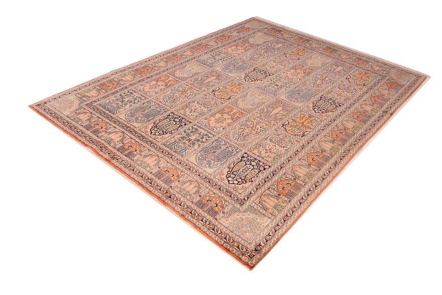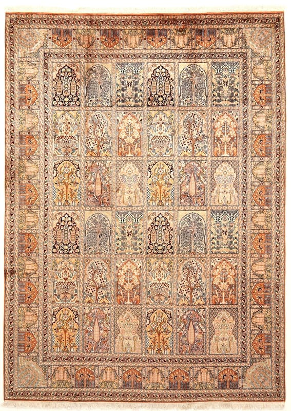 Kashmirsilk Teppich | Knotendichte: 320.000-360.000 Knoten/m² | Material: Wolle und Seide | Größe: 304×221 cm | Farbe: Multifarbe | Zustand: Neu | Ursprung: Indien | Dicke: ca. 6 mm | Gewicht: ca. 16 kg | Verarbeitung: Handgeknüpft
