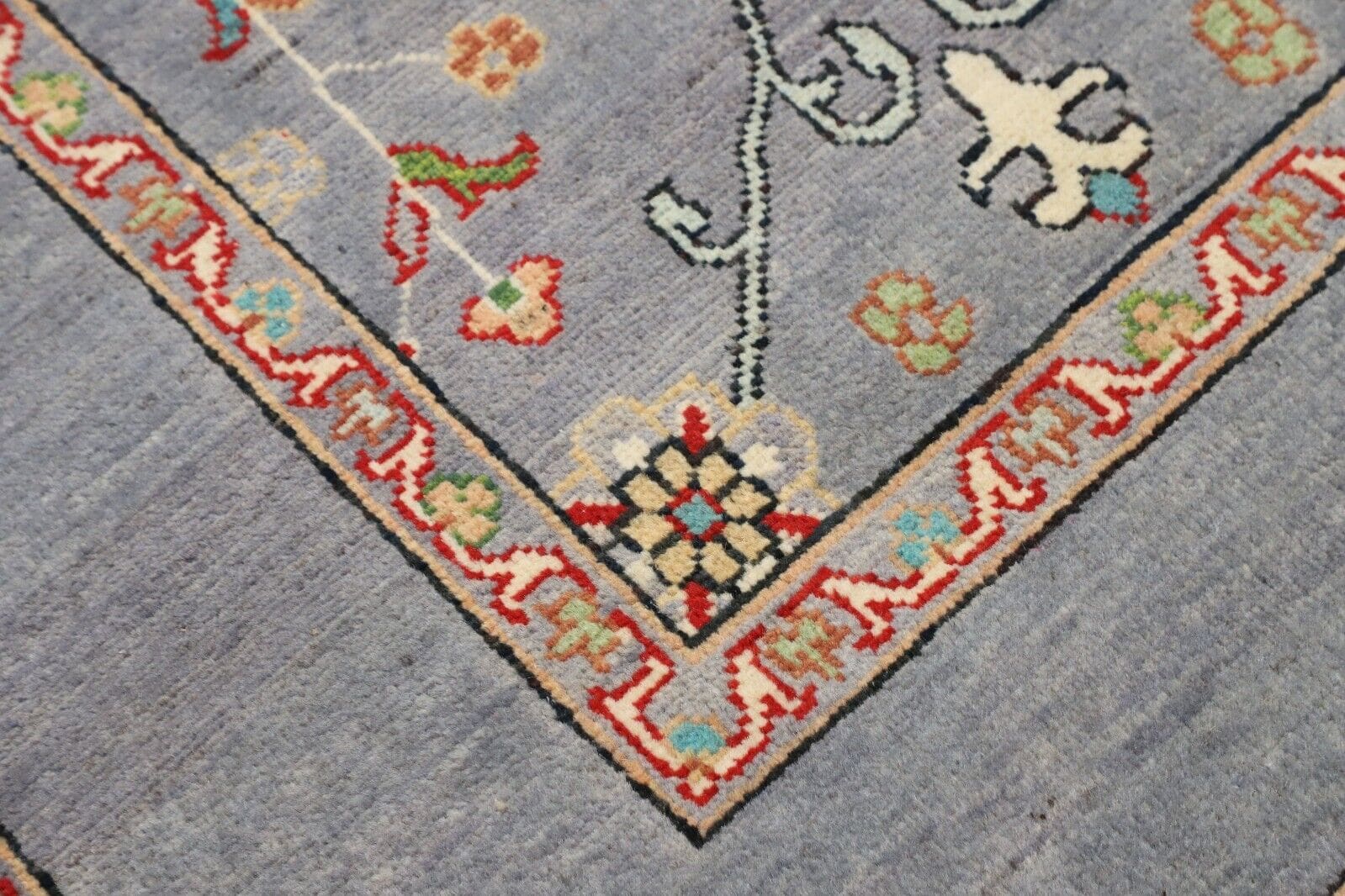 Der Einsatz von echter Wolle sorgt für eine besondere Weichheit und eine angenehme Textur, die sowohl optisch als auch haptisch überzeugen. Wolle ist nicht nur robust, sondern auch schmutzabweisend und pflegeleicht, was den Kazak Diyar besonders alltagstauglich macht. Durch die handgeknüpfte Technik werden die feinen Fasern der Wolle zu einem dichten und strapazierfähigen Gewebe verarbeitet, das sowohl im Wohn- als auch im Schlafzimmer eine warme Atmosphäre schafft.