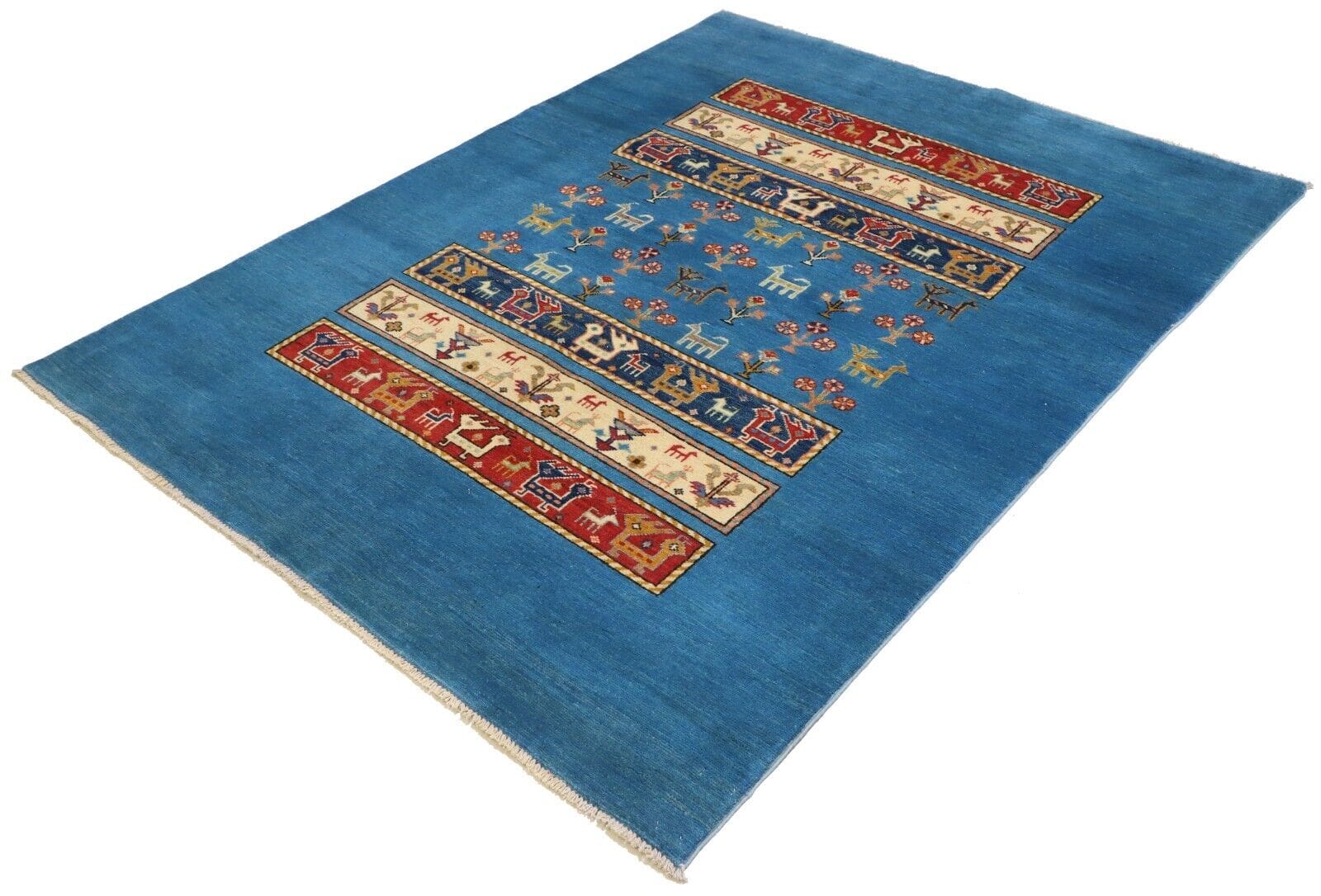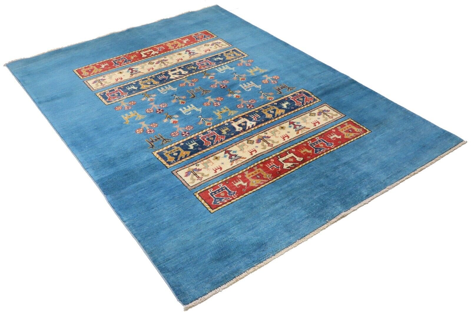 Handgeknüpfter Kazak Teppich | Größe: 195 x 150 cm | Knotendichte: 160.000 – 200.000 Knoten/m² | Material: 100% Hochlandwolle (Flor), 100% Baumwolle (Kette) | Zustand: Perfekt | Ursprung: Afghanistan | Florhöhe: Kurz | Stil: Art déco | Besondere Eigenschaften: Antirutsch, für Fußbodenheizung geeignet, leicht zu reinigen | Unikat – Nur 1 auf Lager