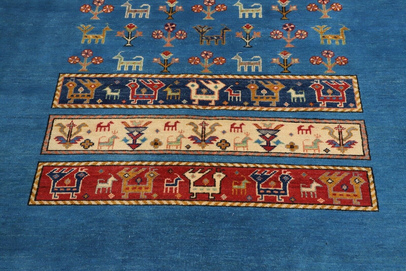 Der Kazak Diyar Teppich stammt aus dem Iran, einer Region, die für ihre traditionelle Teppichweberei und hohe Handwerkskunst bekannt ist. Teppiche aus dieser Gegend sind oft für ihre komplexen Muster und kräftigen Farben berühmt.