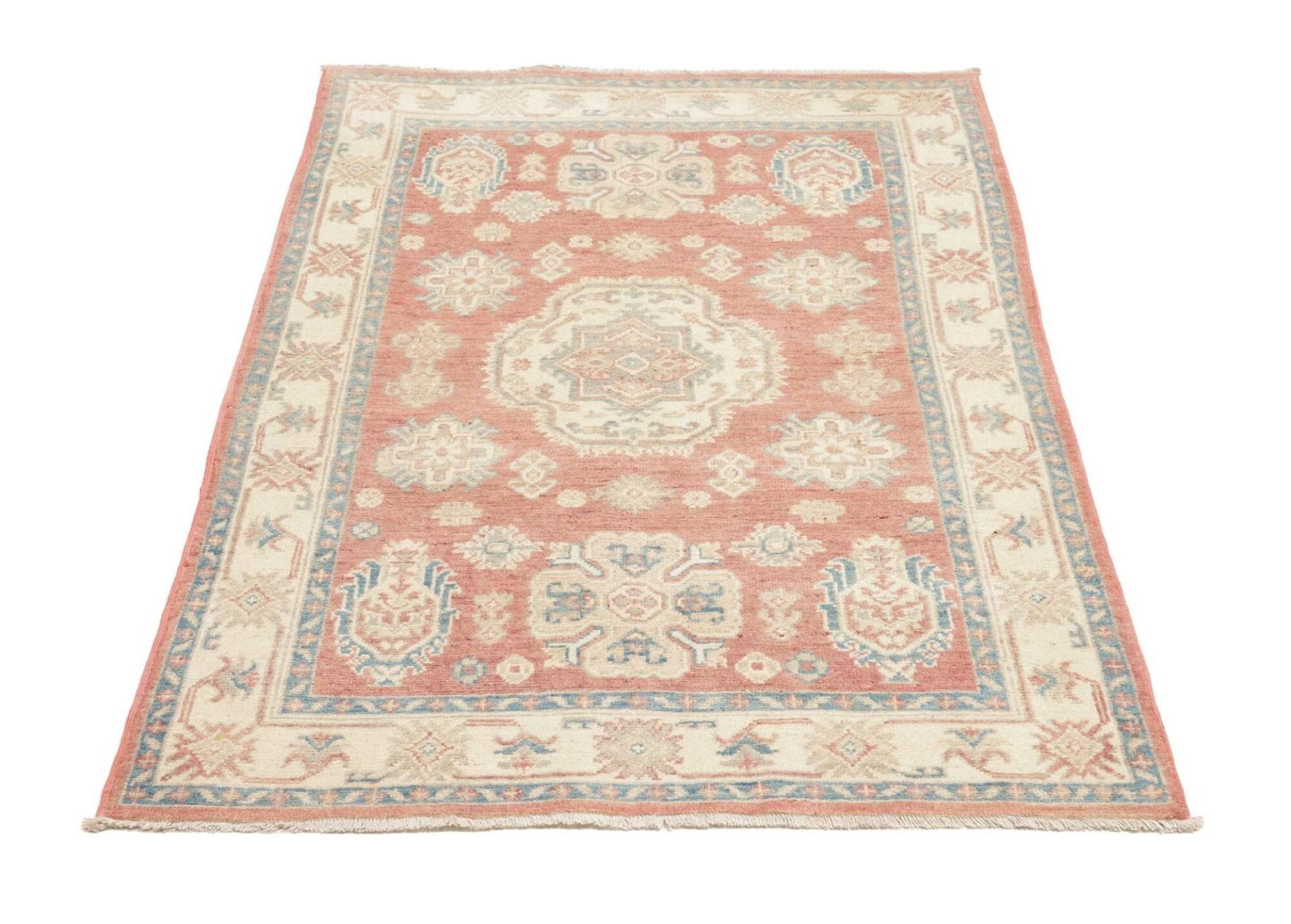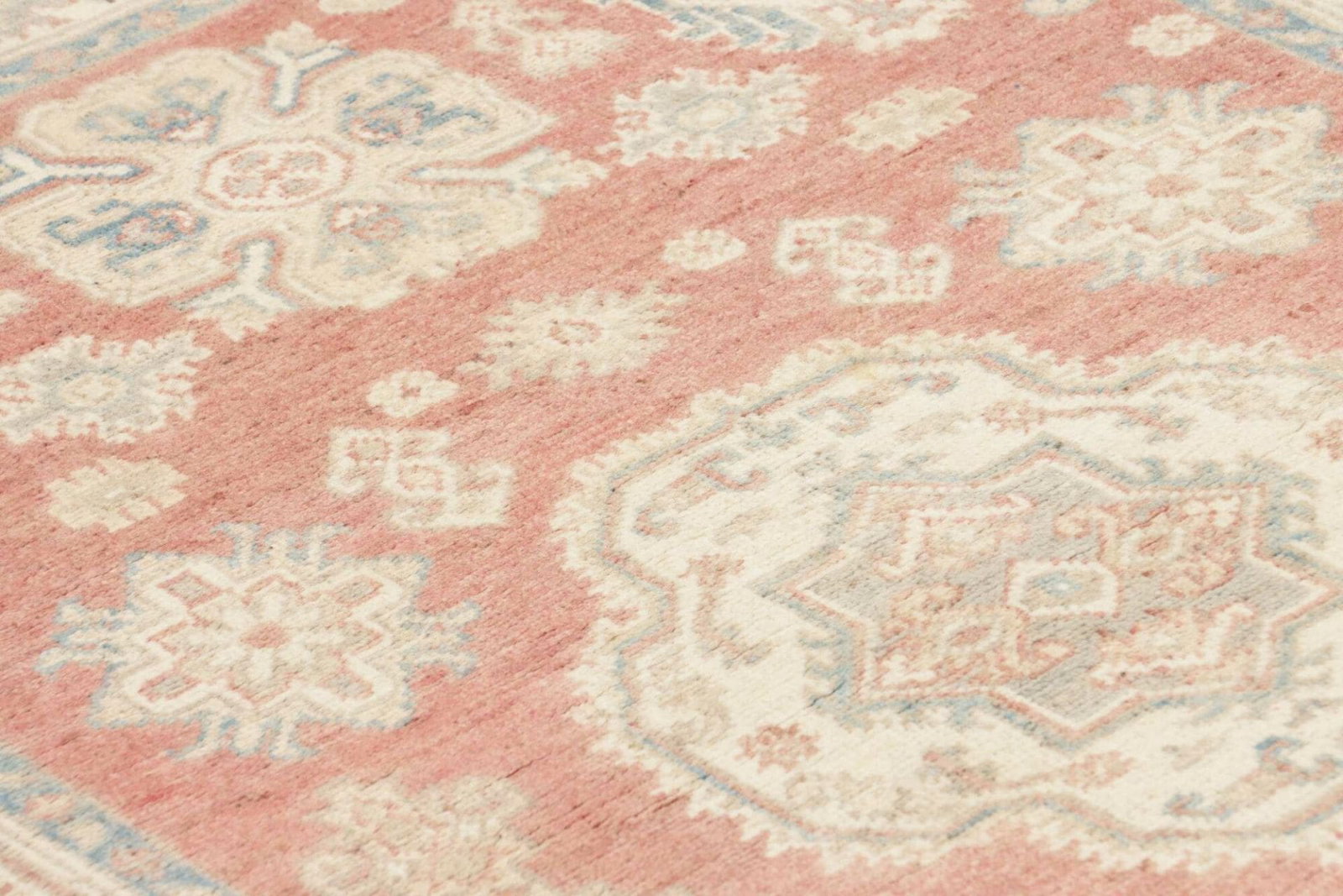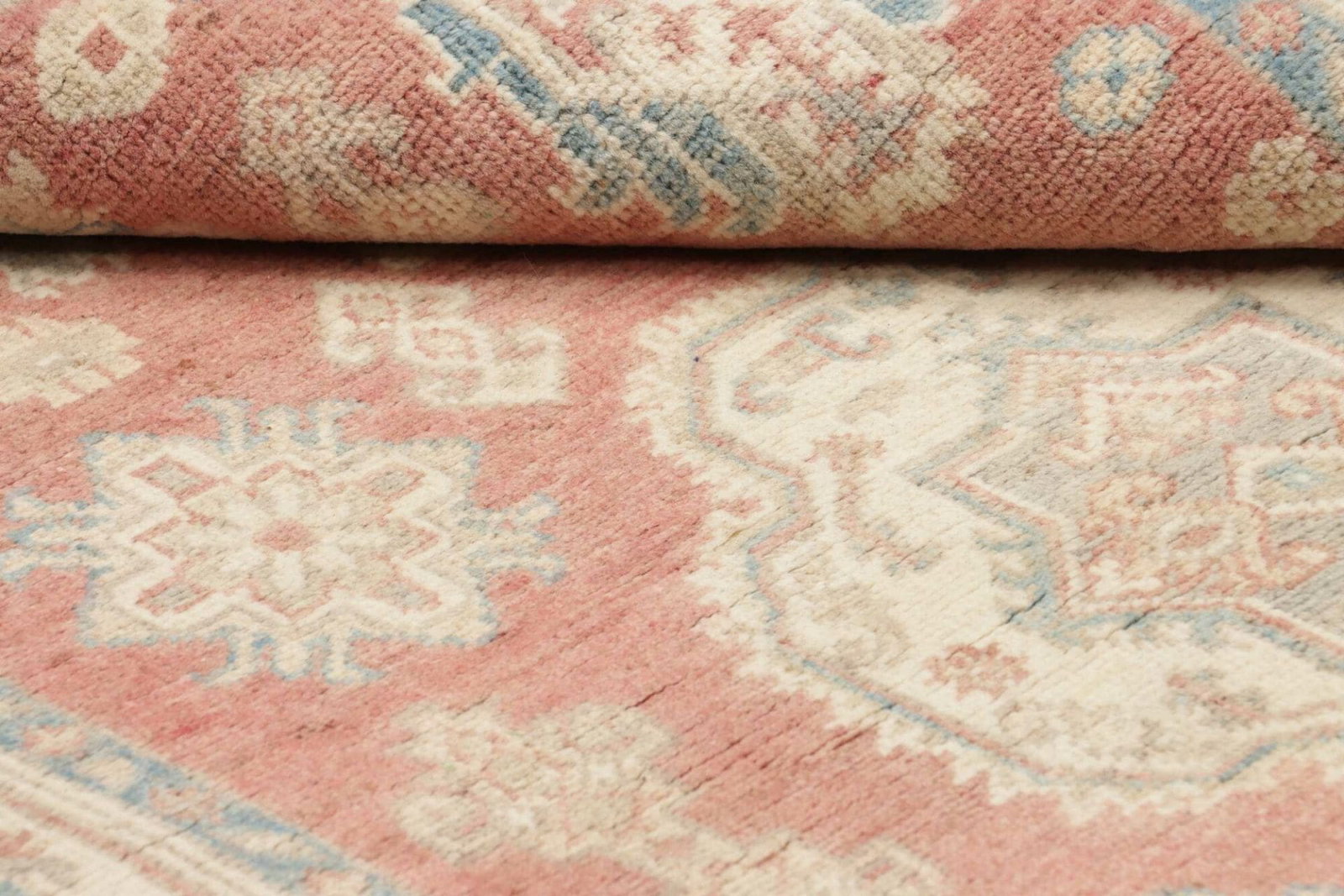 Die Qualität eines Teppichs beginnt stets bei den verwendeten Materialien. Der Kazak Orientteppich wurde aus feiner Wolle gefertigt, die für ihre Robustheit und Weichheit bekannt ist. Wolle hat die wunderbare Eigenschaft, langlebig und gleichzeitig angenehm im Gefühl zu sein. Die handgeknüpfte Technik sorgt für eine immense Stabilität und Strapazierfähigkeit, die selbst bei täglichem Gebrauch ihre Schönheit bewahrt.
