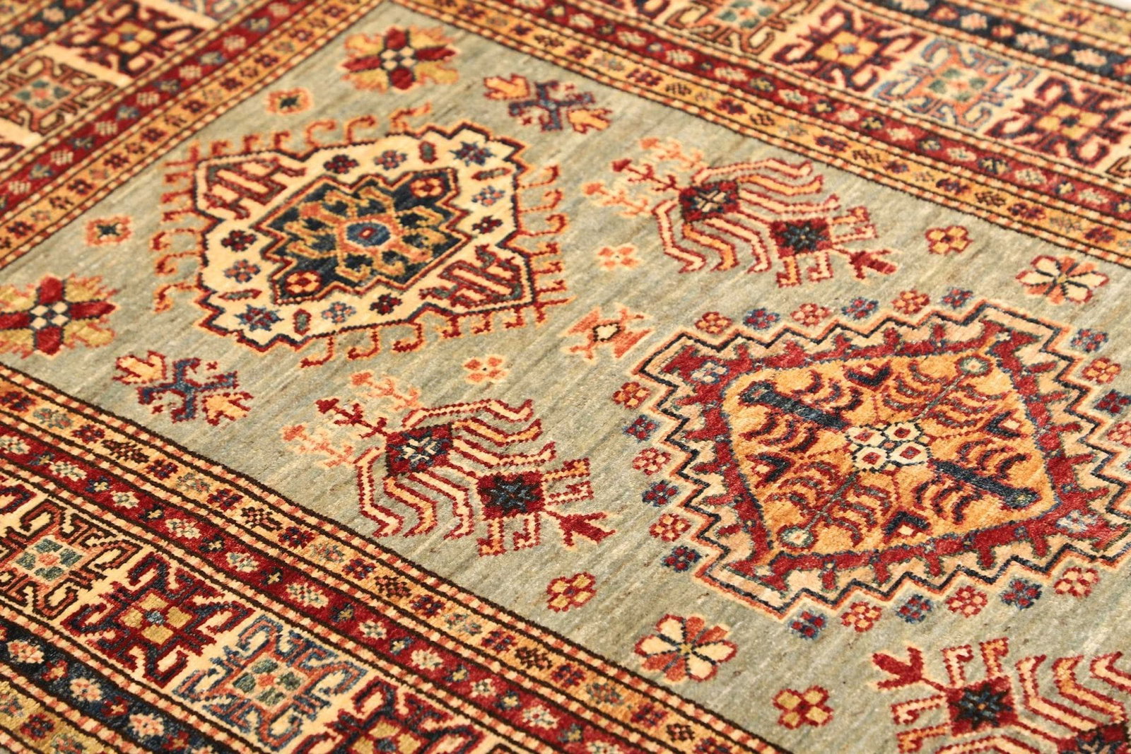 Sie können den Kazak Orientteppich in verschiedenen Bereichen Ihres Hauses nutzen, darunter Wohnzimmer, Schlafzimmer oder Flure. Er eignet sich sowohl als zentraler Blickfang in einem Raum als auch als farbliches Highlight in schlicht eingerichteten Räumen.
