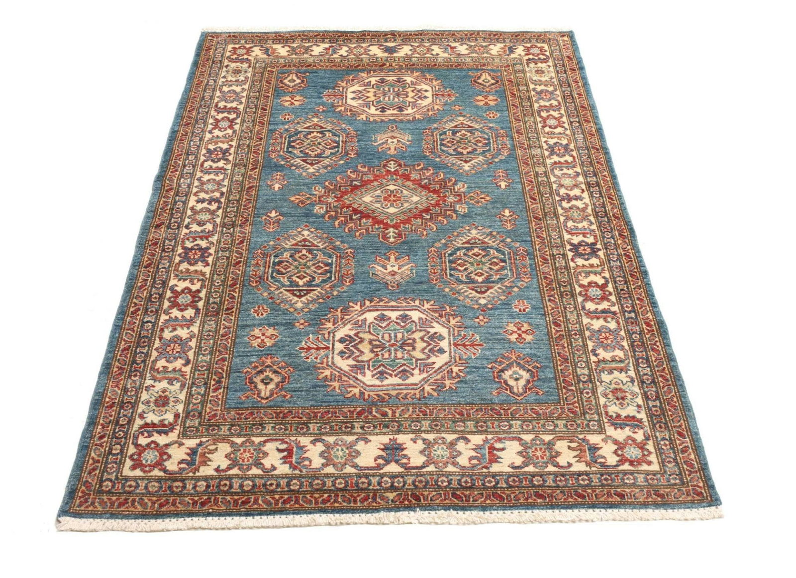 1265$Ursprünglicher Preis war: 1265$980$Aktueller Preis ist: 980$Kazak Teppich | Knotendichte: ca. 200.000 Knoten/m² | Material: 100% Schurwolle | Kette: 100% Baumwolle | Größe: 124 x 170 cm | Zustand: sehr gut | Herkunft: Pakistan | Handgeknüpft | Geometrische Muster und Figuren