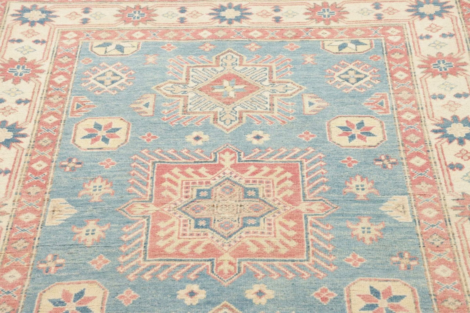 Kazak Teppich | Größe: 125 x 182 cm | Herkunft: Pakistan | Knotendichte: ca. 100.000 Knoten/m² | Flor: 100% Schurwolle | Kette: 100% Baumwolle | Höhe: ca. 7-10 mm | Handgeknüpfte Qualität | Geometrische Muster und Figuren