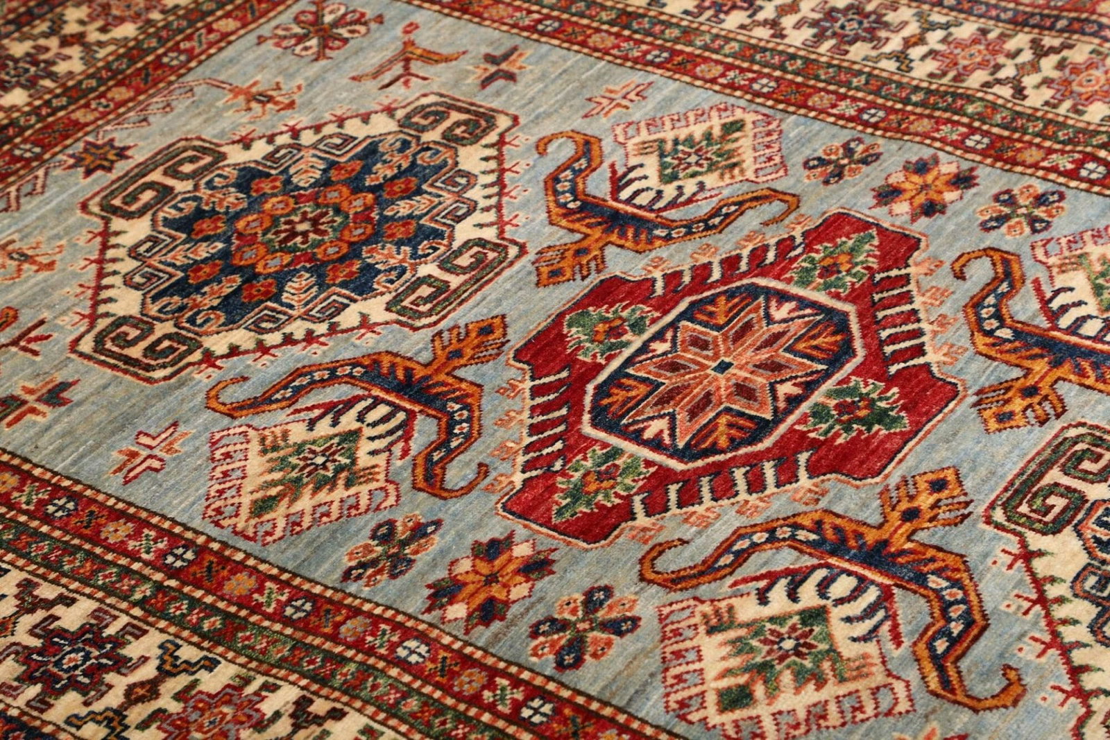 Ein weiterer Vorteil des Kazak Orientteppichs liegt in seiner Pflegeleichtigkeit. Dank der Verwendung von Wolle sind die Teppiche nicht nur weich und warm, sondern auch schmutzabweisend und langlebig.