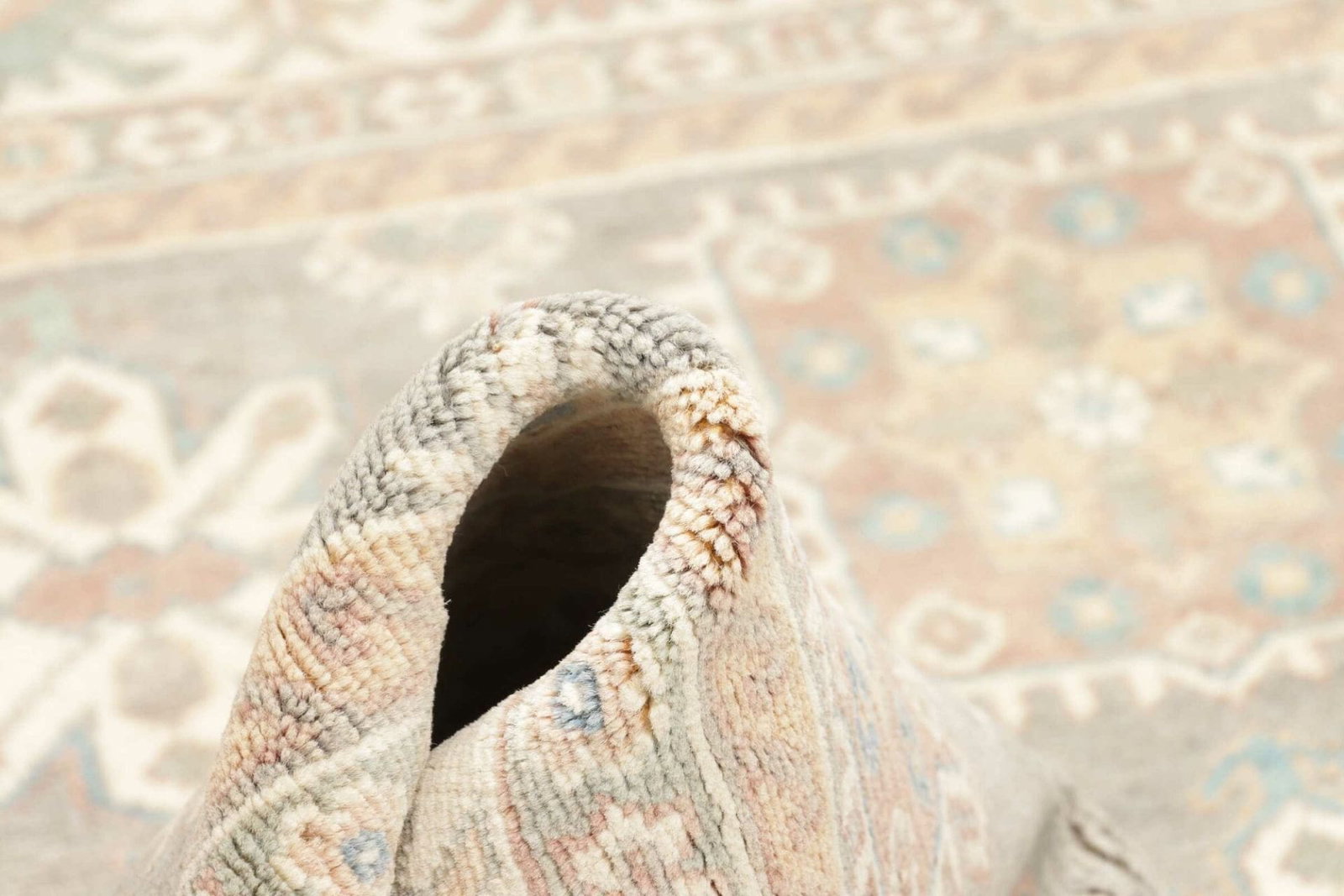 Dank der Verwendung von Wolle bleibt der Teppich auch nach vielen Jahren in einem hervorragenden Zustand. Die natürliche Widerstandsfähigkeit der Wolle gegenüber Schmutz und Abnutzung sorgt dafür, dass dieser Teppich auch in stark frequentierten Räumen zur Geltung kommt.