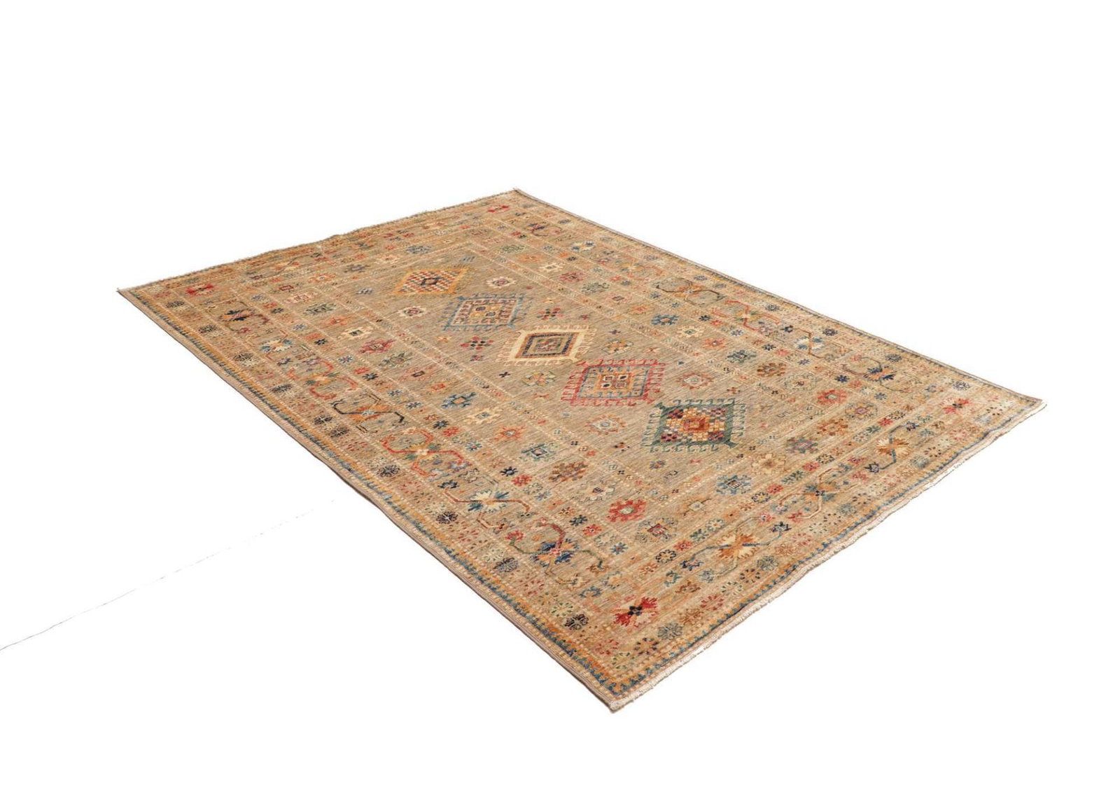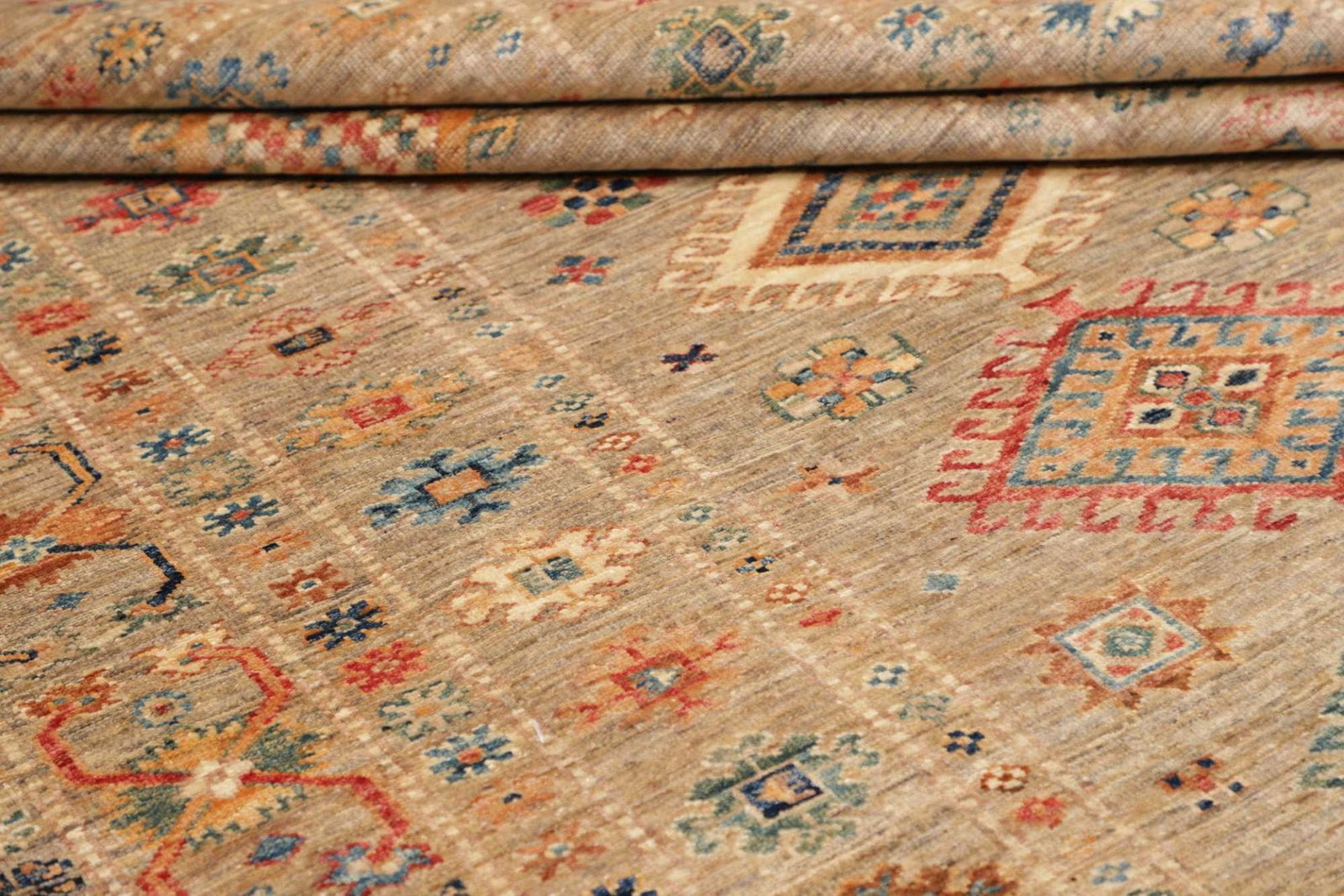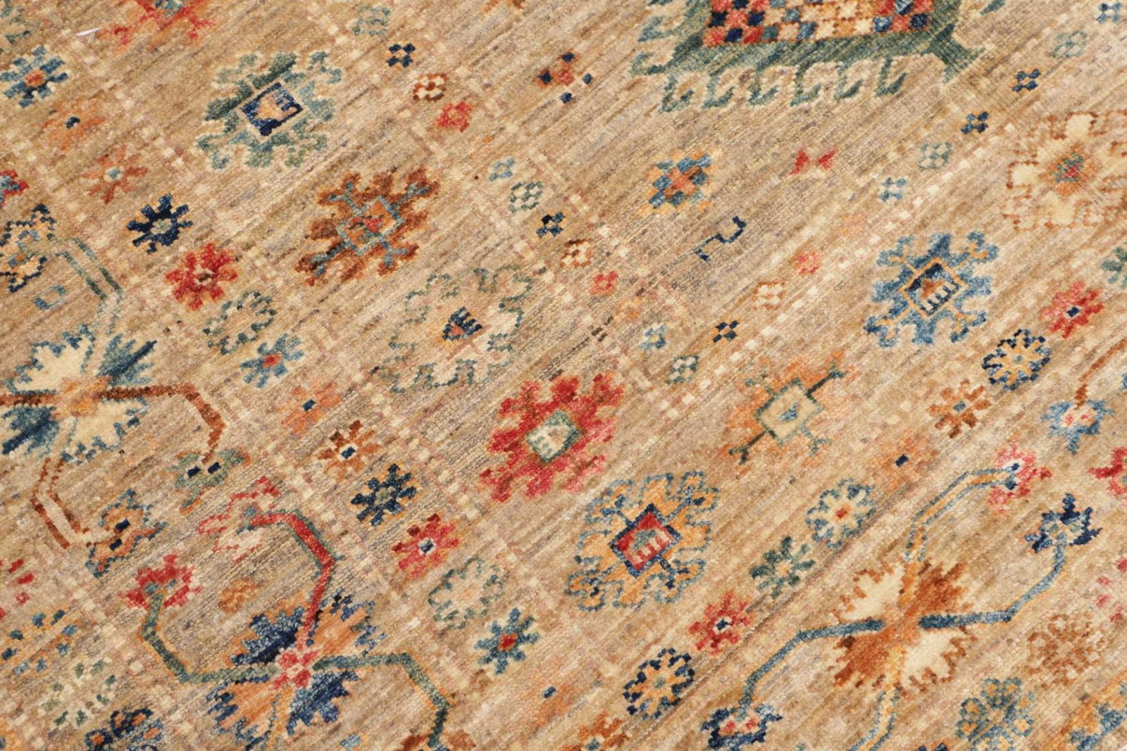 Dieser Kazak Orientteppich ist aus robusten und langlebigen Materialien gefertigt. Die Wolle, die für die Herstellung verwendet wird, sorgt für eine angenehme Haptik und eine hohe Strapazierfähigkeit. Die Knotendichte ist ein entscheidender Faktor für die Qualität eines Teppichs, und bei diesem Modell ist die Knotendichte so gewählt, dass sowohl die Strapazierfähigkeit als auch die Detailtreue des Musters optimiert sind. Jedes Knotenelement wurde sorgfältig und mit großer Präzision angebracht, was den Teppich zu einem langlebigen Begleiter macht.
