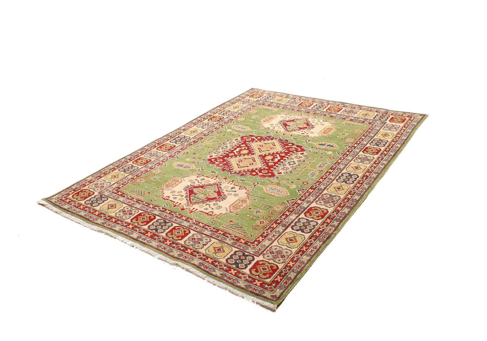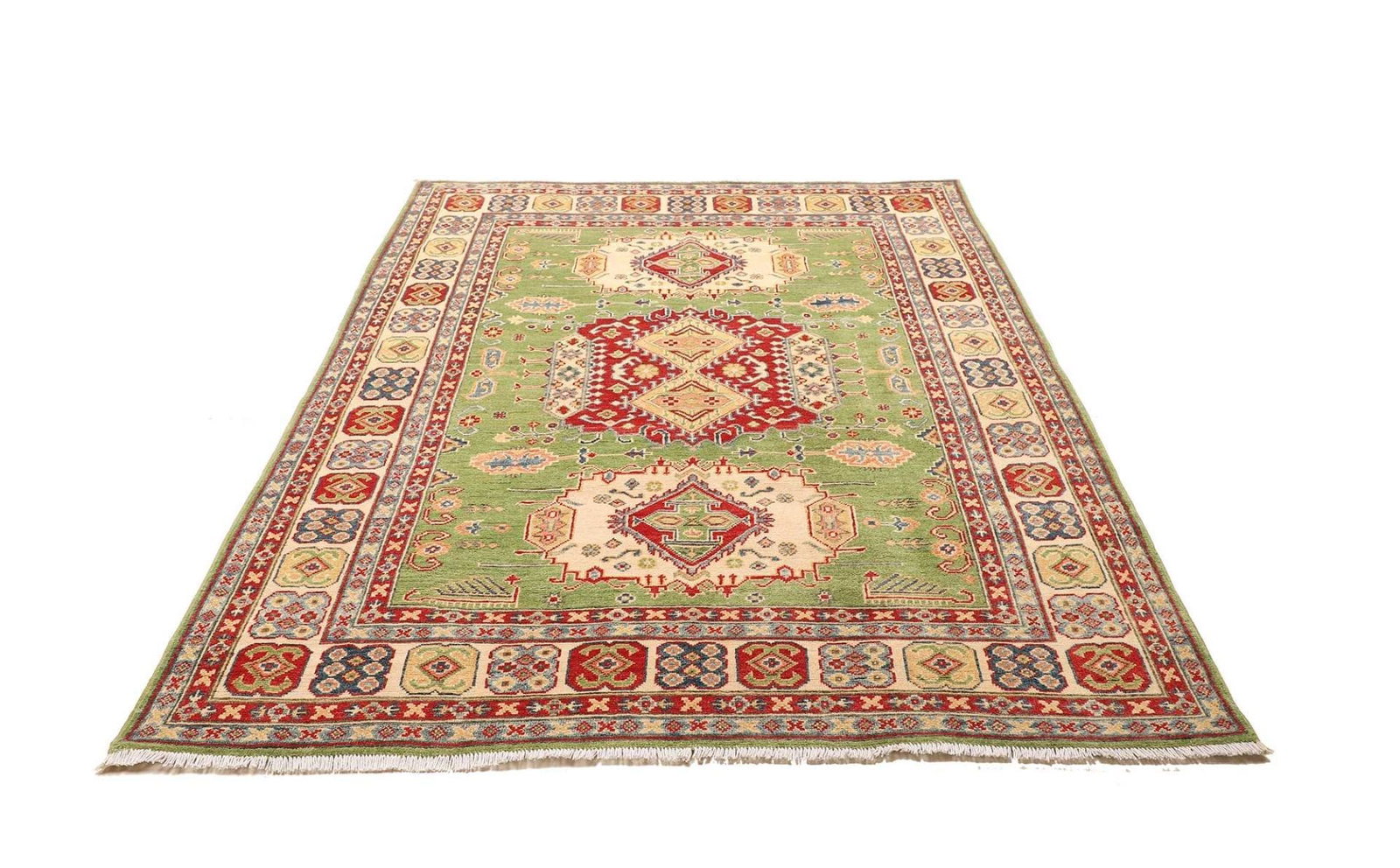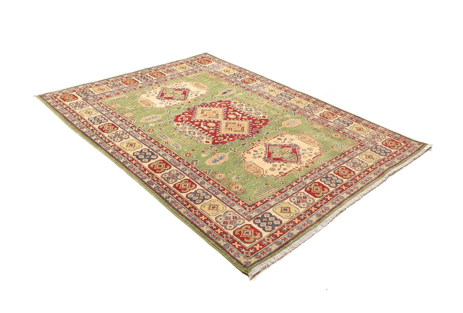 938$Ursprünglicher Preis war: 938$640$Aktueller Preis ist: 640$Kazak Teppich | Knotendichte: ca. 100.000 Knoten/m² | Material: 100% Schurwolle | Größe: 160 x 208 cm | Zustand: Handgeknüpft, ausgezeichnet | Herkunft: Pakistan, Kazak Provenienz | Florhöhe: ca. 5-7 mm
