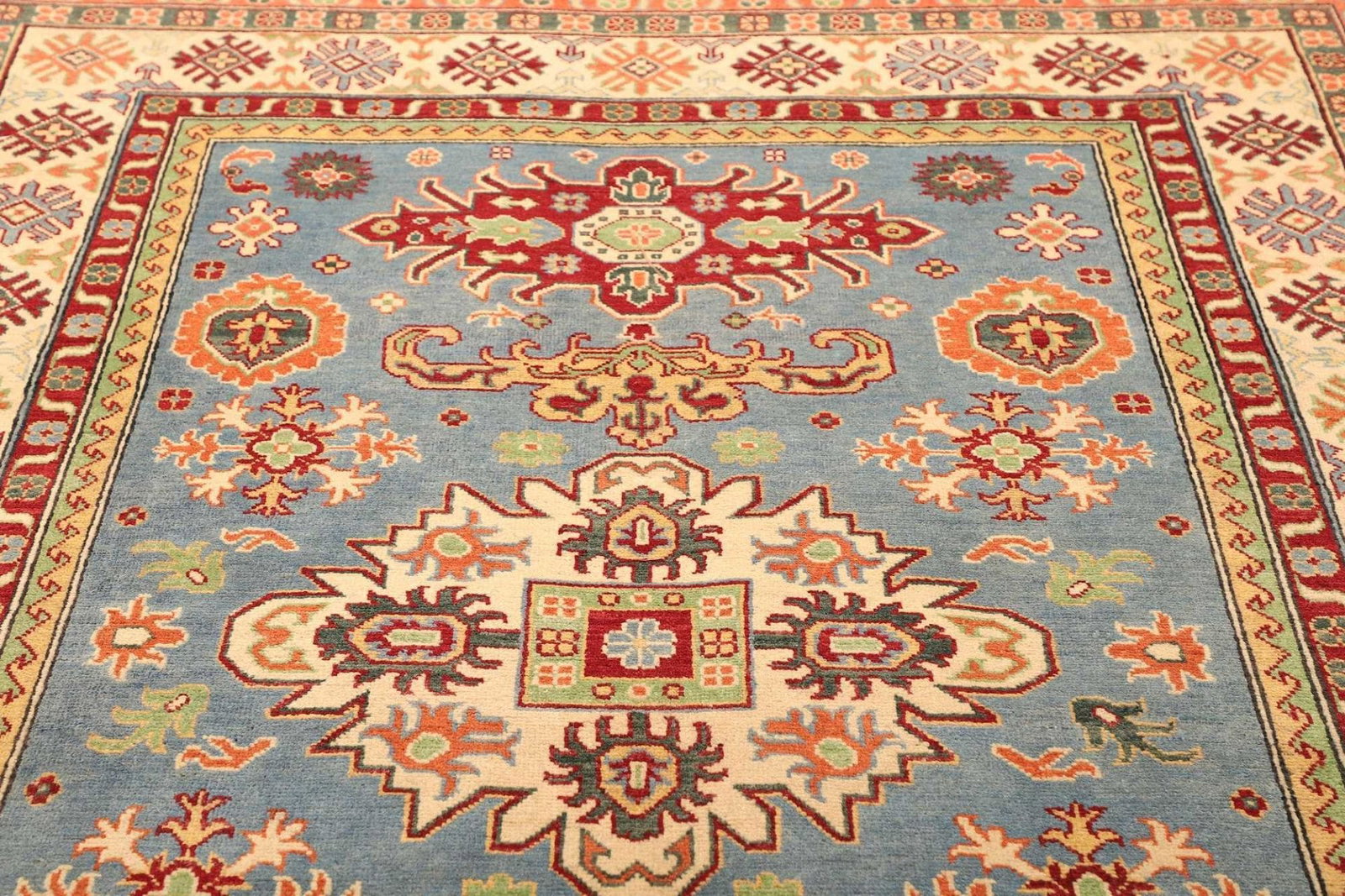 Kazak Orientteppich mit geometrischen Mustern, handgeknüpft