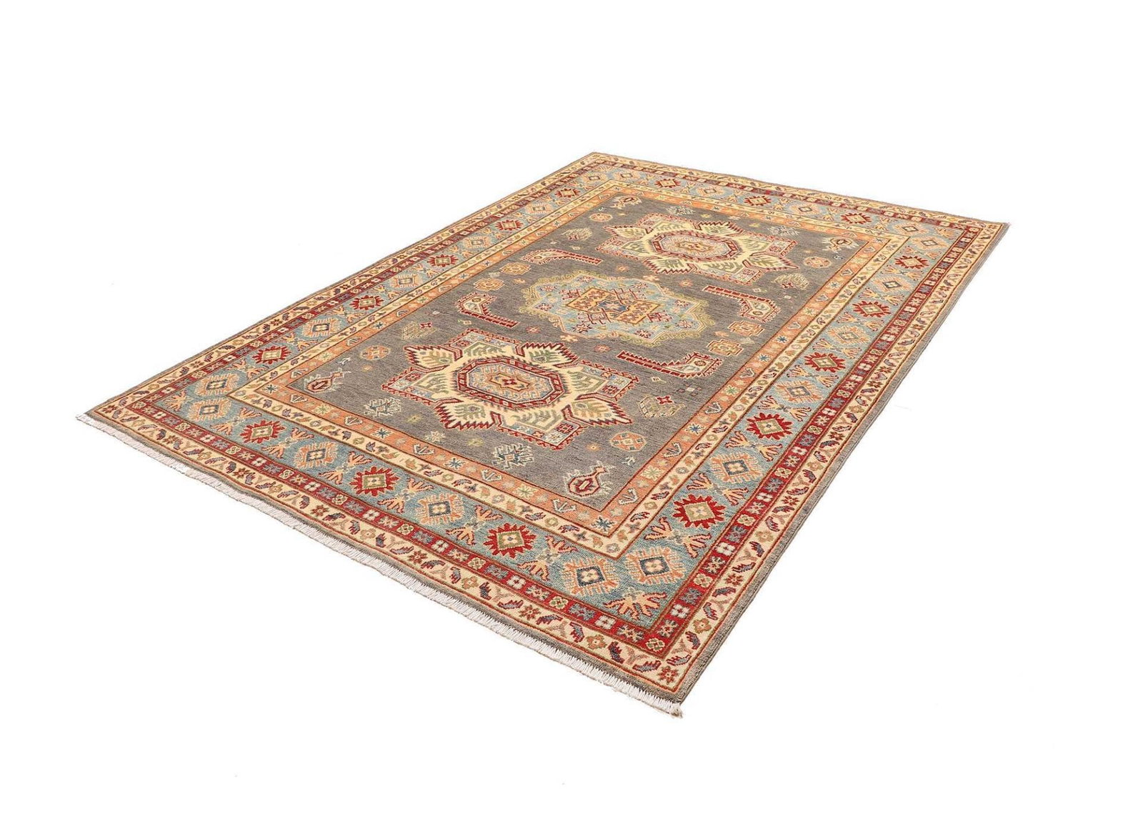 Kazak Teppich | Knotendichte: ca. 100.000 Knoten/m² | Material: 100% Schurwolle | Größe: 175×238 cm | Zustand: Handgeknüpft | Herkunft: Afghanistan | Muster: Geometrische Figuren