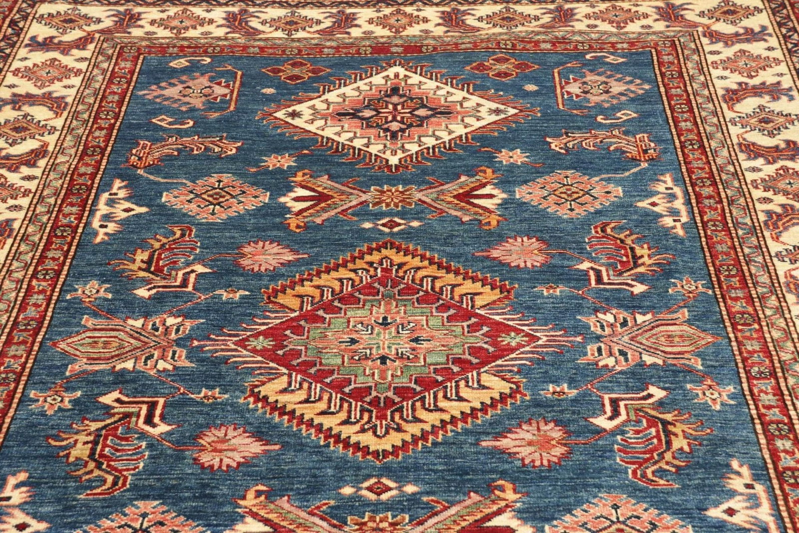 2868$Ursprünglicher Preis war: 2868$2140$Aktueller Preis ist: 2140$Kazak Teppich | Knotendichte: ca. 200.000 Knoten/m² | Material: 100% Schurwolle (Flor), 100% Baumwolle (Kette) | Größe: 175×243 cm | Herkunft: Pakistan | Zustand: Handgeknüpft, hochwertige Verarbeitung | Geometrische Muster und Figuren, typisch für Kazaks