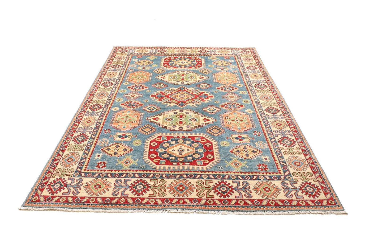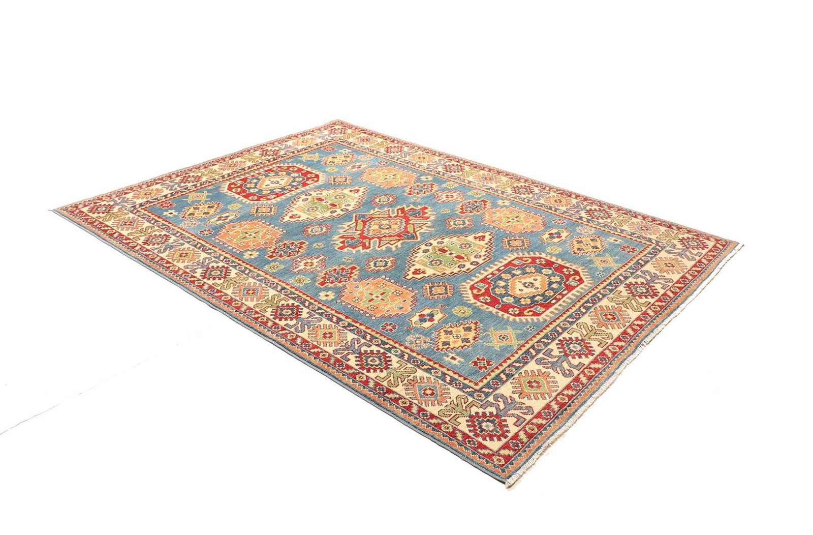 Der Kazak Orientteppich besticht durch sein geometrisches Muster und die hochwertige handgeknüpfte Verarbeitung. In jedem Detail dieses kunstvollen Teppichs spiegelt sich die traditionelle Teppichknüpfkunst wider, die seit Jahrhunderten in der Orientteppich-Produktion geschätzt wird. Dieser Teppich ist nicht nur ein praktisches Wohnaccessoire, sondern auch ein Stück Kunst und Kultur, das jeden Raum aufwertet.