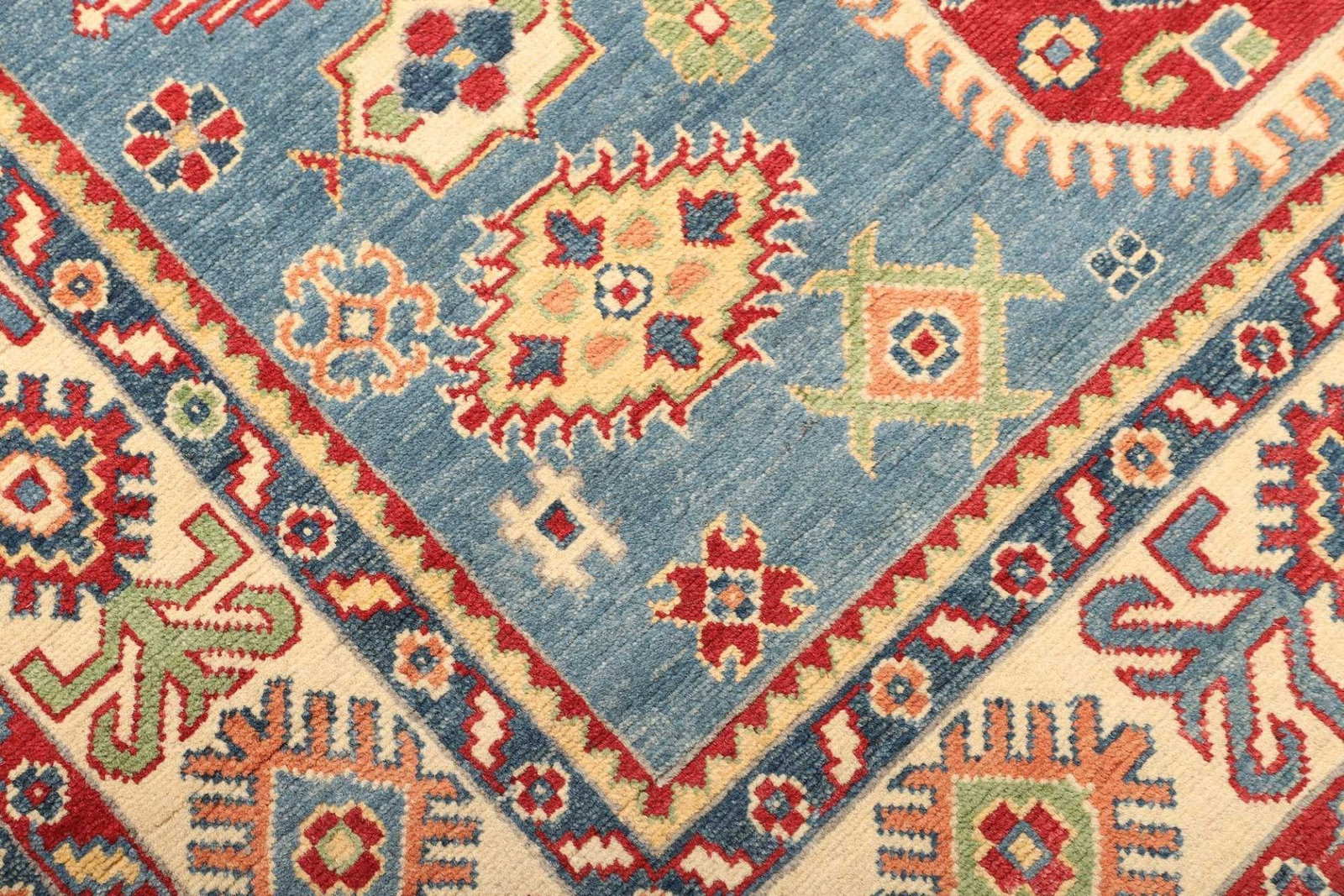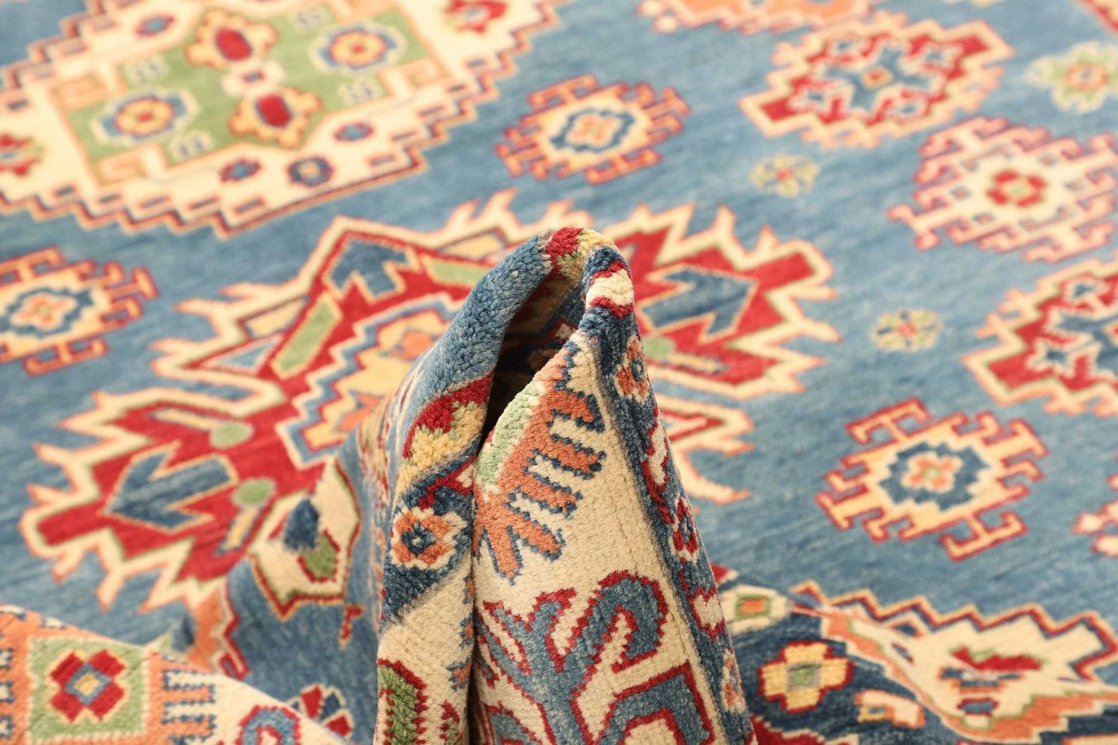 Der Kazak Orientteppich wird aus hochwertigen Materialien gefertigt, die sowohl Langlebigkeit als auch Komfort bieten. Die Wollfasern, die für die Knotentechnik verwendet werden, sorgen für eine weiche Textur und eine angenehme Fußwärme. Die Handknüpfung ermöglicht eine hohe Knotendichte, was die Strapazierfähigkeit und die Detailgenauigkeit des Musters erhöht. Jedes Stück ist einzigartig und erzählt seine eigene Geschichte, die in den kunstvollen Knoten und den lebendigen Farben zum Ausdruck kommt.