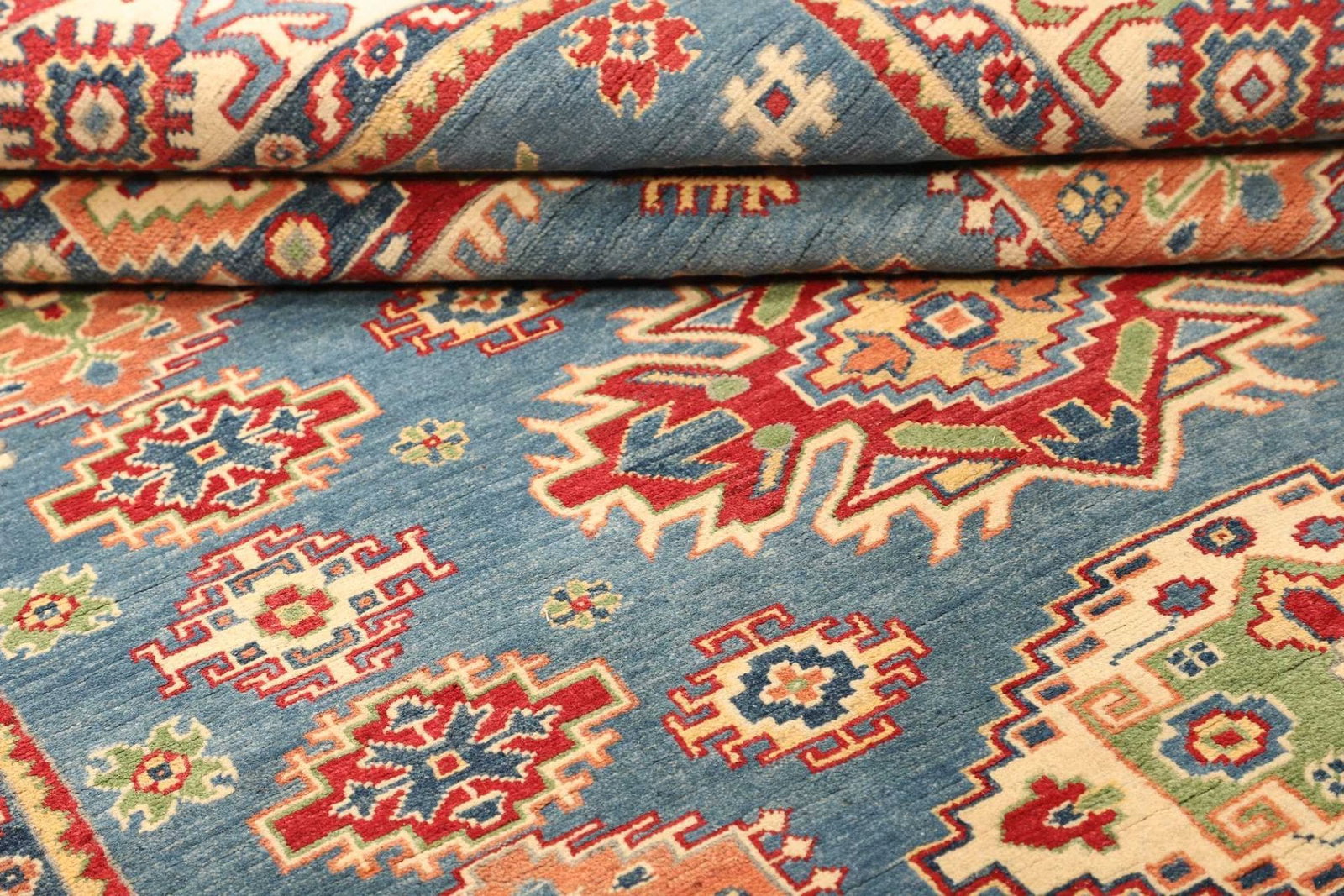 Zusätzlich ist jeder Kazak Teppich ein Unikat, das nicht nur durch seine Farben und Muster besticht, sondern auch durch die Detailgenauigkeit, die von den Meistern der Teppichknüpfkunst sorgfältig ausgeführt wird. Die faszinierenden Designs machen diesen Teppich zu einem ausgefallenen Dekorationsobjekt, das sowohl traditionell als auch modern in jedes Wohnkonzept integriert werden kann.