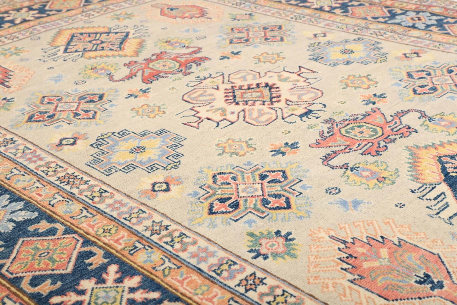 Kazak Teppich | Knotendichte: ca. 100.000 Knoten/m² | Material: 100% Schurwolle | Größe: 178×238 cm | Herkunft: Pakistan | Zustand: Handgeknüpft | Geometrisches Muster