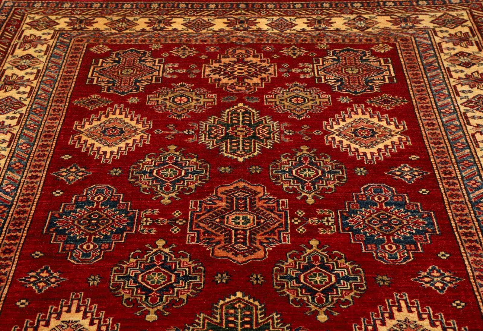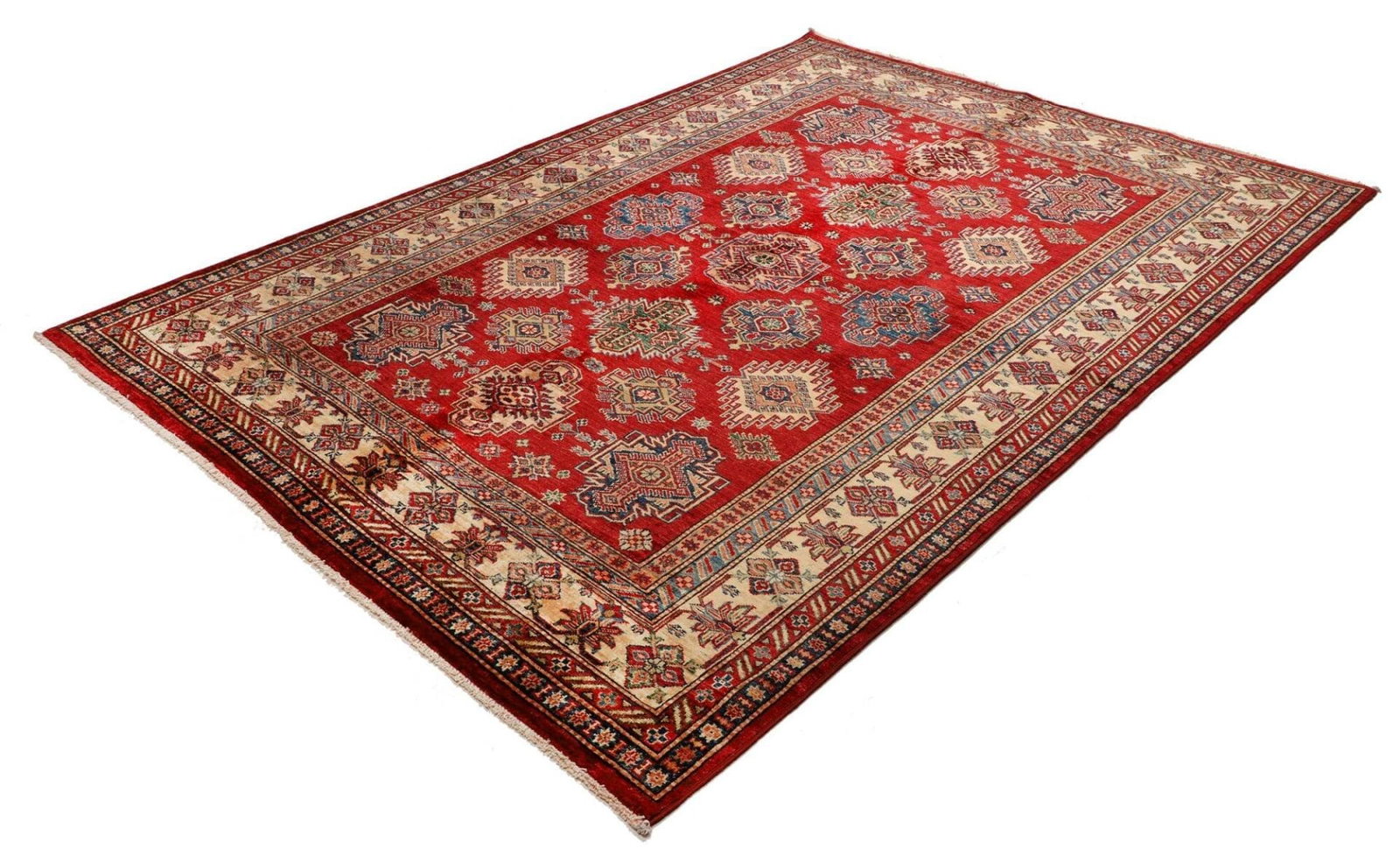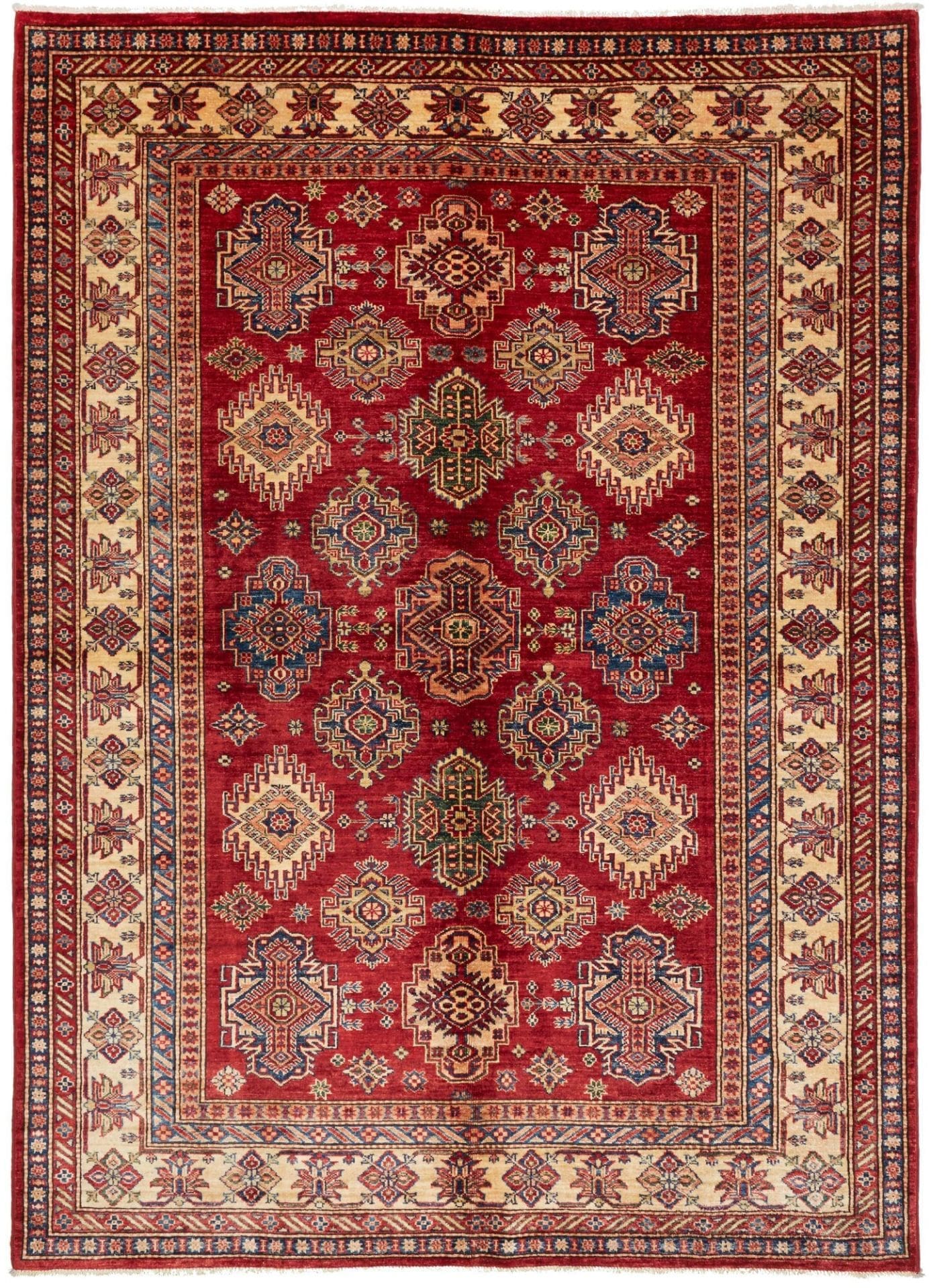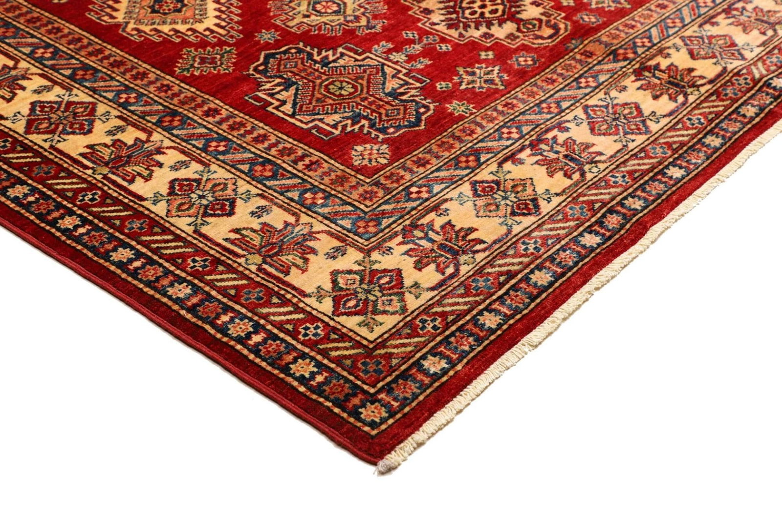 Kazak Teppich | Knotendichte: ca. 200.000 Knoten/m² | Material: 100% Schurwolle | Kette: 100% Baumwolle | Größe: 183 x 250 cm | Herkunft: Pakistan | Zustand: Handgeknüpft und in ausgezeichnetem Zustand