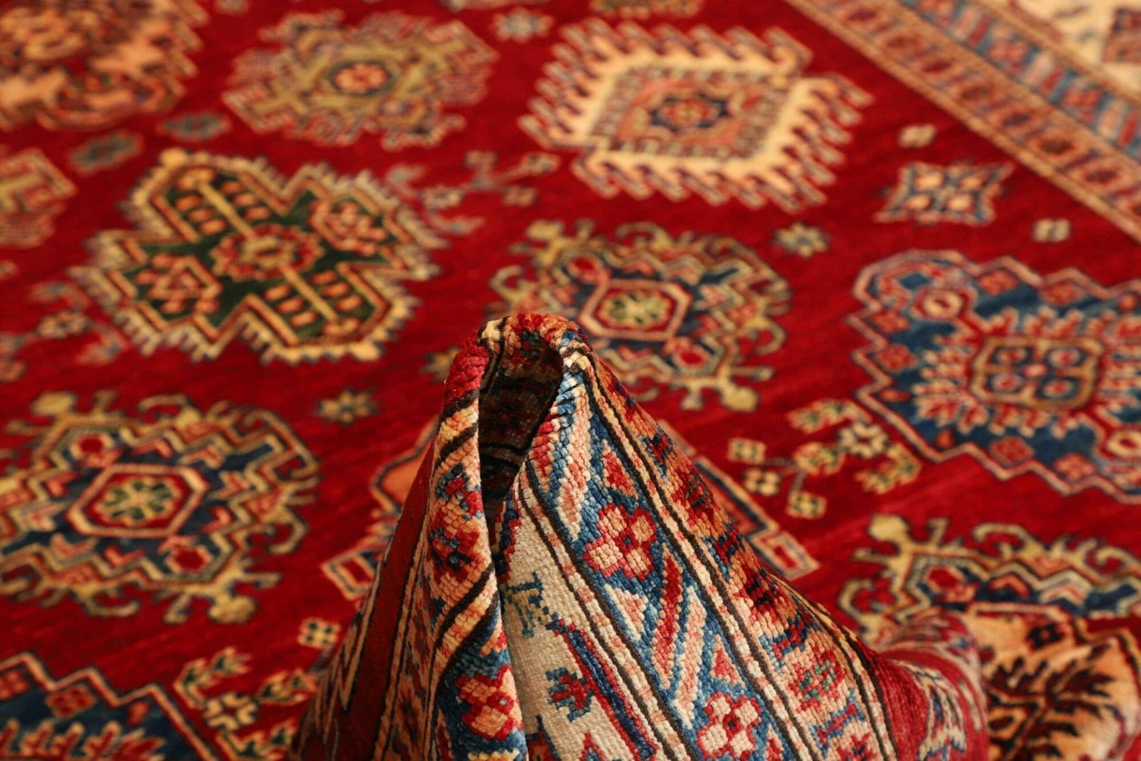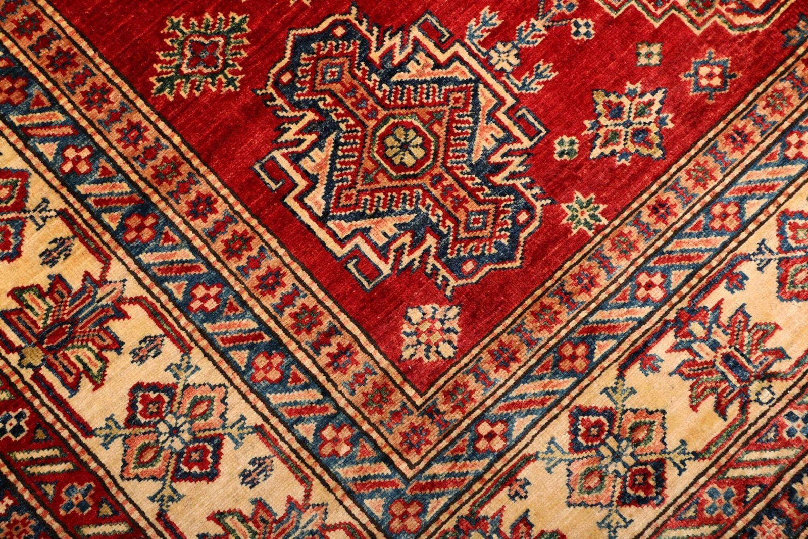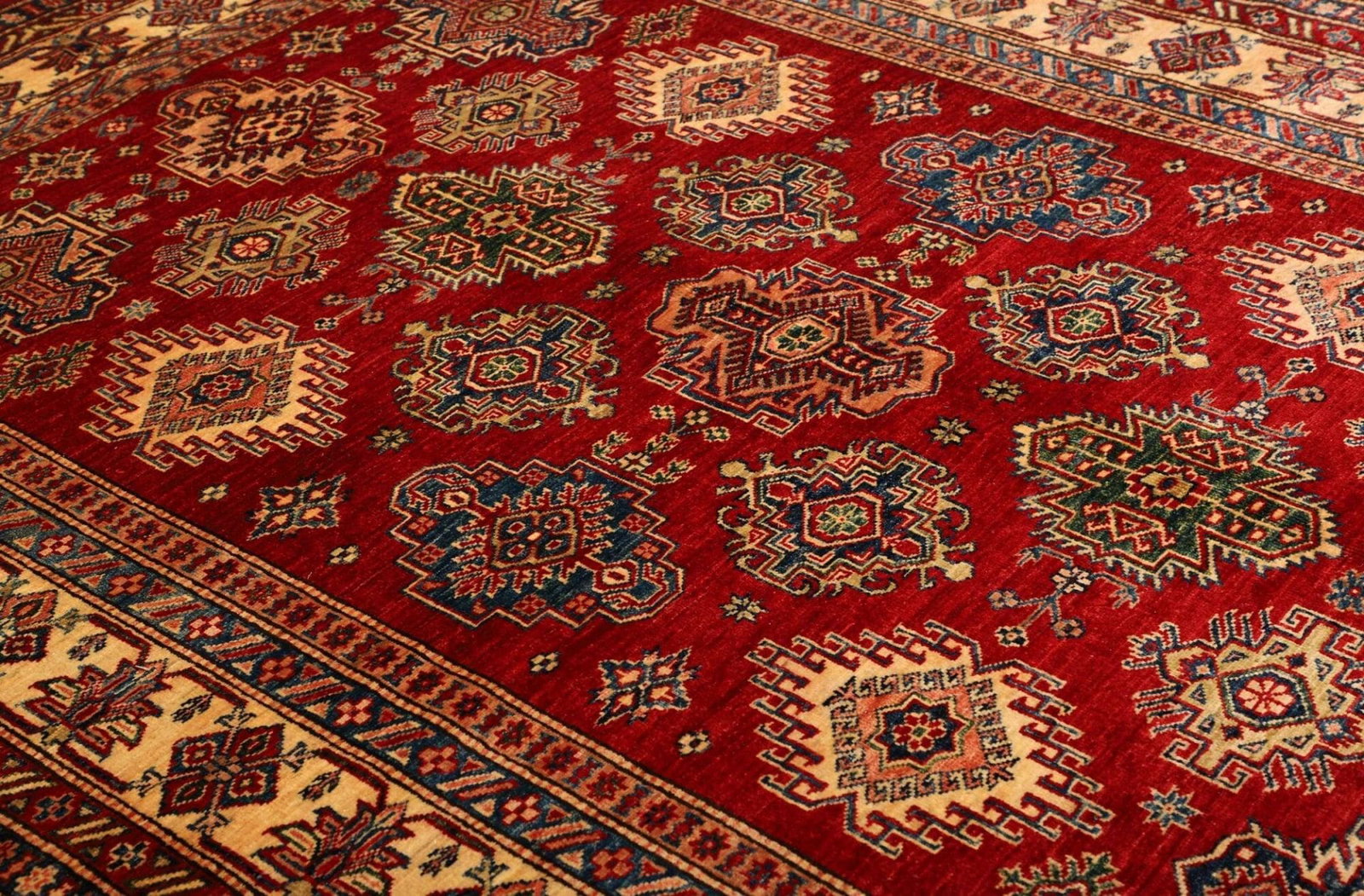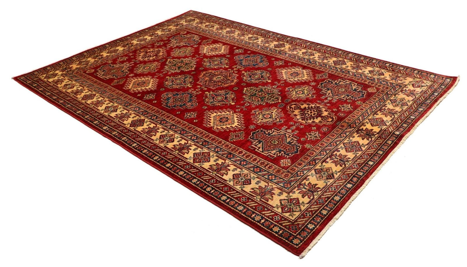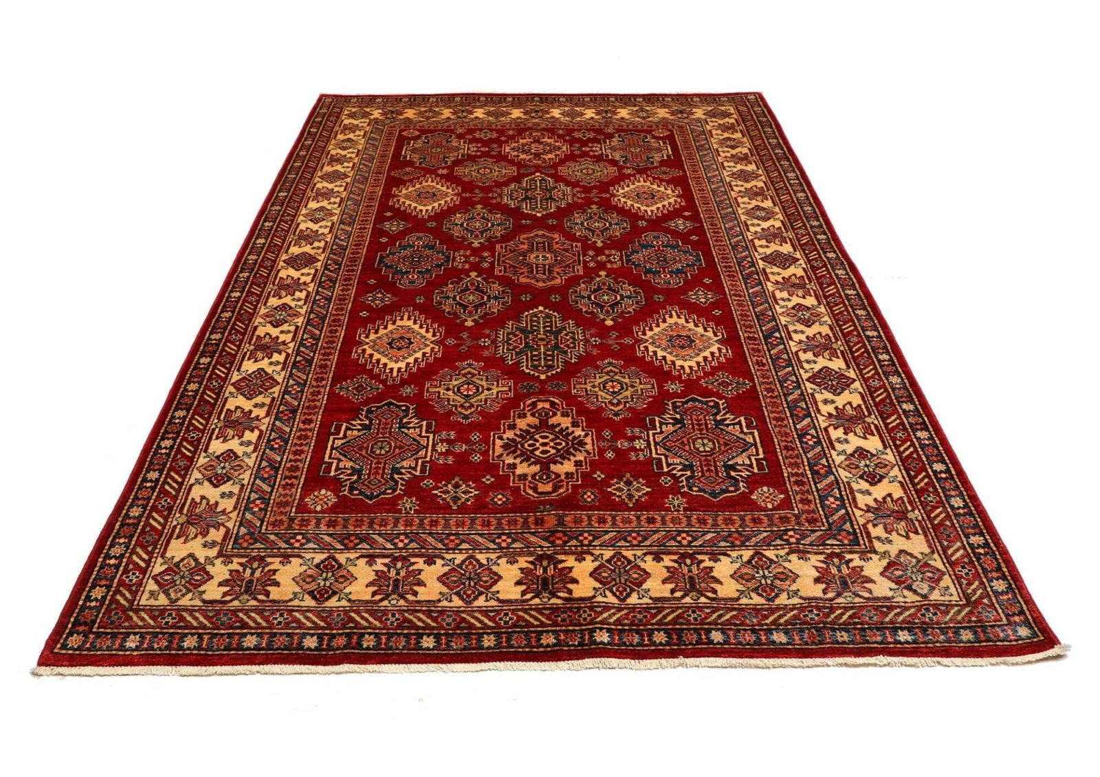 Kazak Teppich | Knotendichte: ca. 200.000 Knoten/m² | Material: 100% Schurwolle | Kette: 100% Baumwolle | Größe: 183 x 250 cm | Herkunft: Pakistan | Zustand: Handgeknüpft und in ausgezeichnetem Zustand