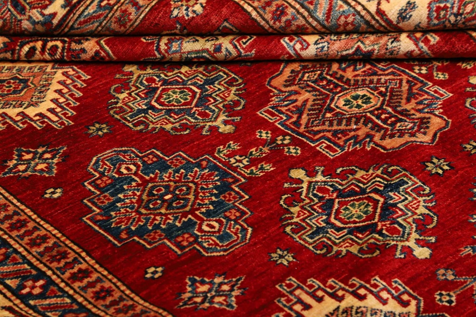 Der Kazak Orientteppich ist aus hochwertigen Materialien gefertigt, die nicht nur für seine Langlebigkeit sorgen, sondern auch für die angenehme Haptik und den unübertroffenen Komfort. Bei der Herstellung von Teppichen in der Kaukasusregion, wo dieser Teppich seinen Ursprung hat, kommen oft Wolle und Baumwolle zum Einsatz. Diese Materialien sind bekannt für ihre Robustheit und Belastbarkeit. Die feinsten Teppiche zeichnen sich zudem durch eine hohe Knotendichte aus, die für die Detailtreue und den Reichtum der Muster verantwortlich ist.