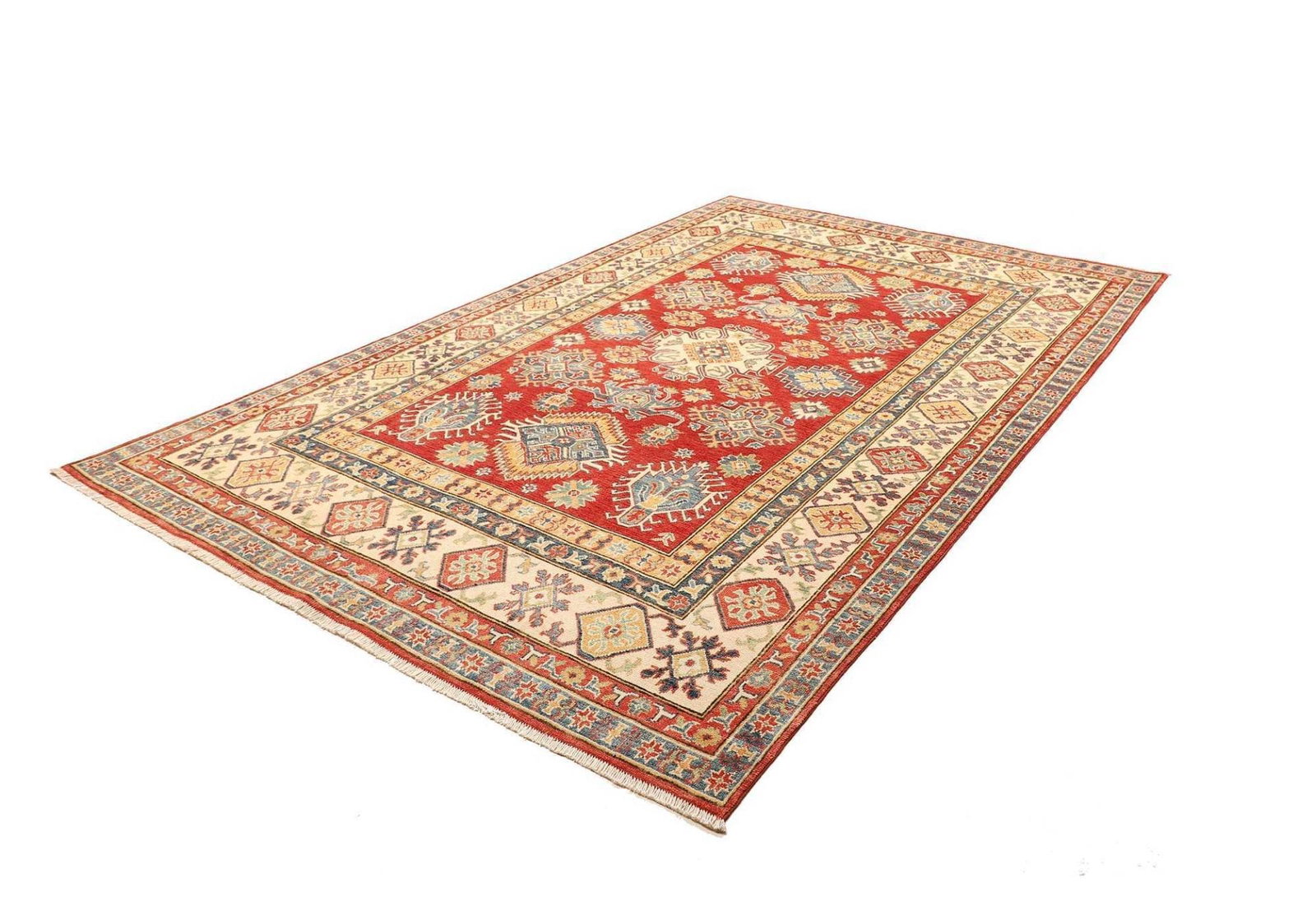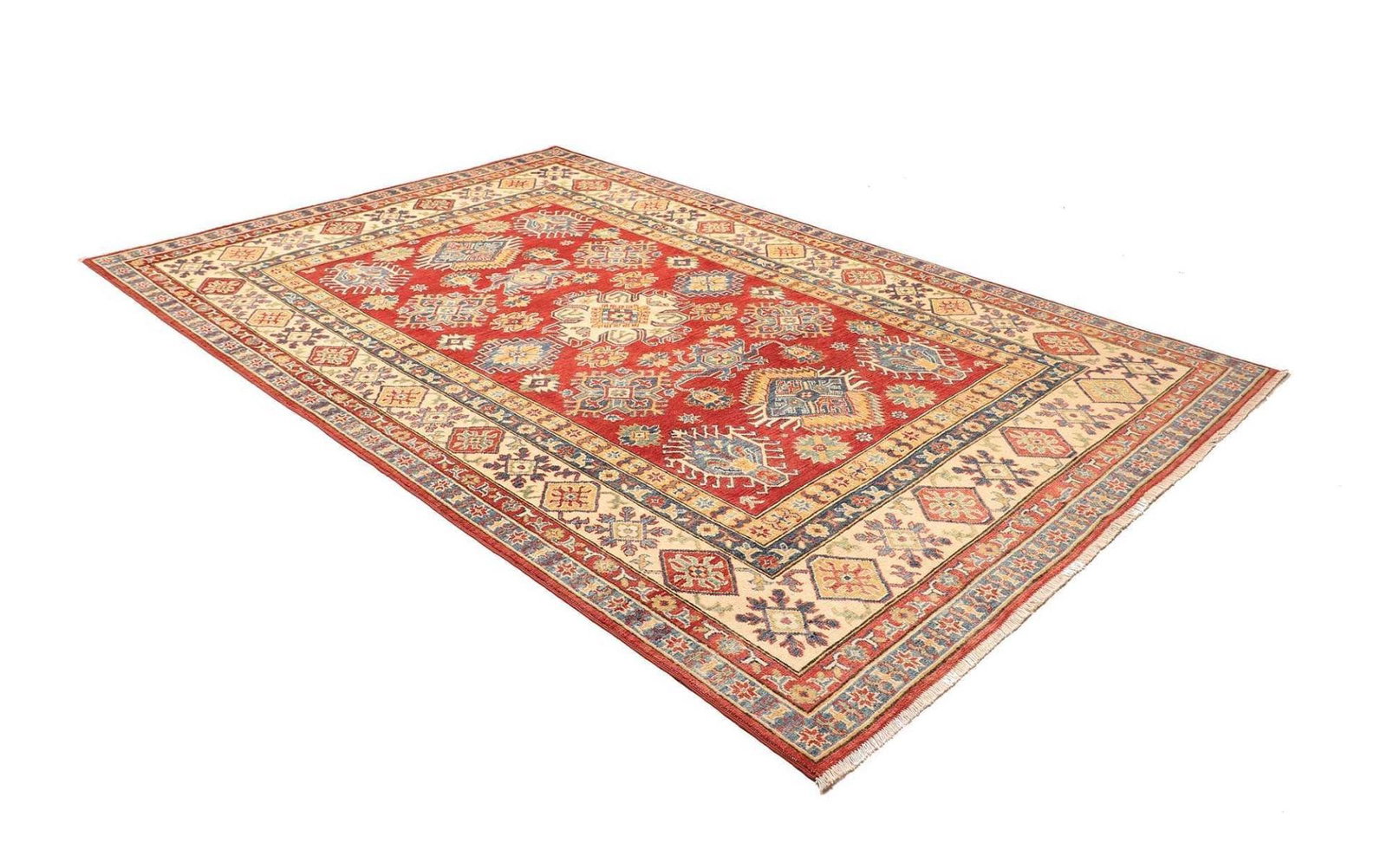 1608$Ursprünglicher Preis war: 1608$1360$Aktueller Preis ist: 1360$Kazak Teppich | Knotendichte: ca. 100.000 Knoten/m² | Material: 100% Schurwolle | Größe: 199×296 cm | Herkunft: Pakistan | Zustand: Handgeknüpft | Geometrische Muster und Figuren