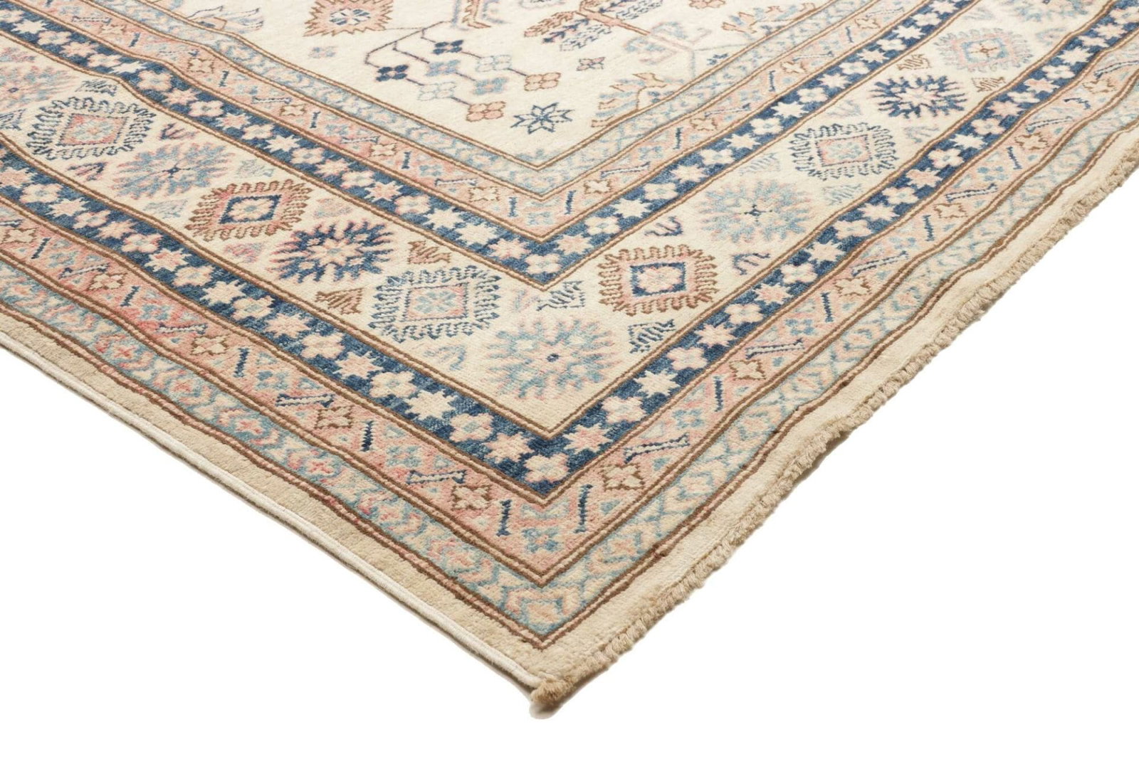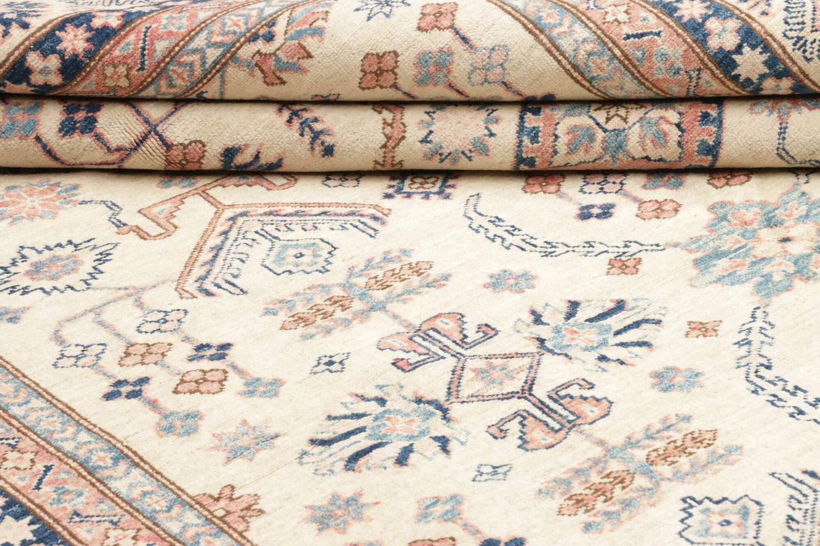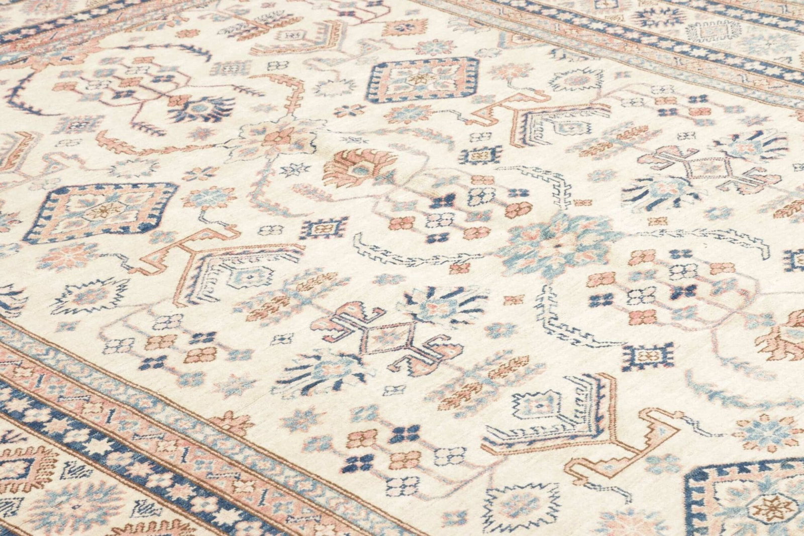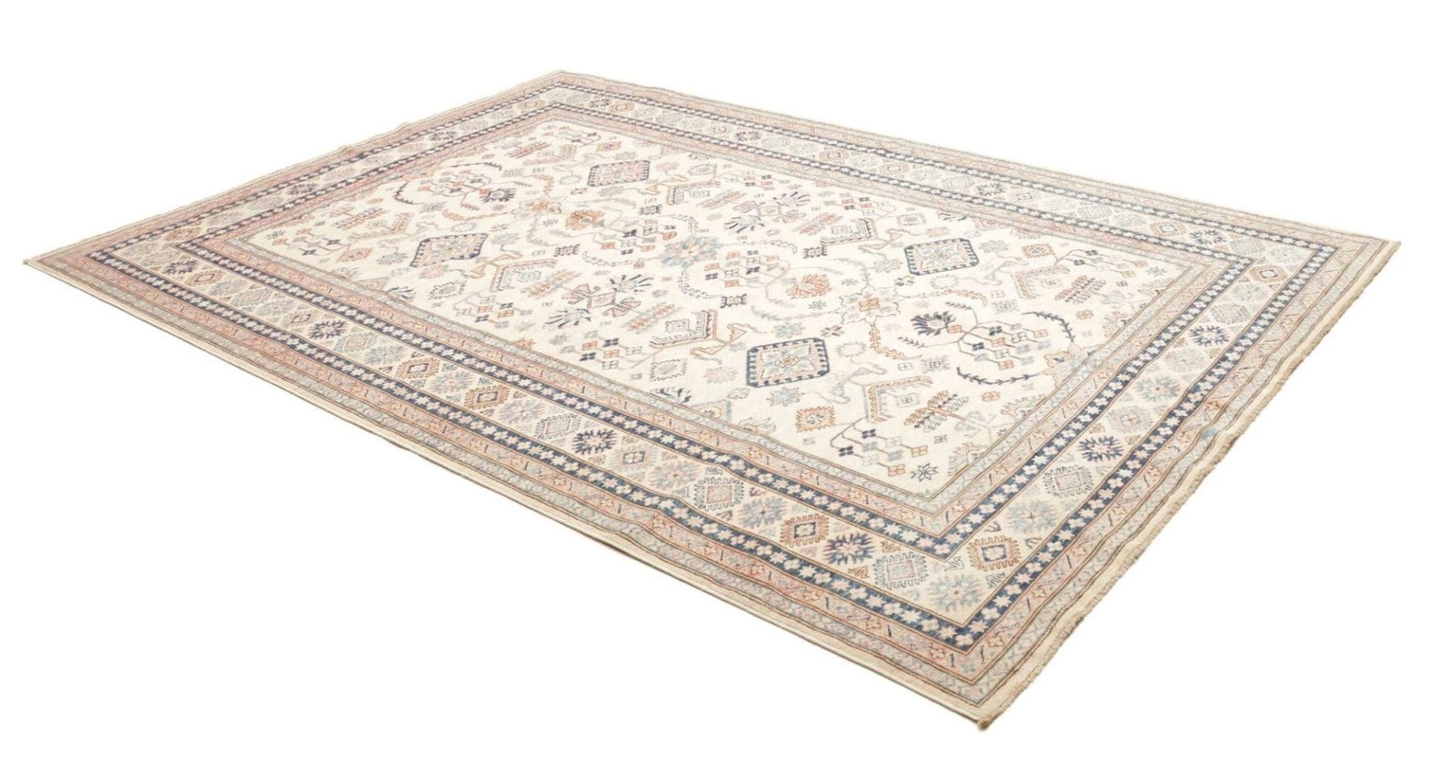 Kazak Teppich | Größe: 207 x 295 cm | Knotendichte: ca. 200.000 Knoten/m² | Flor: 100% Schurwolle | Kette: 100% Baumwolle | Herkunft: Pakistan | Zustand: Handgeknüpft, sehr gut erhalten | Geometrische Muster und Figuren