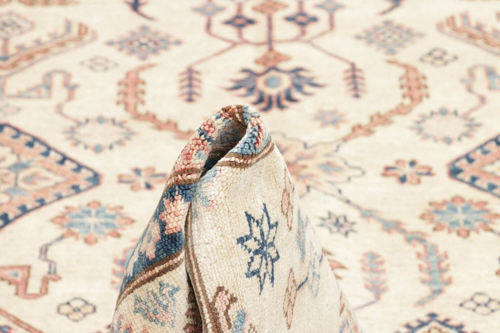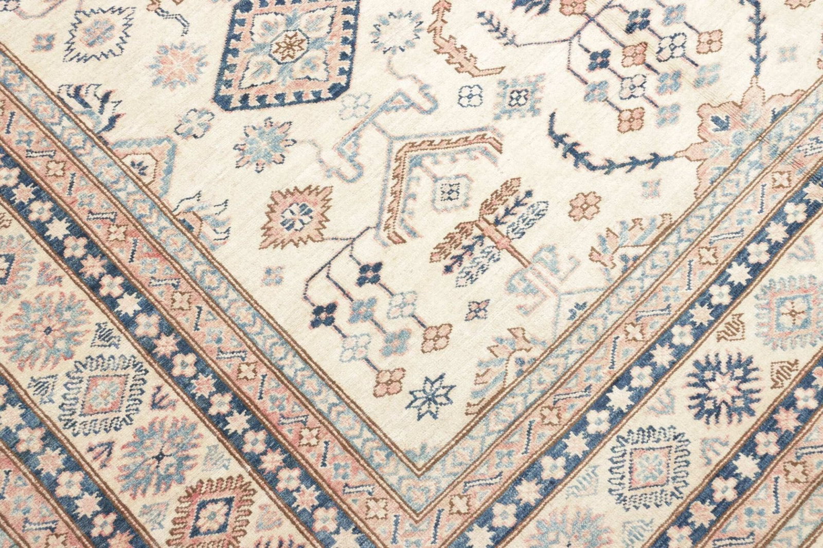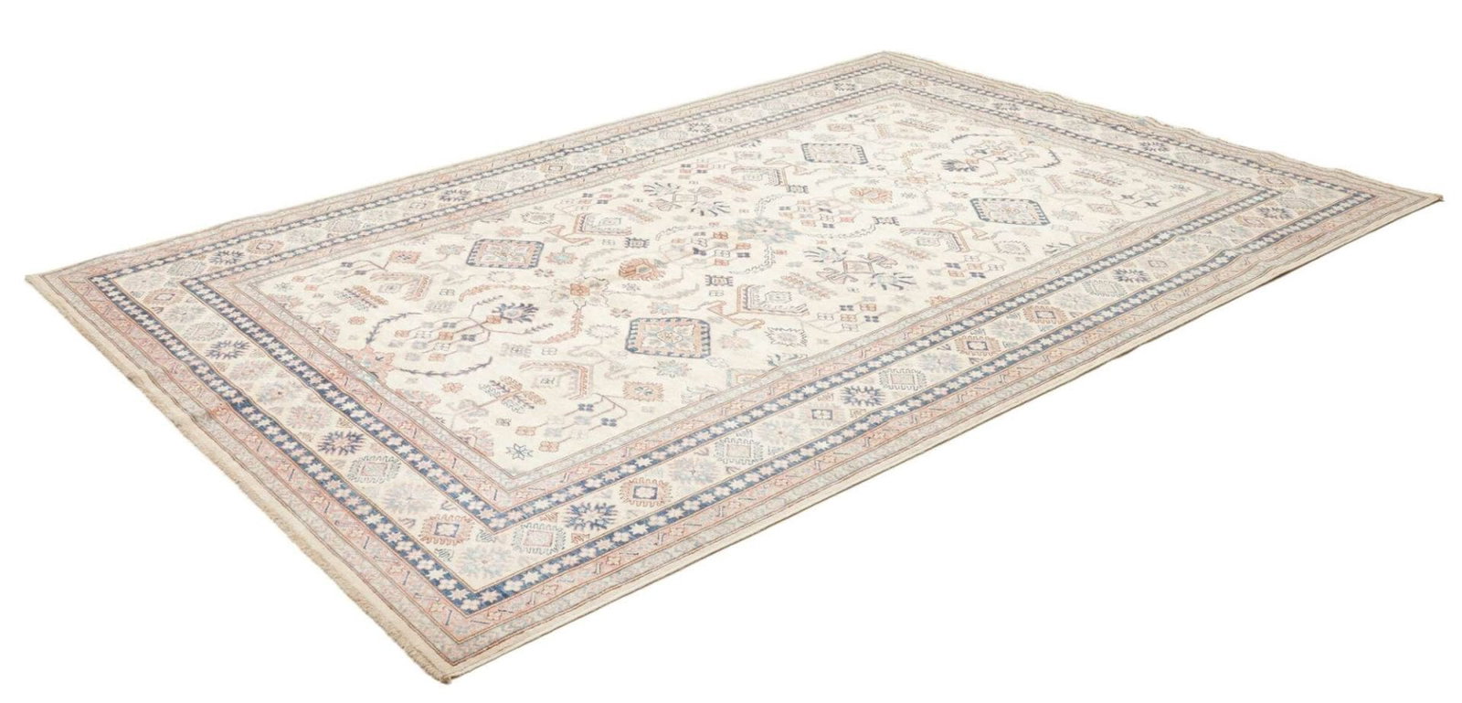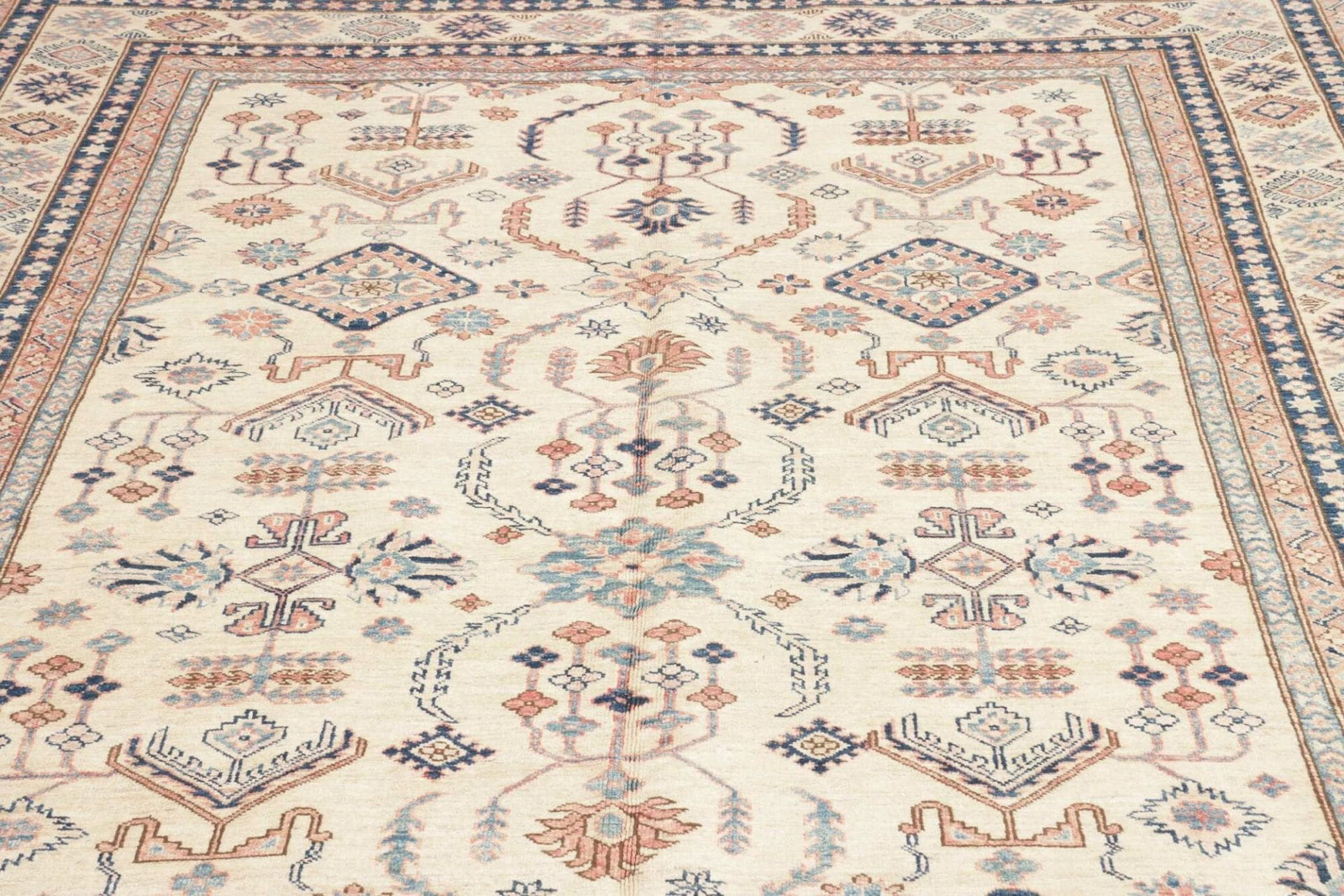 Kazak Teppich | Größe: 207 x 295 cm | Knotendichte: ca. 200.000 Knoten/m² | Flor: 100% Schurwolle | Kette: 100% Baumwolle | Herkunft: Pakistan | Zustand: Handgeknüpft, sehr gut erhalten | Geometrische Muster und Figuren