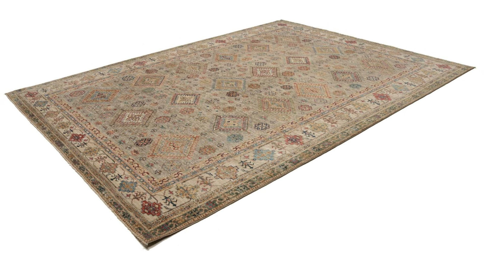 6986$Ursprünglicher Preis war: 6986$5564$Aktueller Preis ist: 5564$Kazak Teppich | Knotendichte: ca. 200.000 Knoten/m² | Material: 100% Schurwolle | Größe: 253 x 333 cm | Herkunft: Pakistan | Zustand: Handgeknüpft | Geometrisches Muster und Figuren