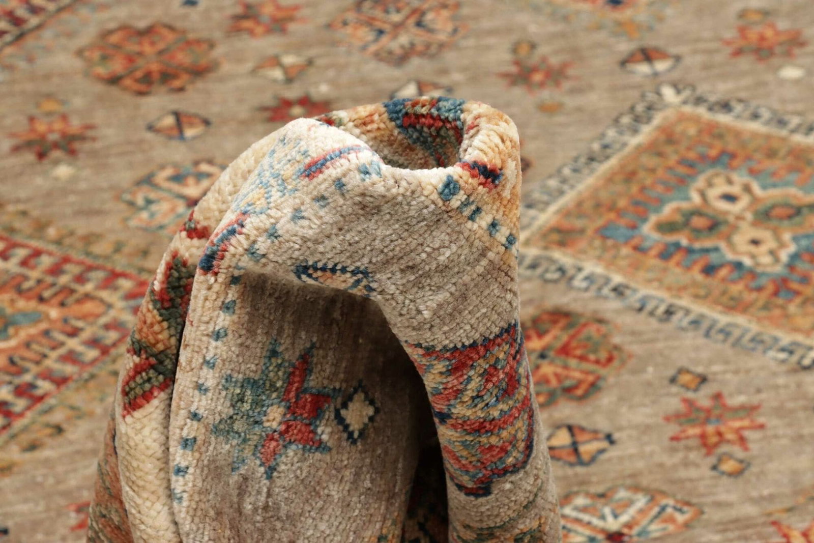 Ein herausragendes Merkmal des Kazak Orientteppichs ist seine Vielseitigkeit. Er eignet sich für verschiedene Bereiche Ihres Zuhauses, sei es im Wohnzimmer, Esszimmer, Schlafzimmer oder im Flur. Darüber hinaus ist der Teppich pflegeleicht und behält auch bei regelmäßiger Nutzung seine Form und Farben. Die Schurwolle bietet eine natürliche Schmutzabweisung, wodurch der Teppich lästige Flecken und Verunreinigungen abweist.
