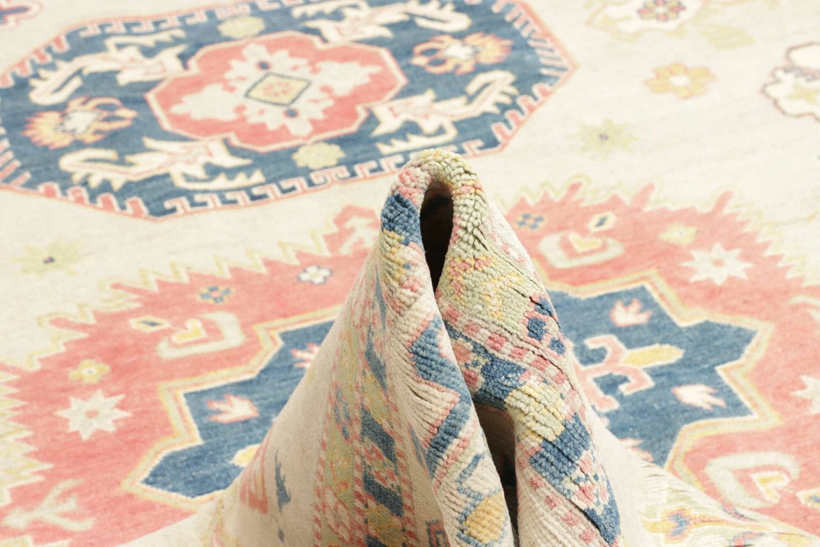 Das geometrische Muster des Kazak Orientteppichs ist ein Beispiel für die kunstvolle Gestaltung, die diese Teppiche auszeichnet. Geometrische Designs sind oft Ausdruck von Harmonie und Ordnung, und sie können verschiedene Bedeutungen haben, je nach Region und Kultur. In vielen Fällen spiegelt sich die Natur in diesen Mustern wider, während andere Designs spirituelle oder kulturelle Symbole darstellen. Die Vielzahl an Formen und Farben macht diesen Teppich zu einem vielseitigen Gestaltungselement in jedem Raum, sei es im modernen oder im traditionellen Wohnstil.
