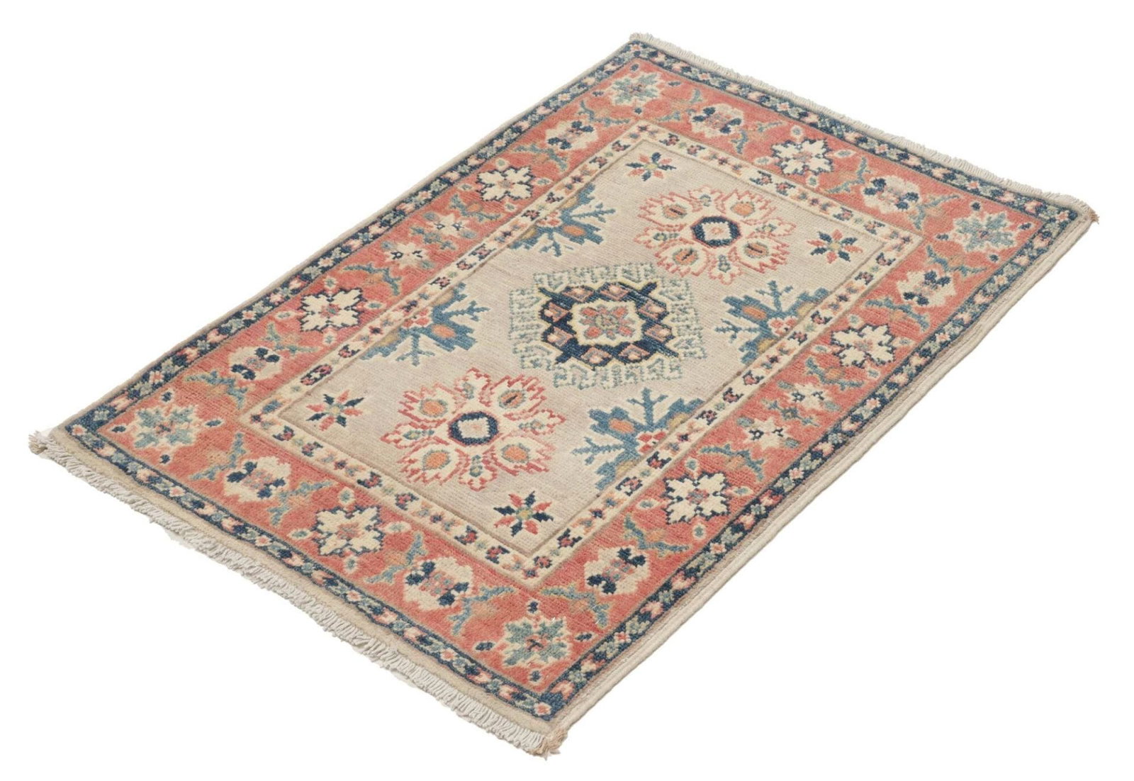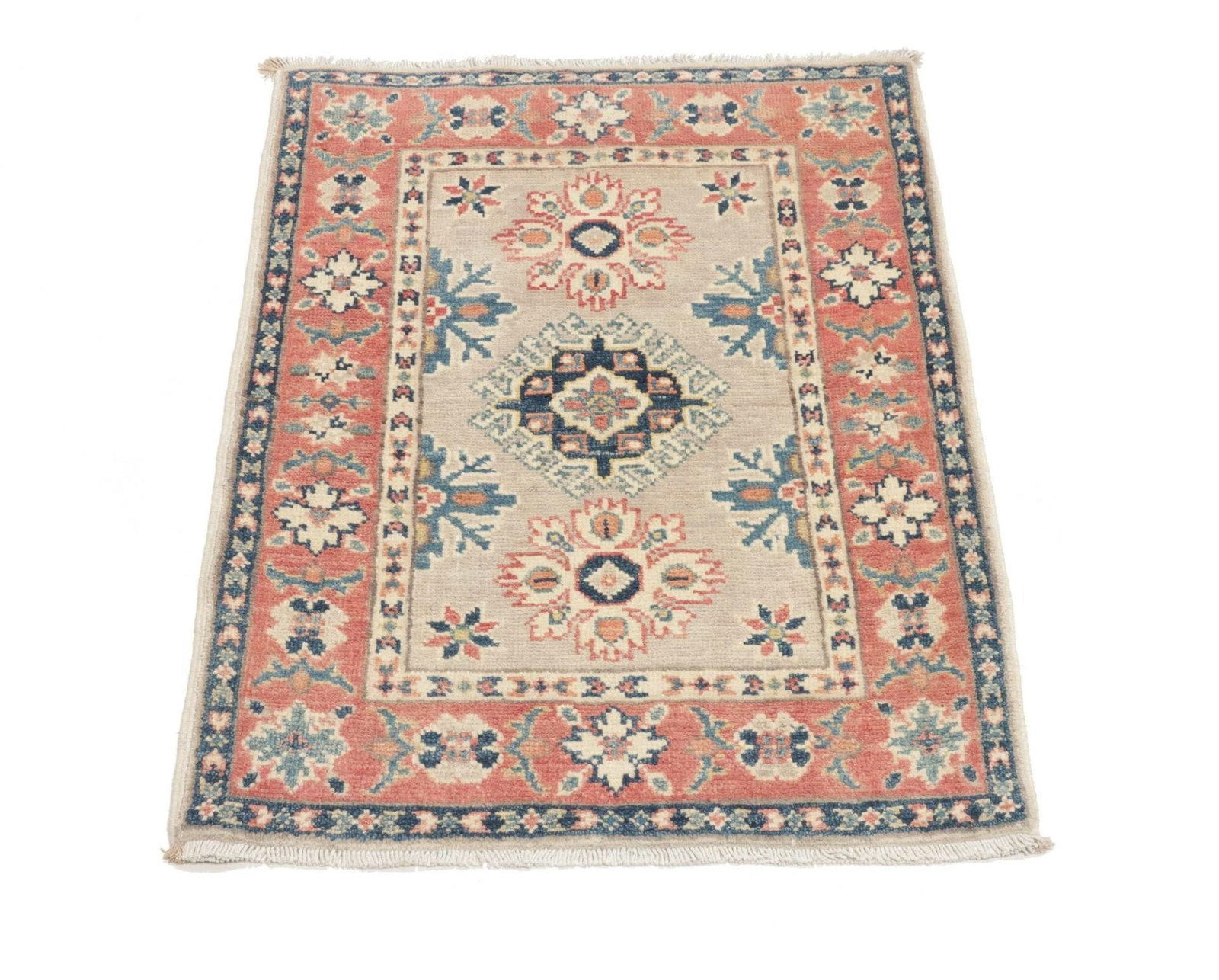 Kazak Orientteppich 64 x 86cm, geometrisches Muster, handgeknüpft