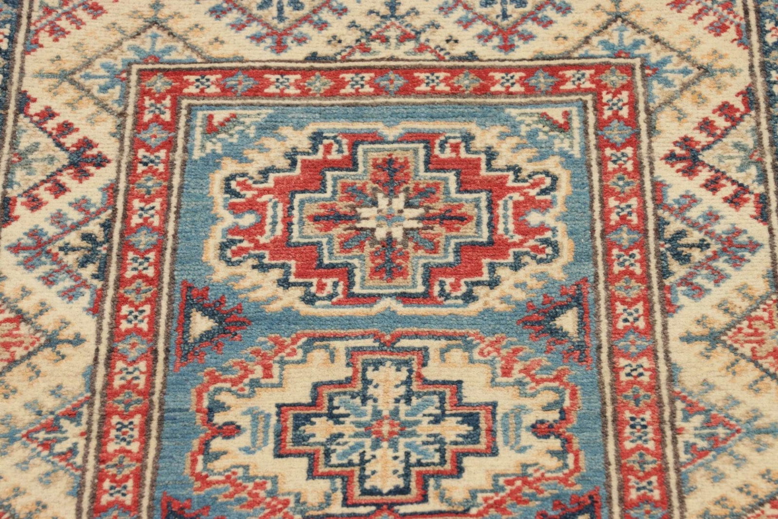 Kazak Orientteppich 64 x 92 cm, geometrisches Muster, handgeknüpft