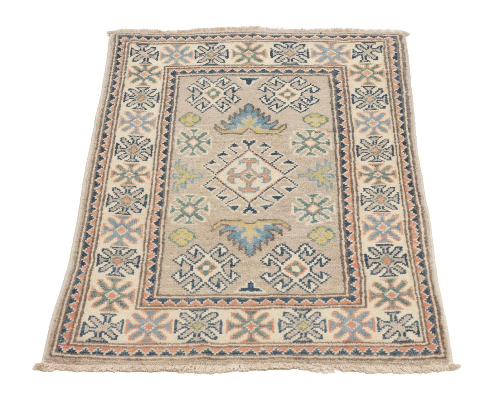 Kazak Orientteppich 64 x 96cm, geometrisches Muster, handgeknüpft