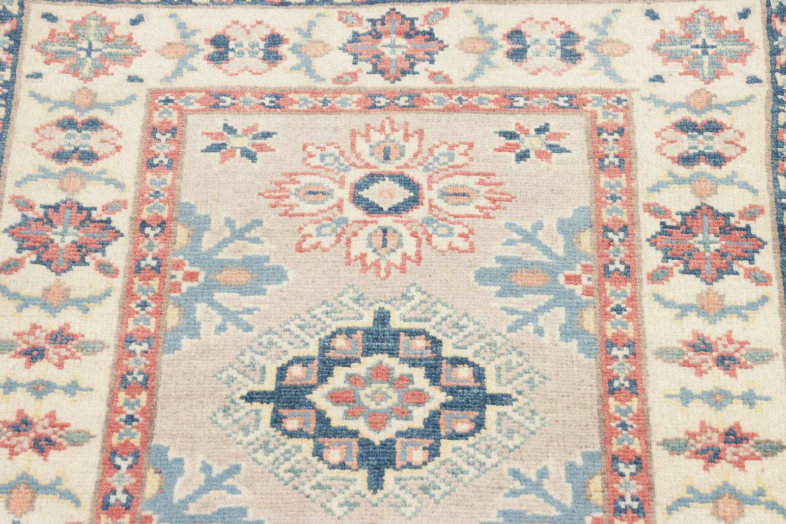 202$Ursprünglicher Preis war: 202$152$Aktueller Preis ist: 152$Kazak Teppich | Knotendichte: ca. 100.000 Knoten/m² | Material: 100% Schurwolle | Größe: 65 x 80 cm | In sehr gutem Zustand | Herkunft: Pakistan | Provenienz: Kazak | Verarbeitung: Handgeknüpft