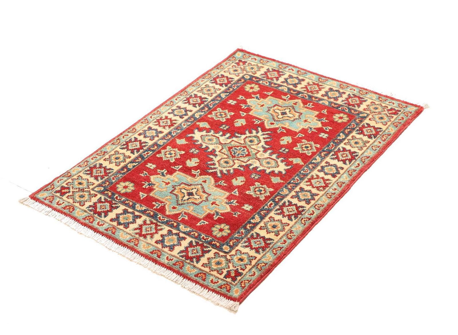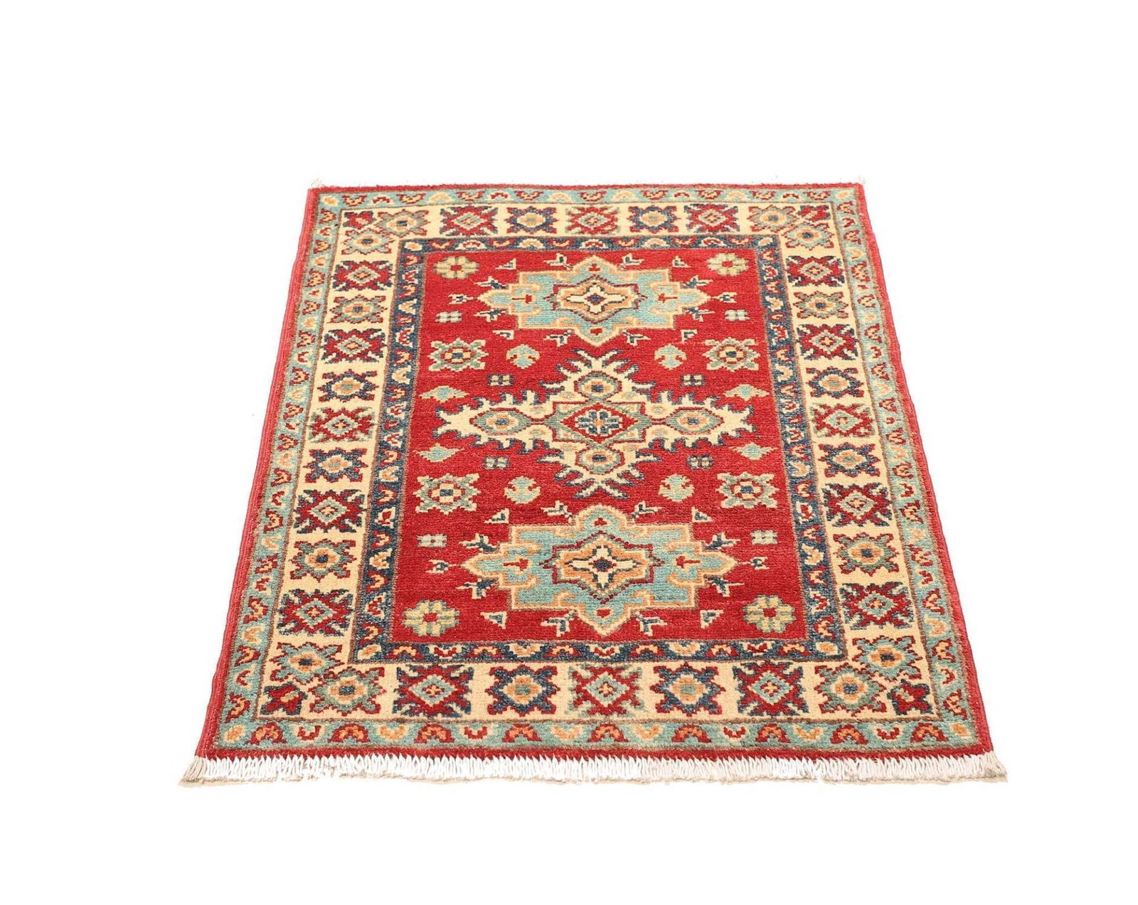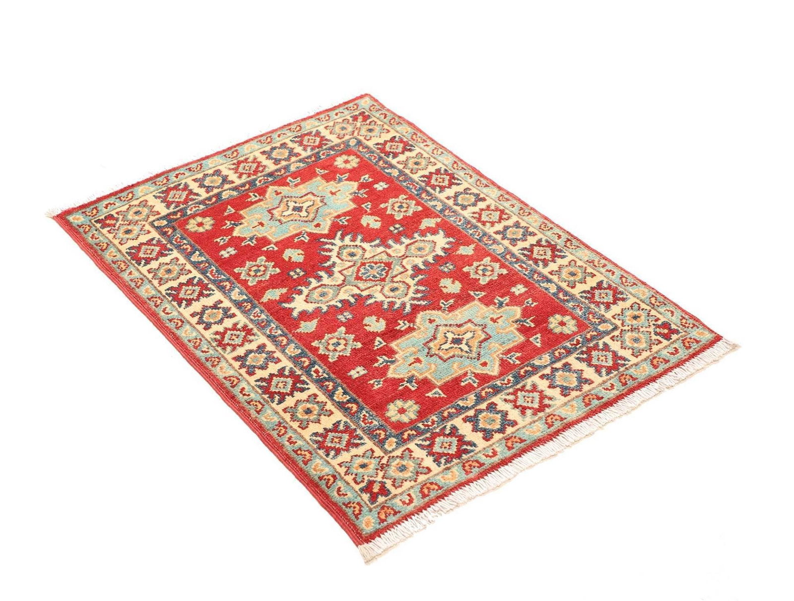157$Ursprünglicher Preis war: 157$141$Aktueller Preis ist: 141$Kazak Teppich | Knotendichte: ca. 100.000 Knoten/m² | Material: 100% Schurwolle | Kette: 100% Baumwolle | Größe: 65 x 85 cm | Herkunft: Pakistan | Zustand: Handgeknüpft, hohe Qualität