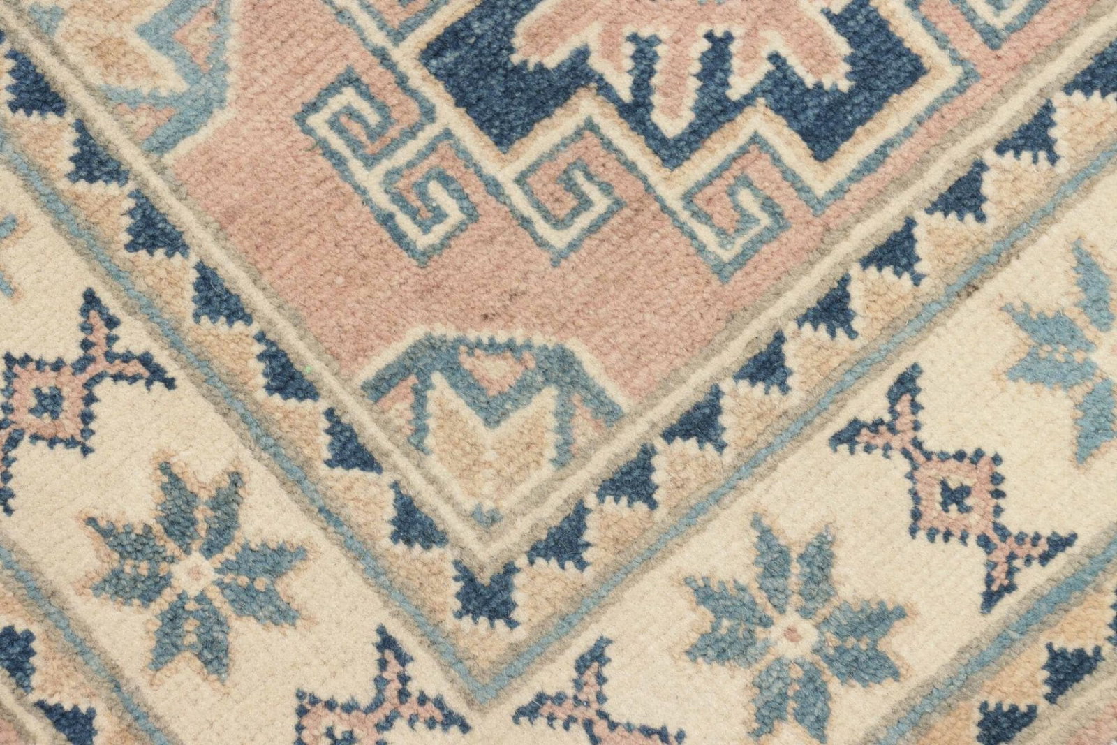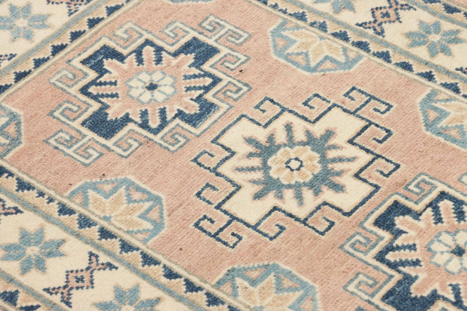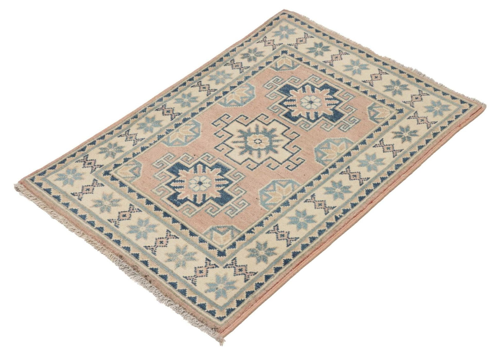 Kazak Teppich | Knotendichte: ca. 100.000 Knoten/m² | Material: 100% Schurwolle (Flor) und 100% Baumwolle (Kette) | Größe: 65 x 87 cm | Verarbeitung: Handgeknüpft | Herkunft: Pakistan | Zustand: Sehr gut | Geometrische Muster und Figuren