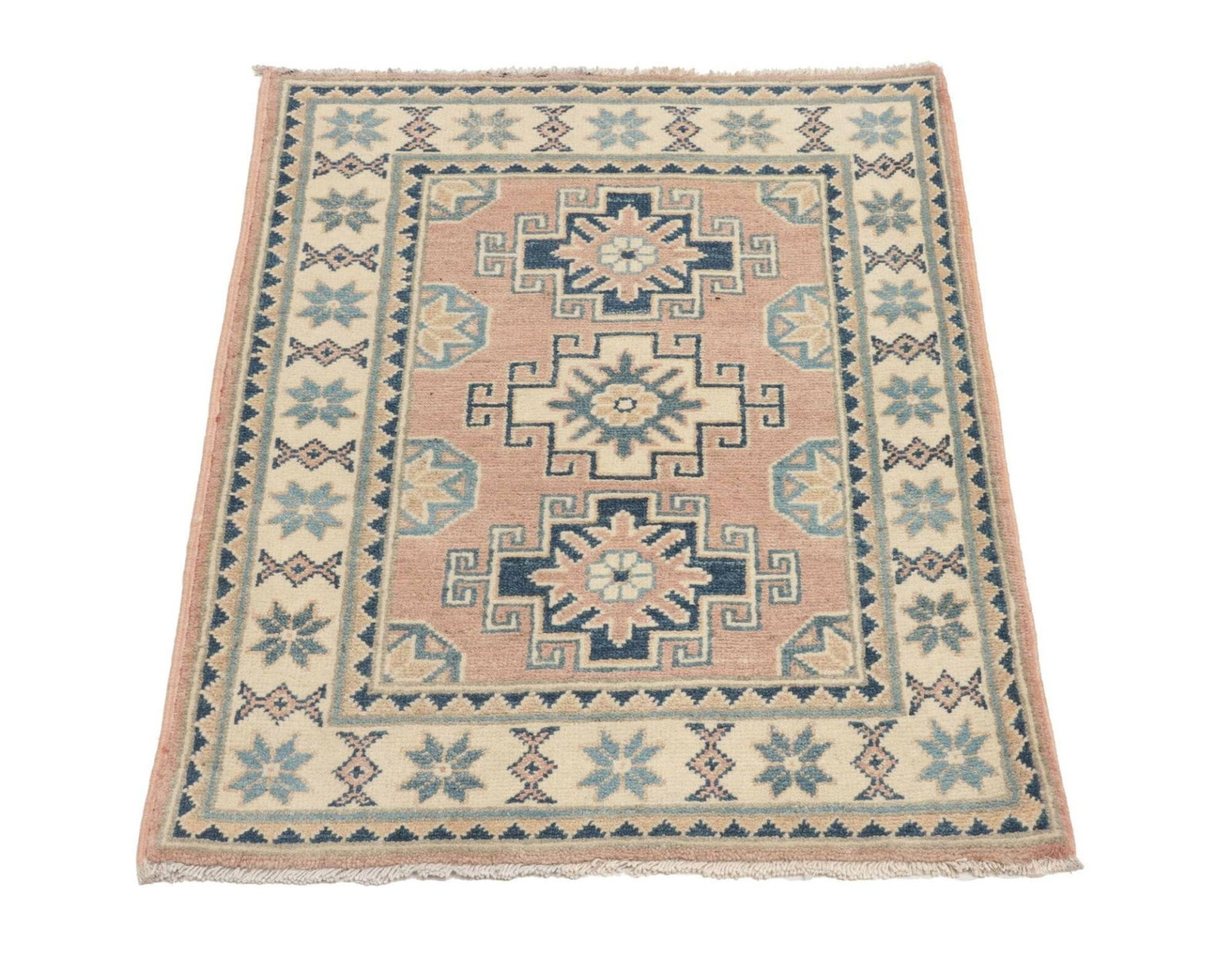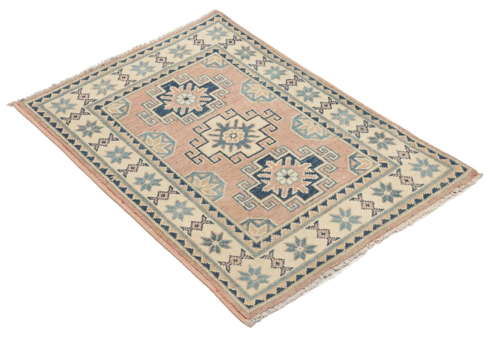 Kazak Orientteppich 65 x 87 cm, geometrisches Muster, handgeknüpft