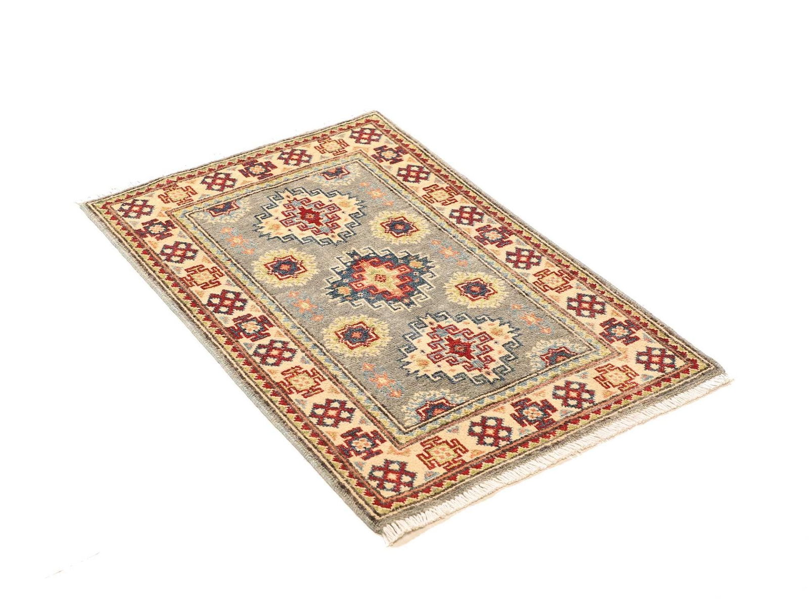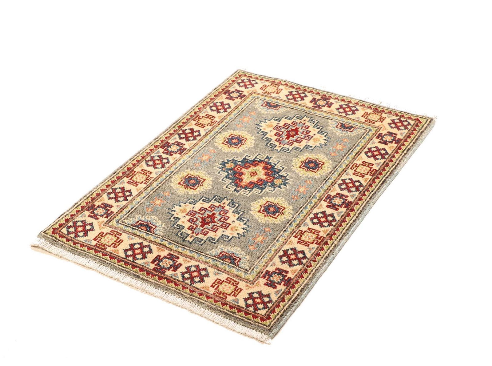Kazak Teppich | Knotendichte: ca. 100.000 Knoten/m² | Material: 100% Schurwolle | Größe: 67×94 cm | Herkunft: Afghanistan | Zustand: Handgeknüpft | Muster: Geometrische Figuren