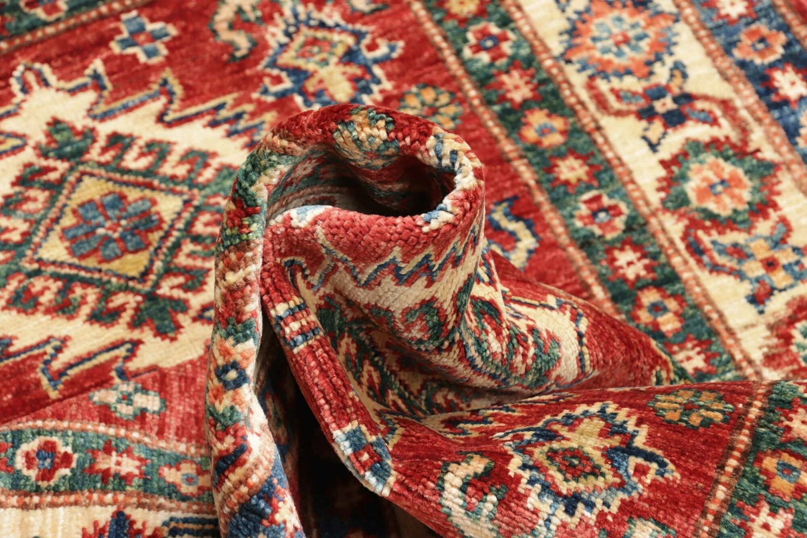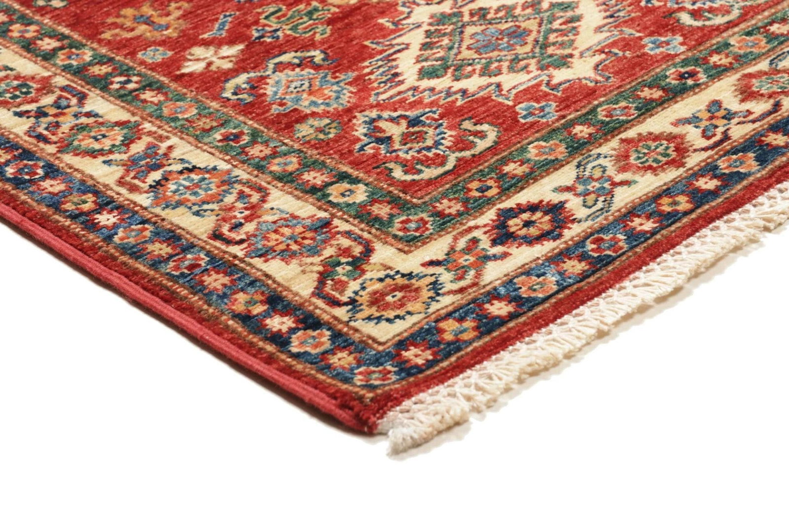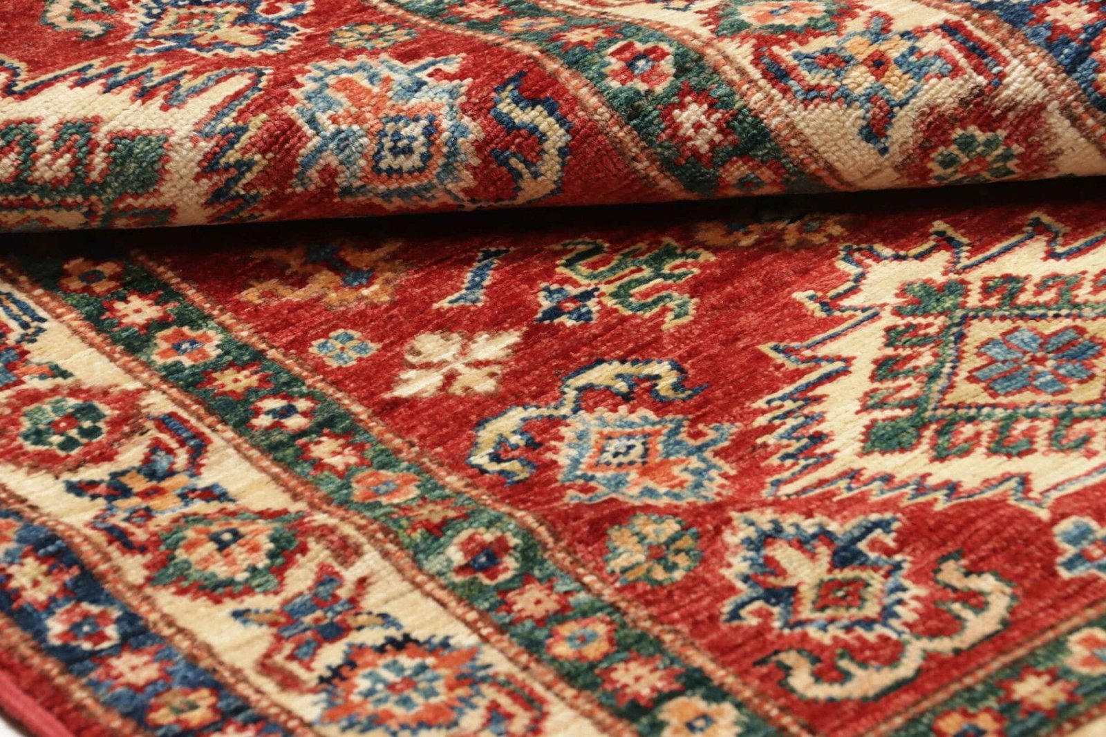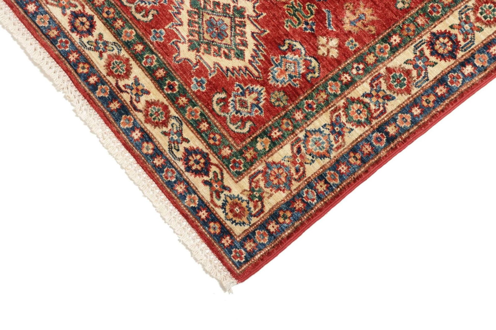 Der Kazak Orientteppich hebt sich durch die Verwendung von hochwertiger Schurwolle ab. Schurwolle ist bekannt für ihre Robustheit sowie ihre Fähigkeit, Farbe und Muster lebendig und klar zu erhalten. Diese Eigenschaft ist besonders in handgeknüpften Teppichen von Bedeutung, wo Präzision in der Knotentechnik entscheidend ist.