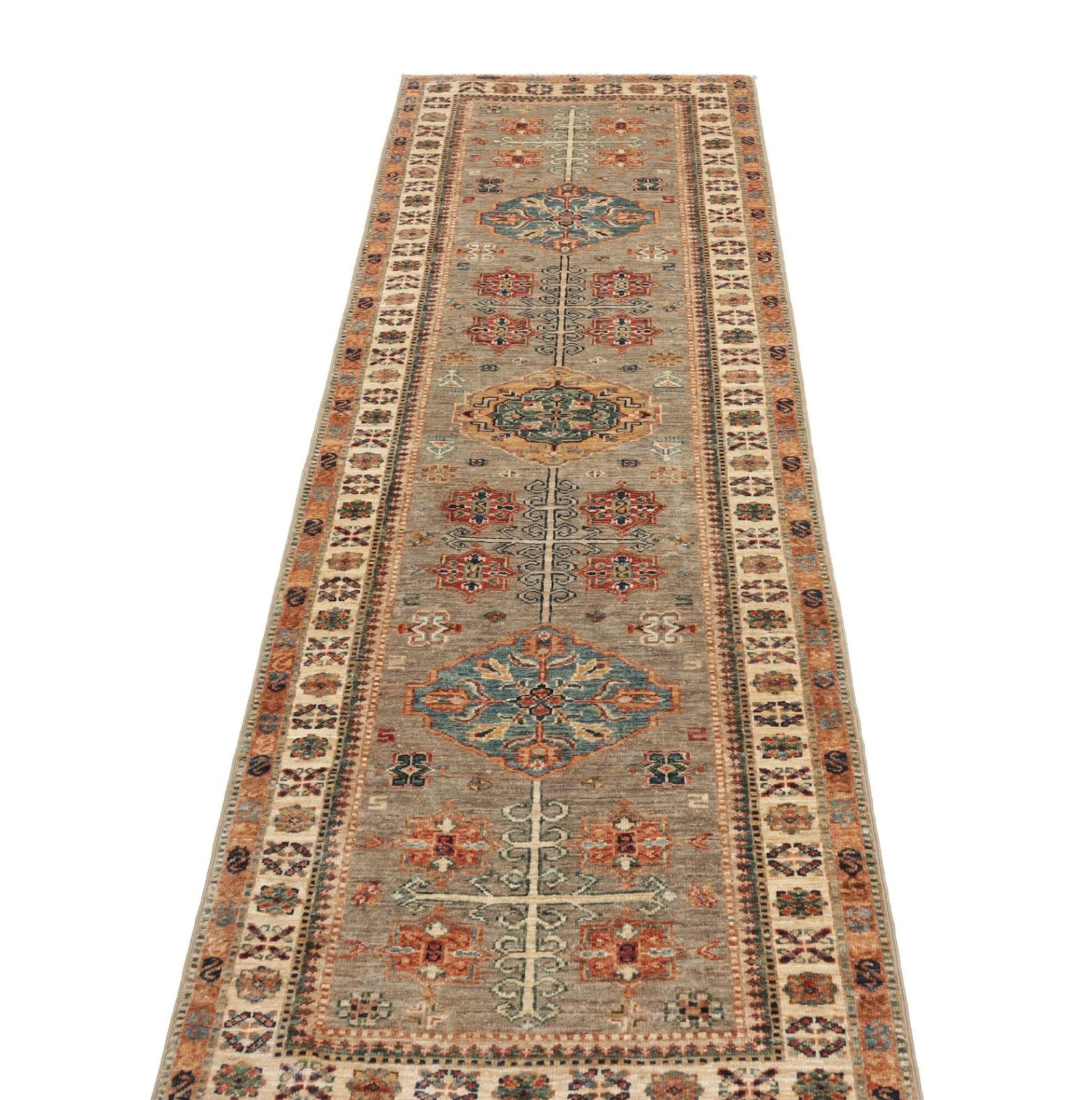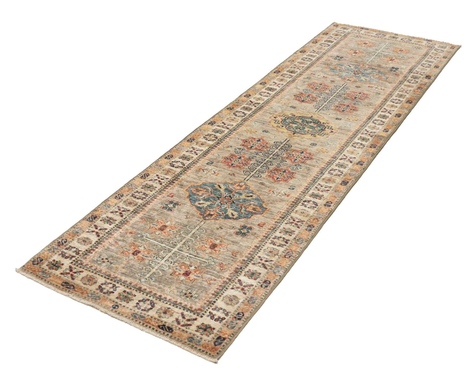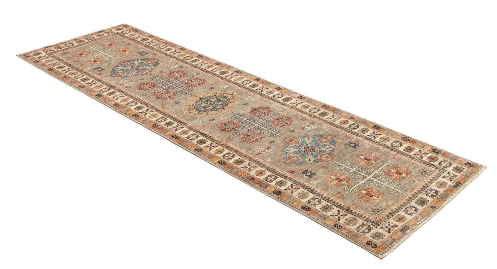 1506$Ursprünglicher Preis war: 1506$1246$Aktueller Preis ist: 1246$Kazak Teppich | Knotendichte: ca. 200.000 Knoten/m² | Material: 100% Schurwolle | Größe: 82 x 254 cm | Zustand: Handgeknüpft und hochwertig | Herkunft: Pakistan | Muster: Geometrische Figuren und Muster