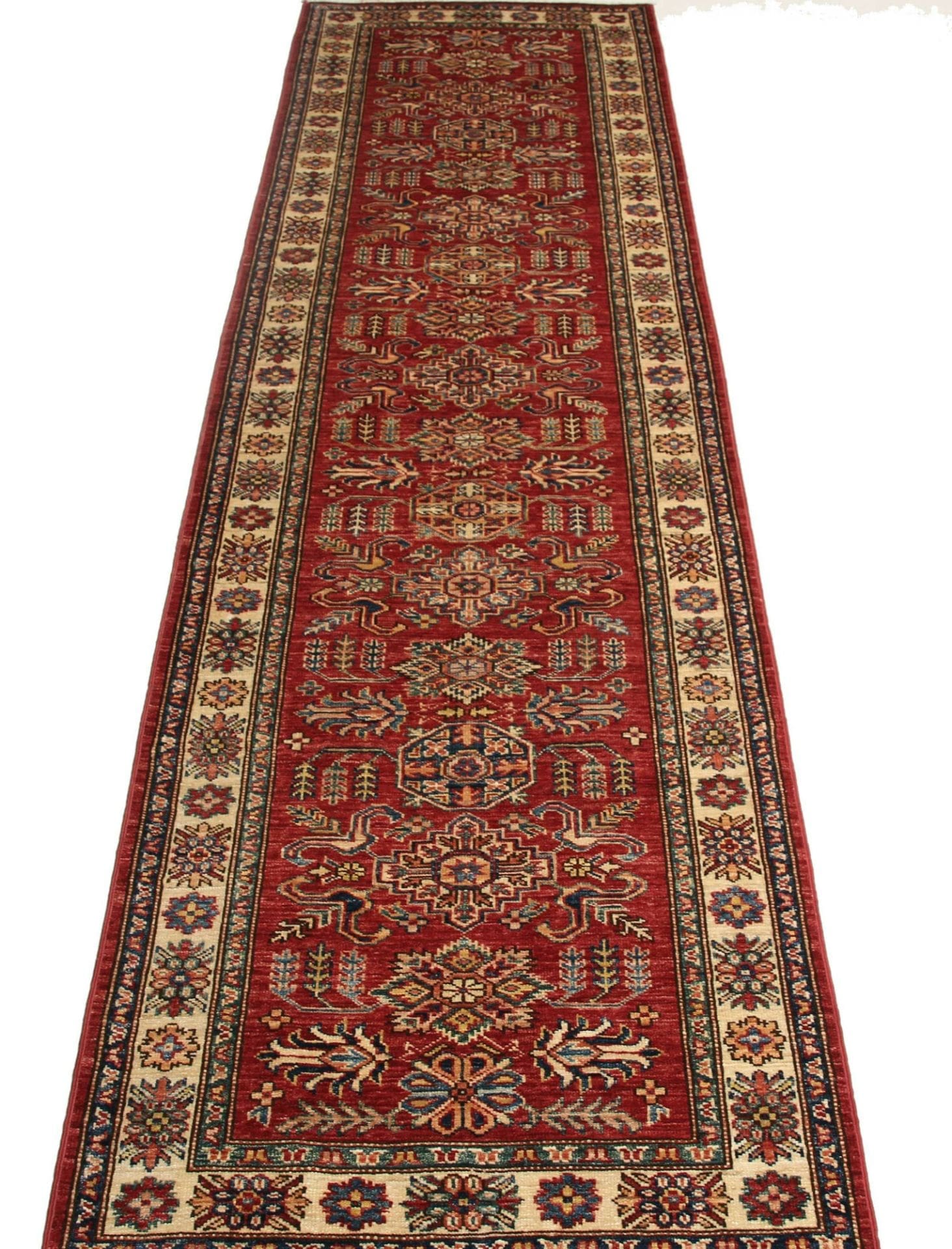 1434$Ursprünglicher Preis war: 1434$1182$Aktueller Preis ist: 1182$Kazak Teppich | Knotendichte: ca. 200.000 Knoten/m² | Material: 100% Schurwolle | Größe: 83 x 294 cm | In gutem Zustand | Herkunft: Pakistan | Provenienz: Kazak | Höhe: ca. 5-7 mm | Verarbeitung: Handgeknüpft