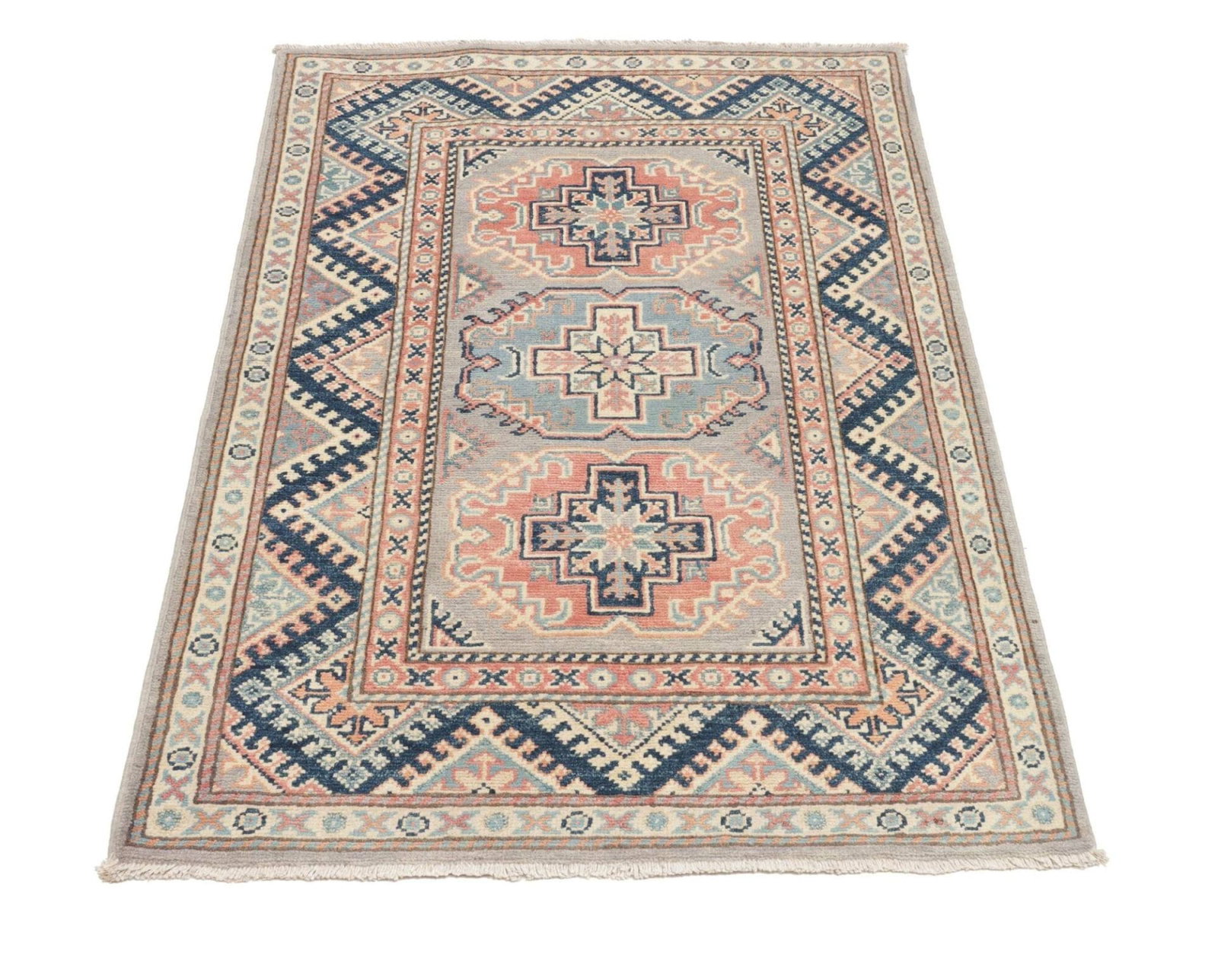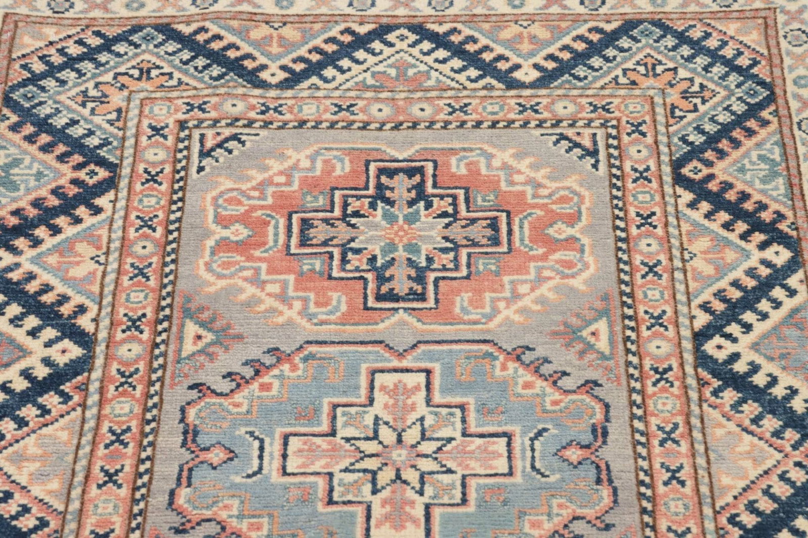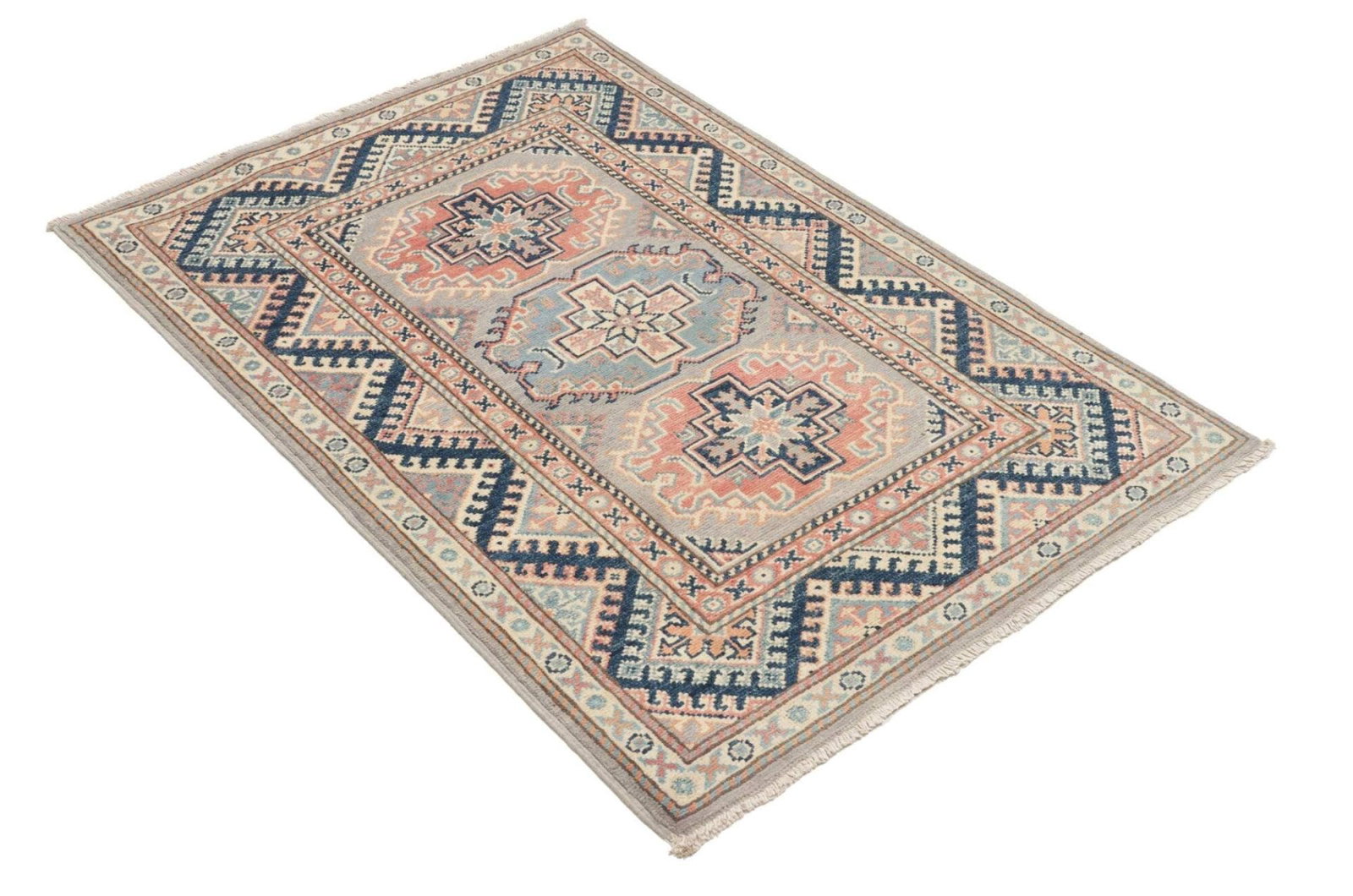 Kazak Orientteppich 85 x 124cm, geometrisches Muster, handgeknüpft
