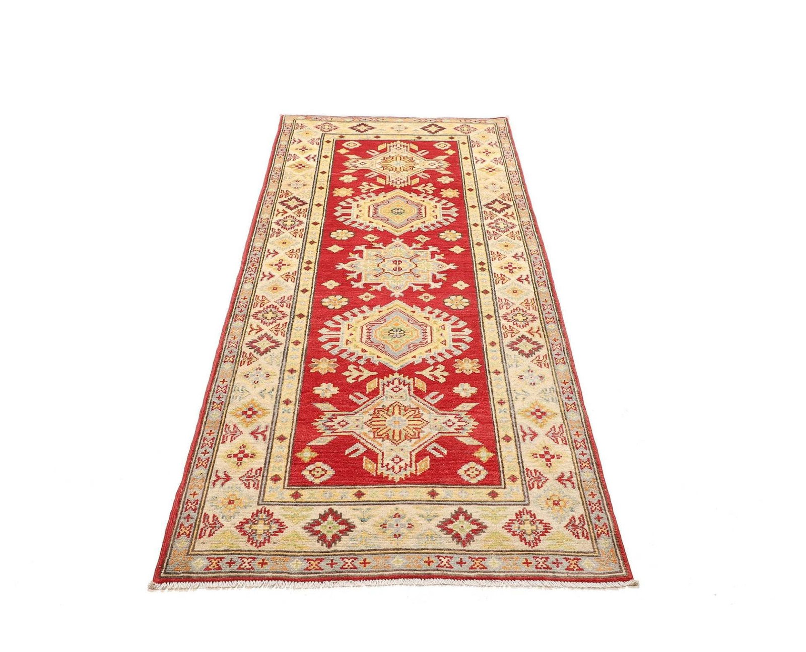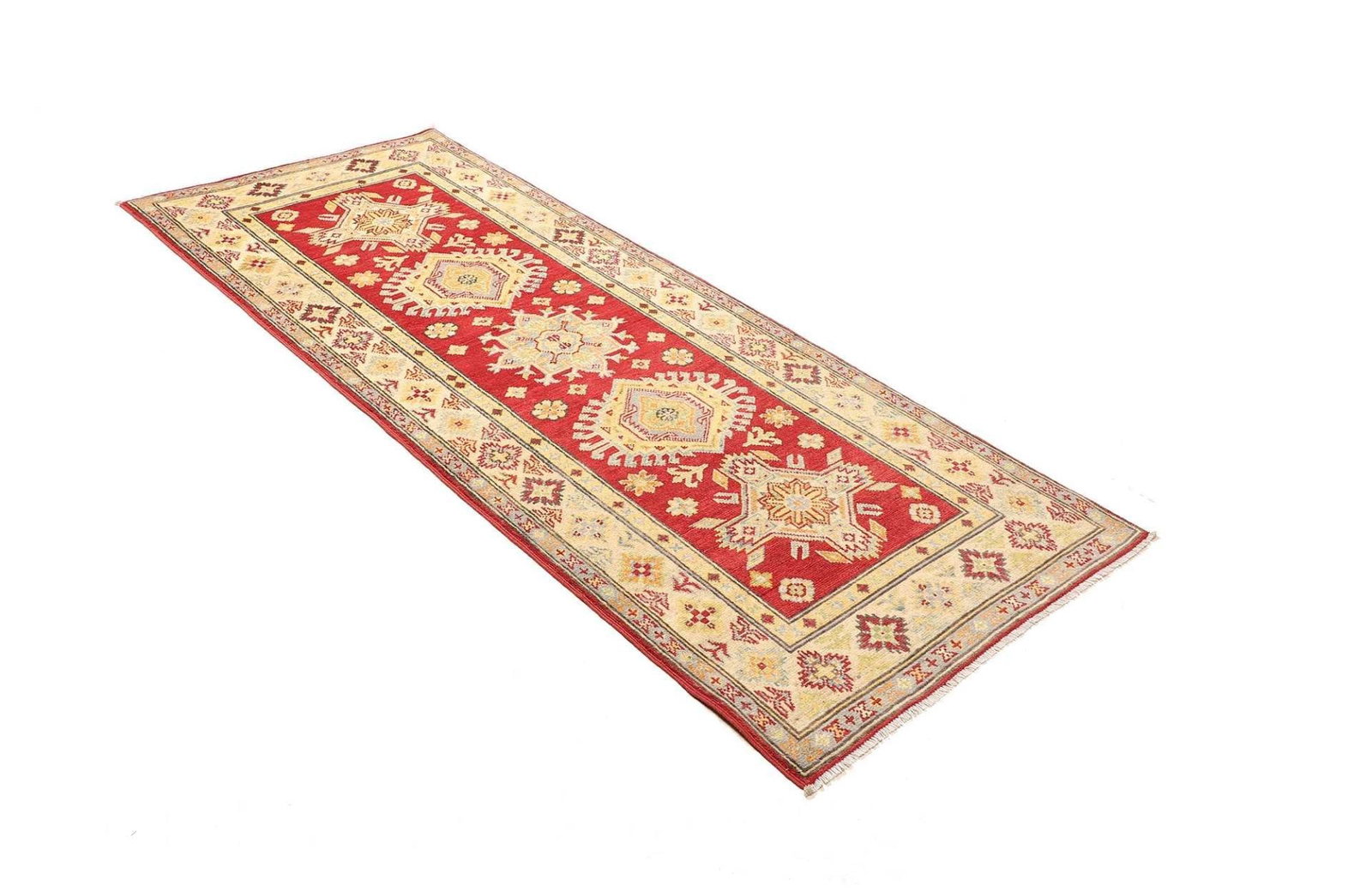 Kazak Orientteppich 85 x 203cm, geometrische Muster, handgeknüpft